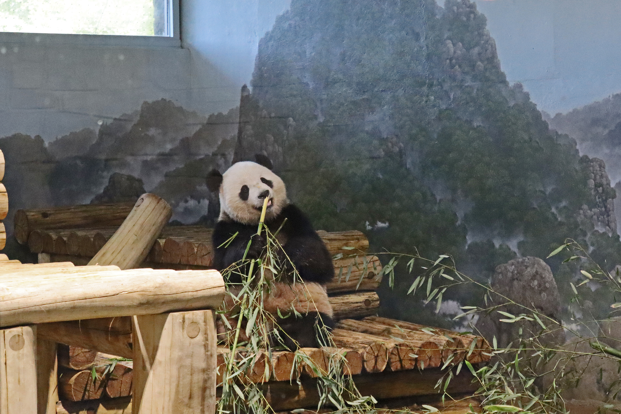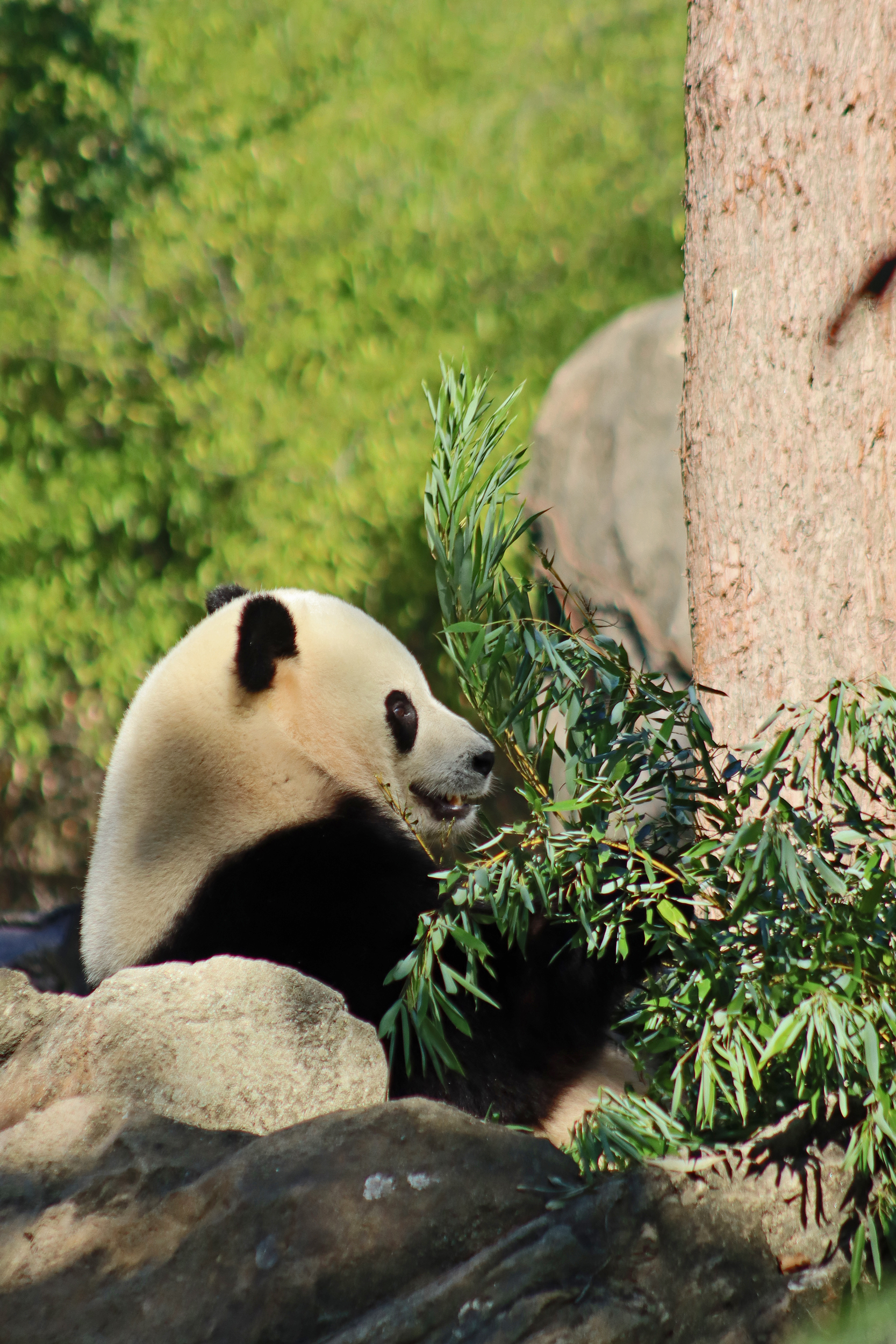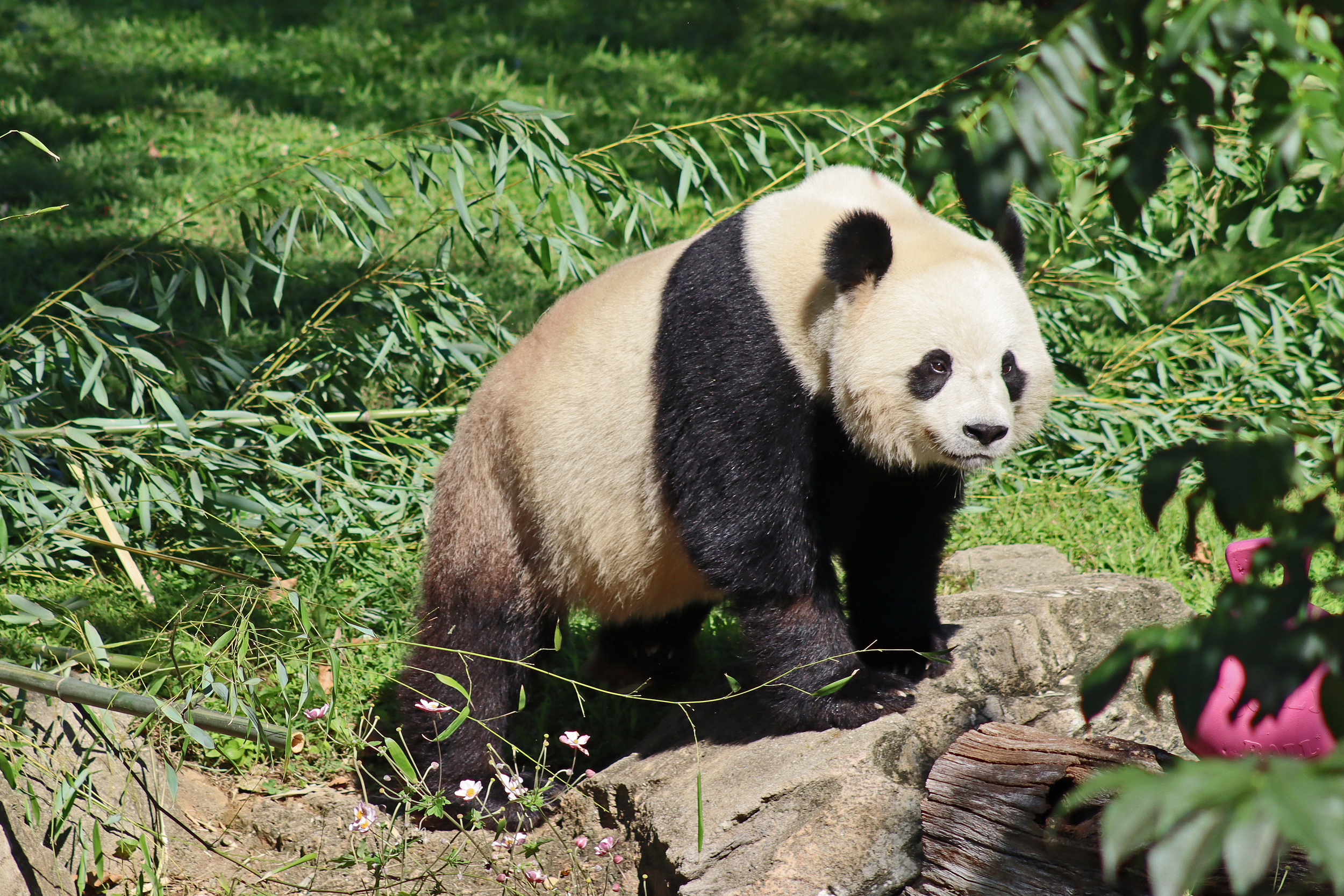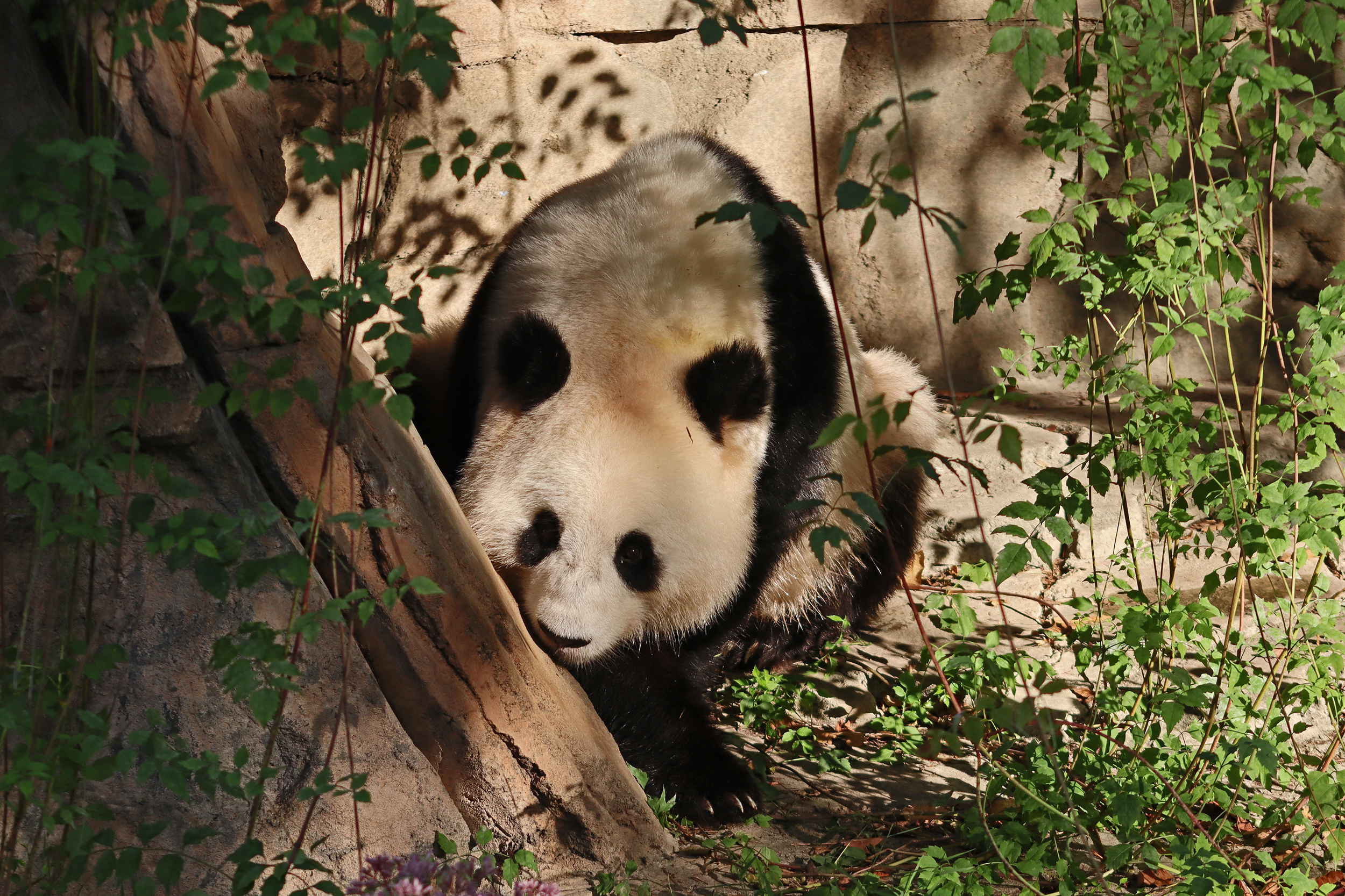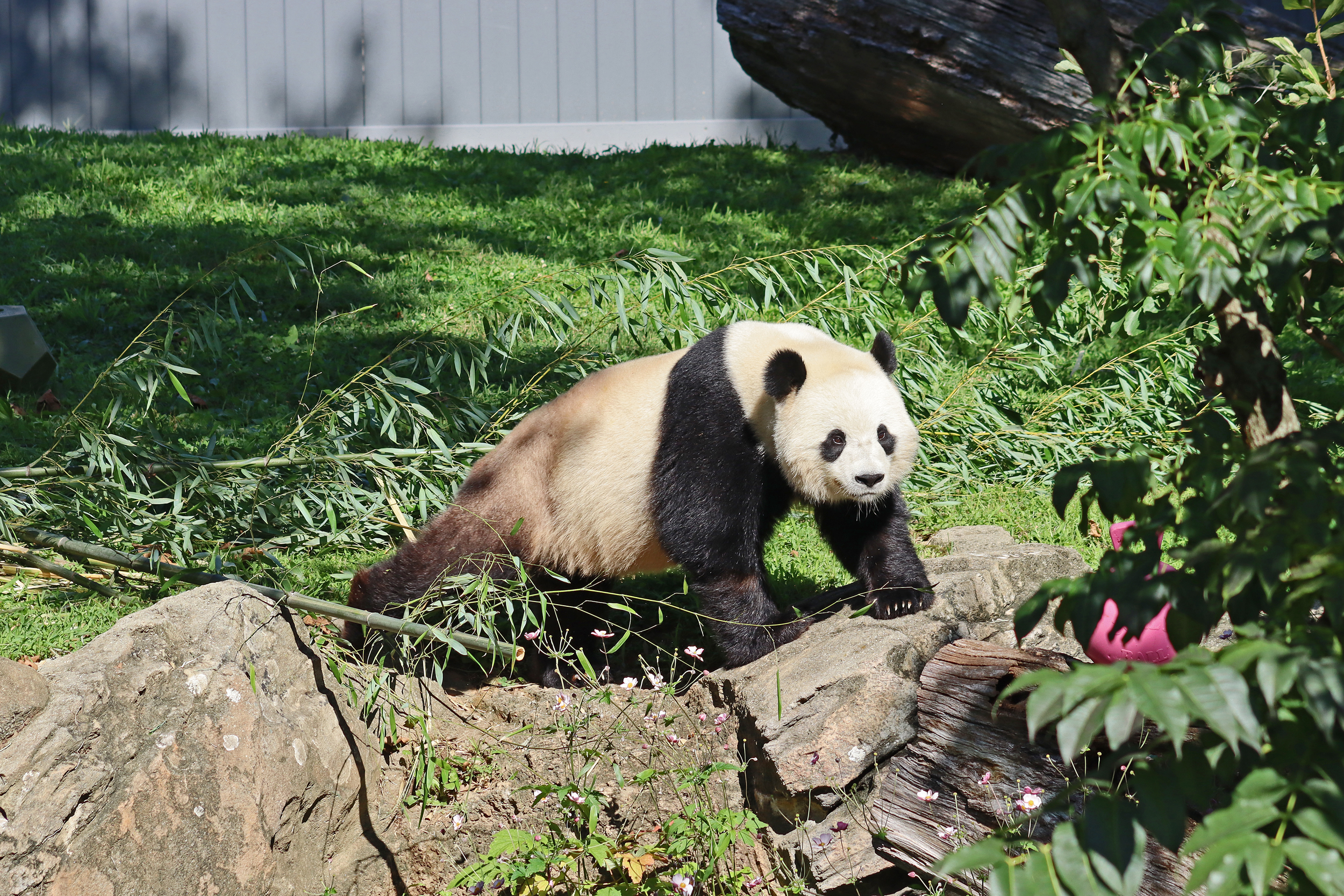 Overall the panda area at the Smithsonian National Zoo hasn’t changed too much – although there were a few things I didn’t remember from before. I think maybe last time there was some renovation work going on so we couldn’t view the pandas from the overlook or the path coming from the Asia Trail direction because I don’t remember this at all and I really had a great view from up there on this trip. There is a one-way system in place at the panda habitat, first you go past the outdoor yards – these had some new climbing frames since my last visit. There are 3 yards, 2 of which were connected when I was there so the panda could enjoy either space, the 3rd yard was much larger, so overall both of them had around the same amount of outside space. Lots of trees and foliage, and of course enrichment opportunities. Most of the outdoor viewing is barrier-free, but there is one section at two of the yards where you can view through glass. After viewing the outside, you work your way around to the building – depending on time and crowds there may be a line to get in. I was there on a weekend and found it to be a bit quieter in the mornings and I needed to line up in the afternoons, however the line was never very long and I don’t think I waited more than 15 minutes or so. Inside there are 4 separate spaces, however these are currently set up into 2 linked spaces for each panda, again they have some indoor environment options as well. In here there were new climbing frames and I think some of the previous rock-work had also changed.