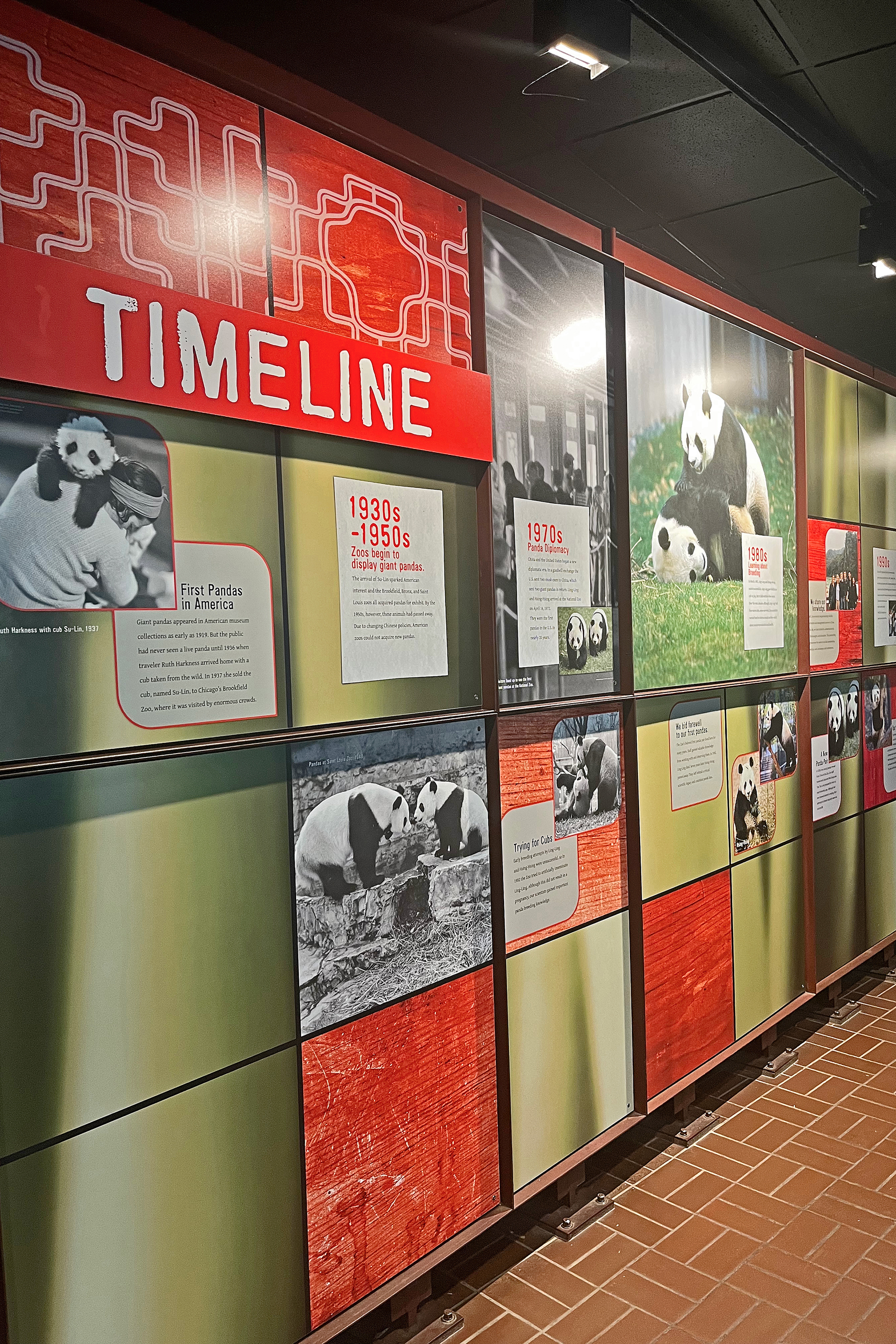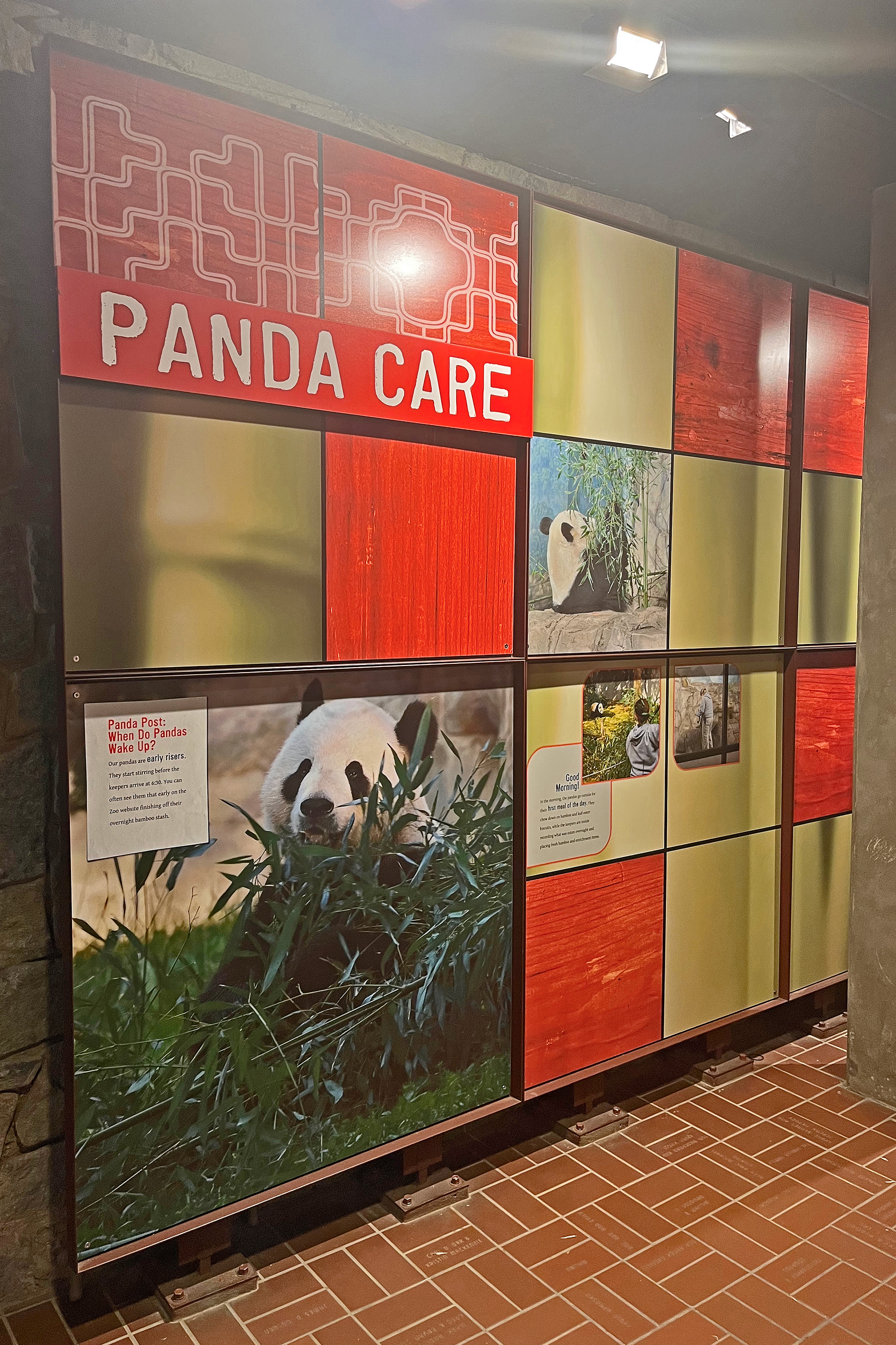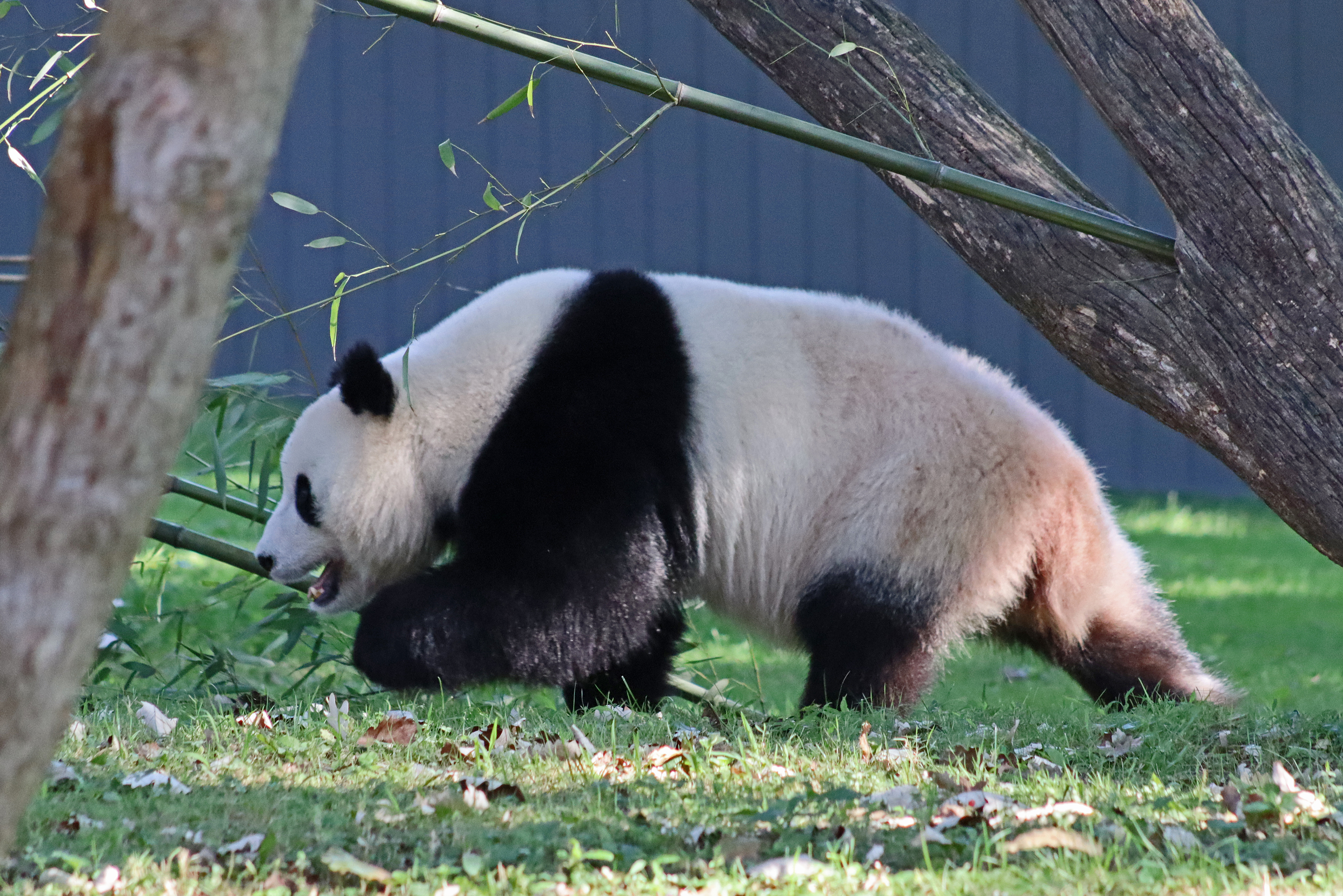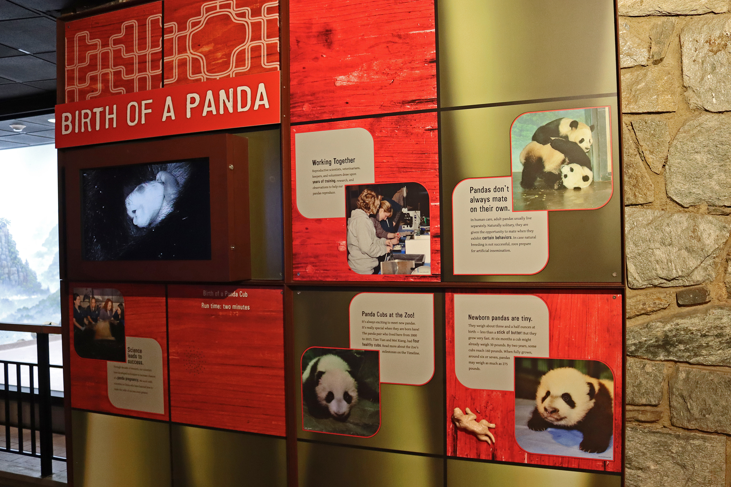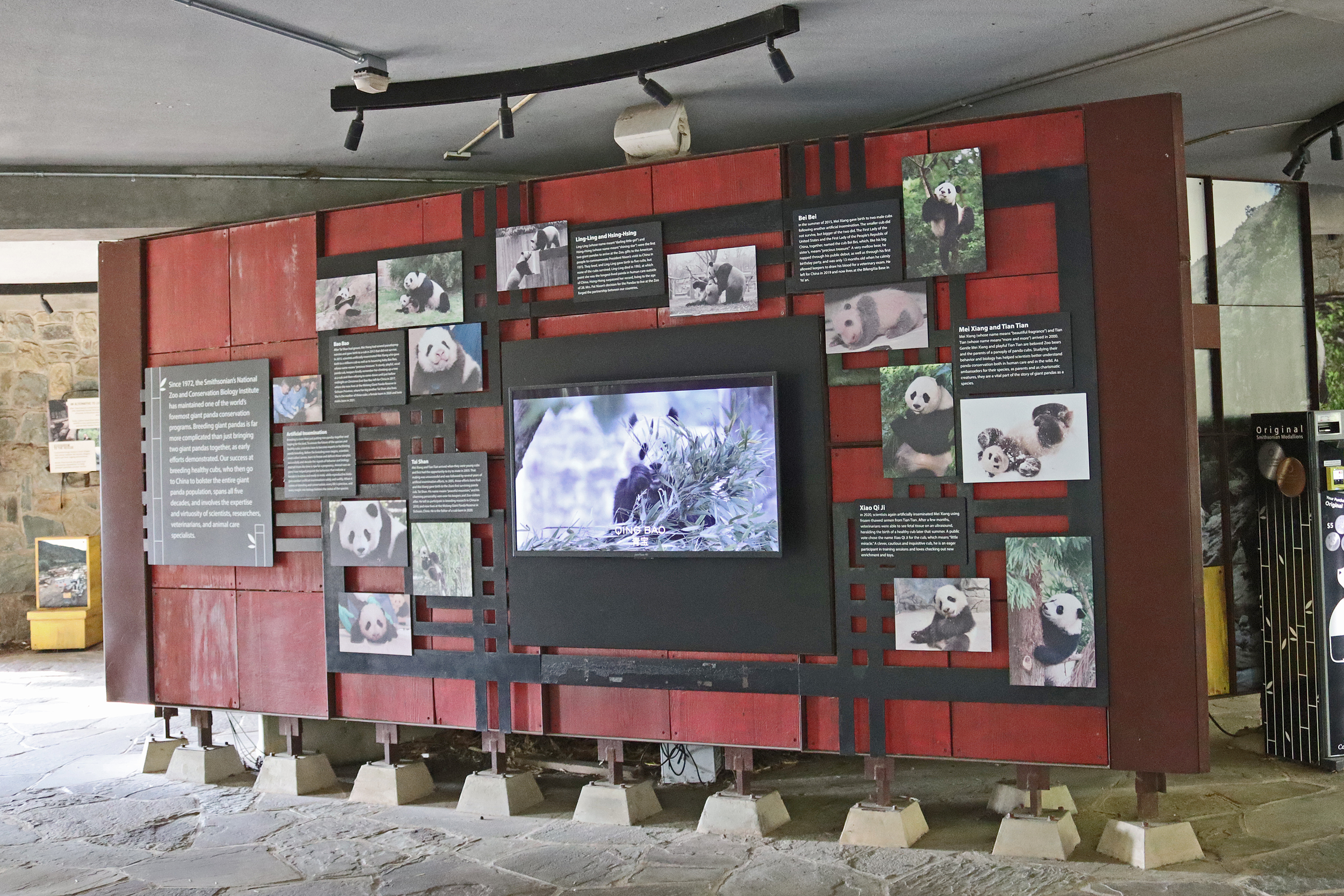 Overall the panda area at the Smithsonian National Zoo hasn’t changed too much – although there were a few things I didn’t remember from before. I think maybe last time there was some renovation work going on so we couldn’t view the pandas from the overlook or the path coming from the Asia Trail direction because I don’t remember this at all and I really had a great view from up there on this trip. There is a one-way system in place at the panda habitat, first you go past the outdoor yards – these had some new climbing frames since my last visit. There are 3 yards, 2 of which were connected when I was there so the panda could enjoy either space, the 3rd yard was much larger, so overall both of them had around the same amount of outside space. Lots of trees and foliage, and of course enrichment opportunities. Most of the outdoor viewing is barrier-free, but there is one section at two of the yards where you can view through glass. After viewing the outside, you work your way around to the building – depending on time and crowds there may be a line to get in. I was there on a weekend and found it to be a bit quieter in the mornings and I needed to line up in the afternoons, however the line was never very long and I don’t think I waited more than 15 minutes or so. Inside there are 4 separate spaces, however these are currently set up into 2 linked spaces for each panda, again they have some indoor environment options as well. In here there were new climbing frames and I think some of the previous rock-work had also changed.
