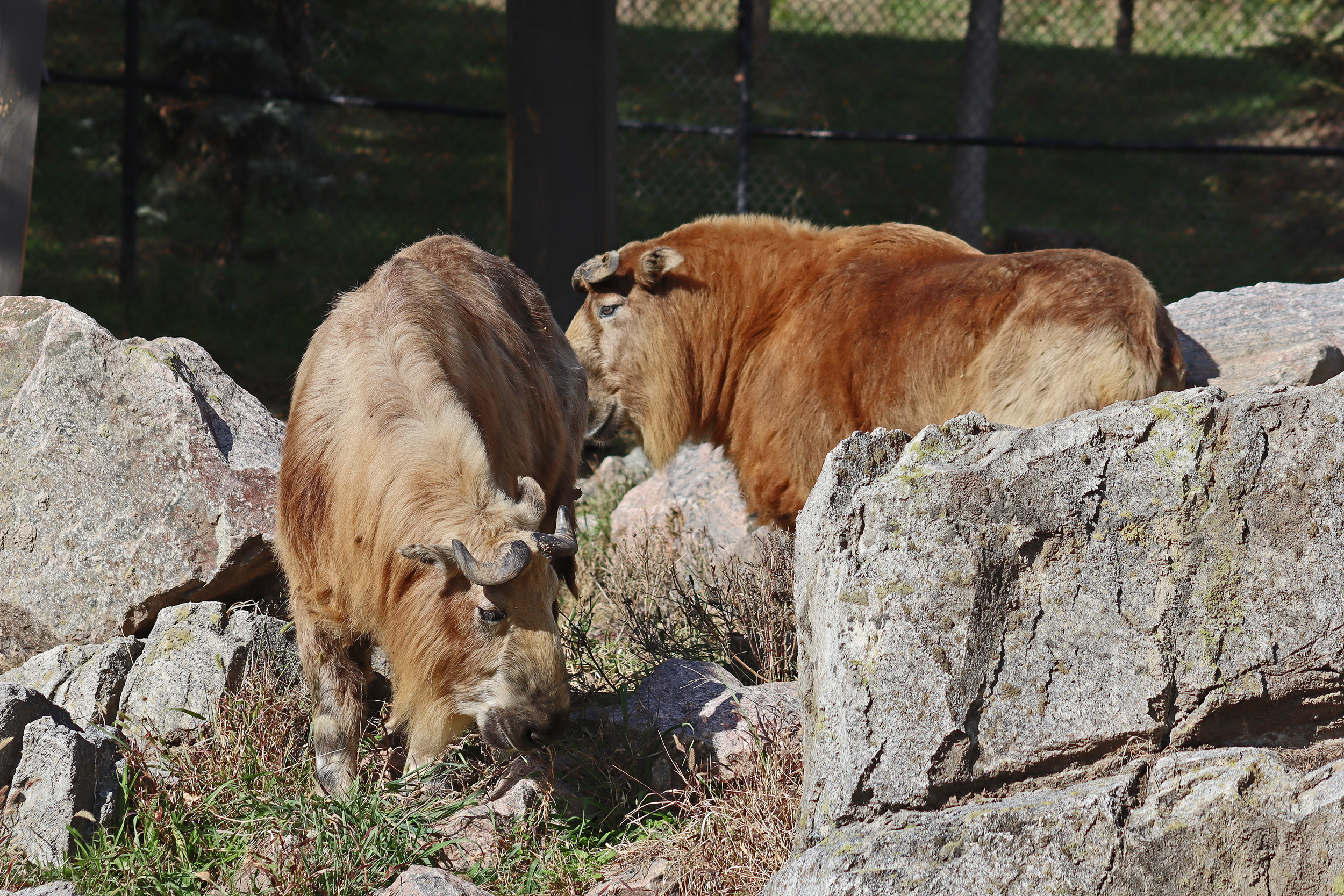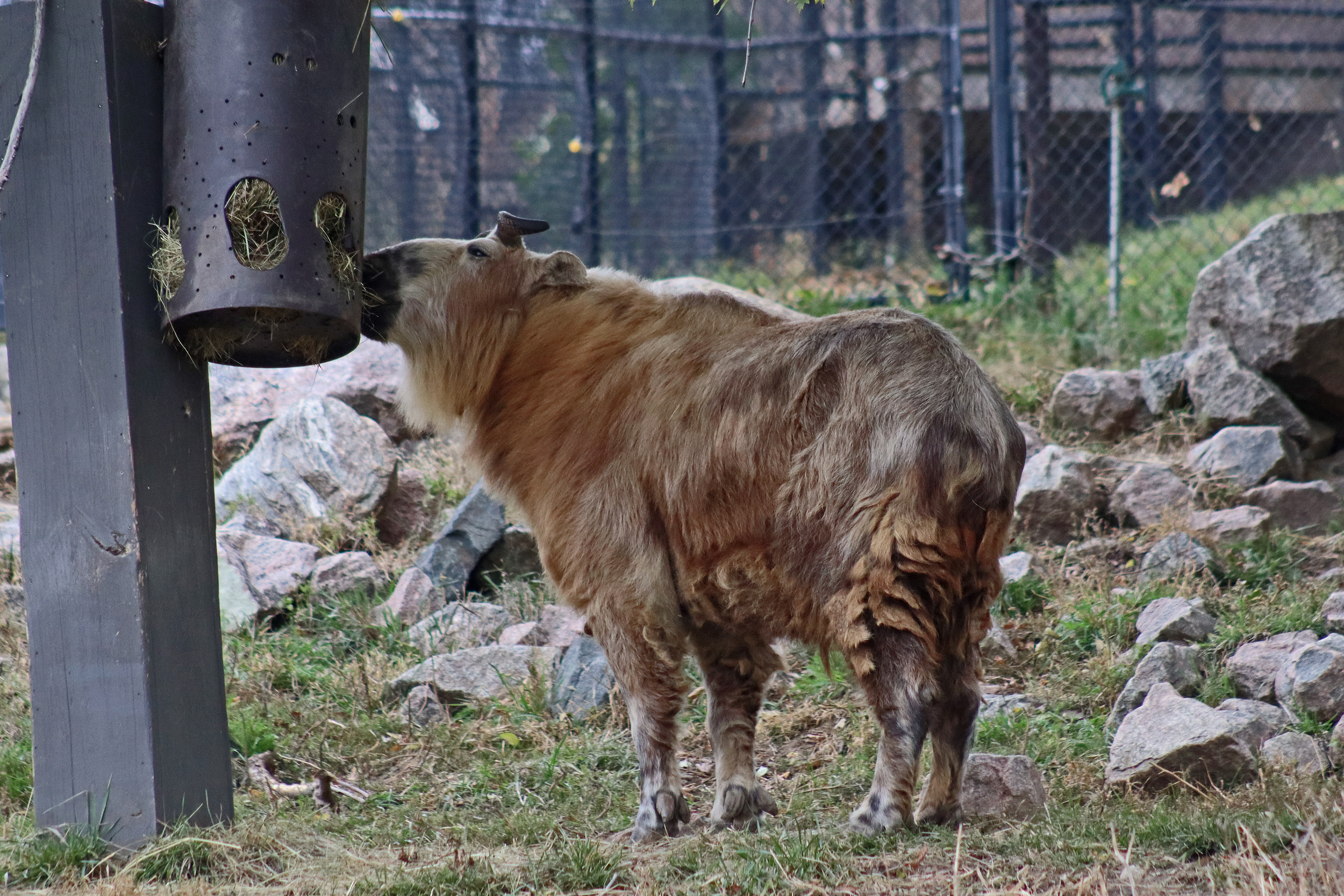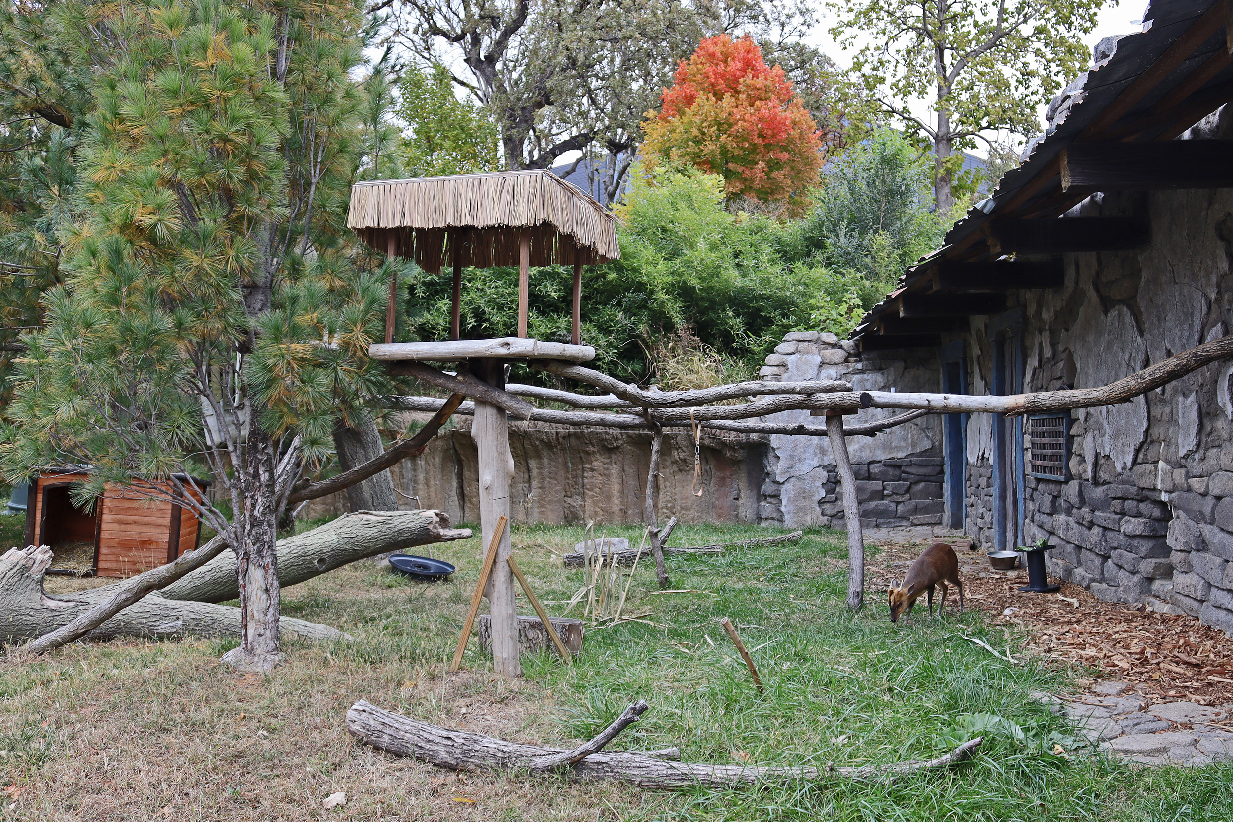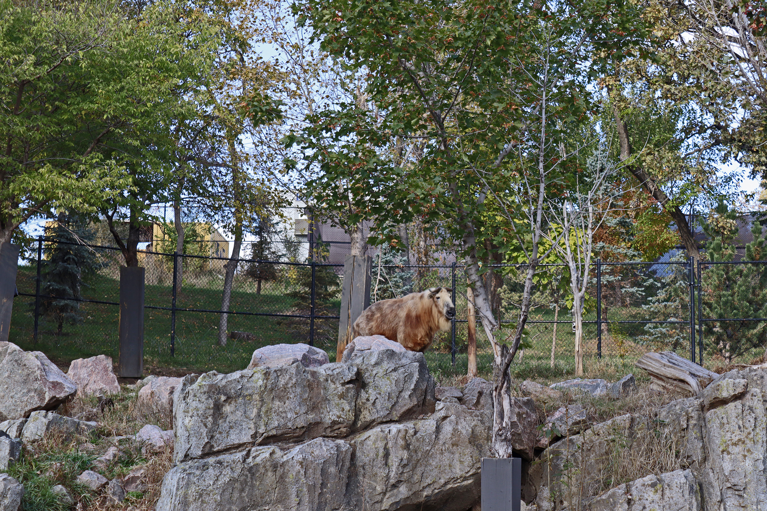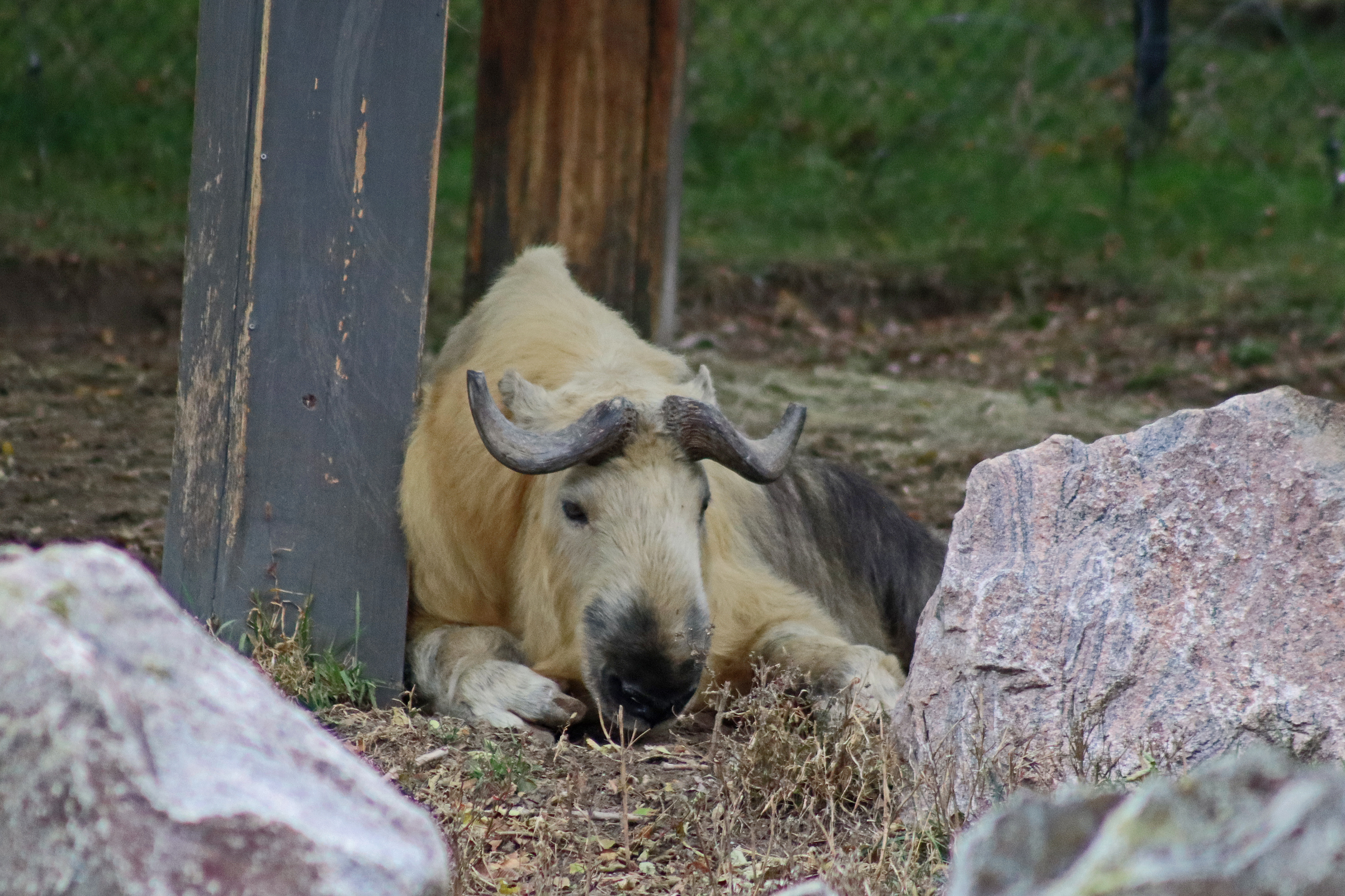 The Asian Highlands was the next area I visited and had amazing theming to it, the whole area from paths between exhibits and the animal areas themselves just looked great. And this area definitely had some ‘highlight’ animals for me, even if I didn’t get a good look or photos of them all! The first yard looked like it was built for red pandas but there were no red pandas there, but they would fit perfectly with the area, however the tufted deer in here were very cute and were sadly being missed by most people walking in, so I was happy to stand and watch this little one enjoy some pumpkin. The sloth bear and Amur tiger were next on the trail, I only saw the sloth bear on my second trip around the area and he was right at the back of his hilly home, it was quite a tricky one to get photos at, and I saw the tiger on my first trip around, who was enjoying a snooze in a cosy looking bed. There are also snow leopards here and I really liked their rocky mountainside home, it was perfect for their camouflage because I couldn’t see them at all and a toddler pointed one out to me! I still couldn’t see it well enough to get an in-focus photo! For sure the takins were a highlight, I really like takins, they’re my favourite hoofstock animal and they just look so cute^ There were quite a few living here and they also had a great hillside home here with a mix of rocky terrain and grass. I bought a fridge magnet of one of these guys for my collection.