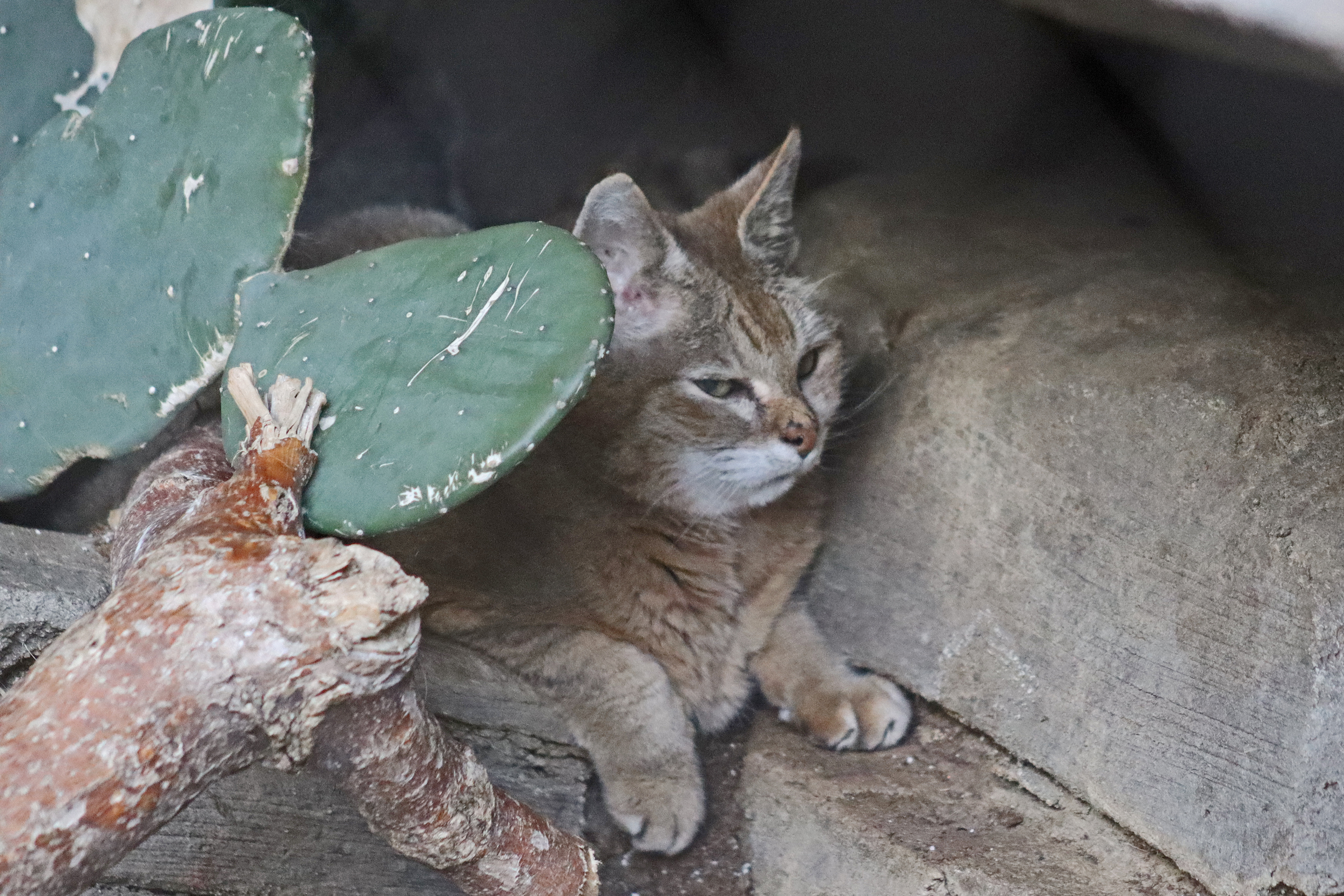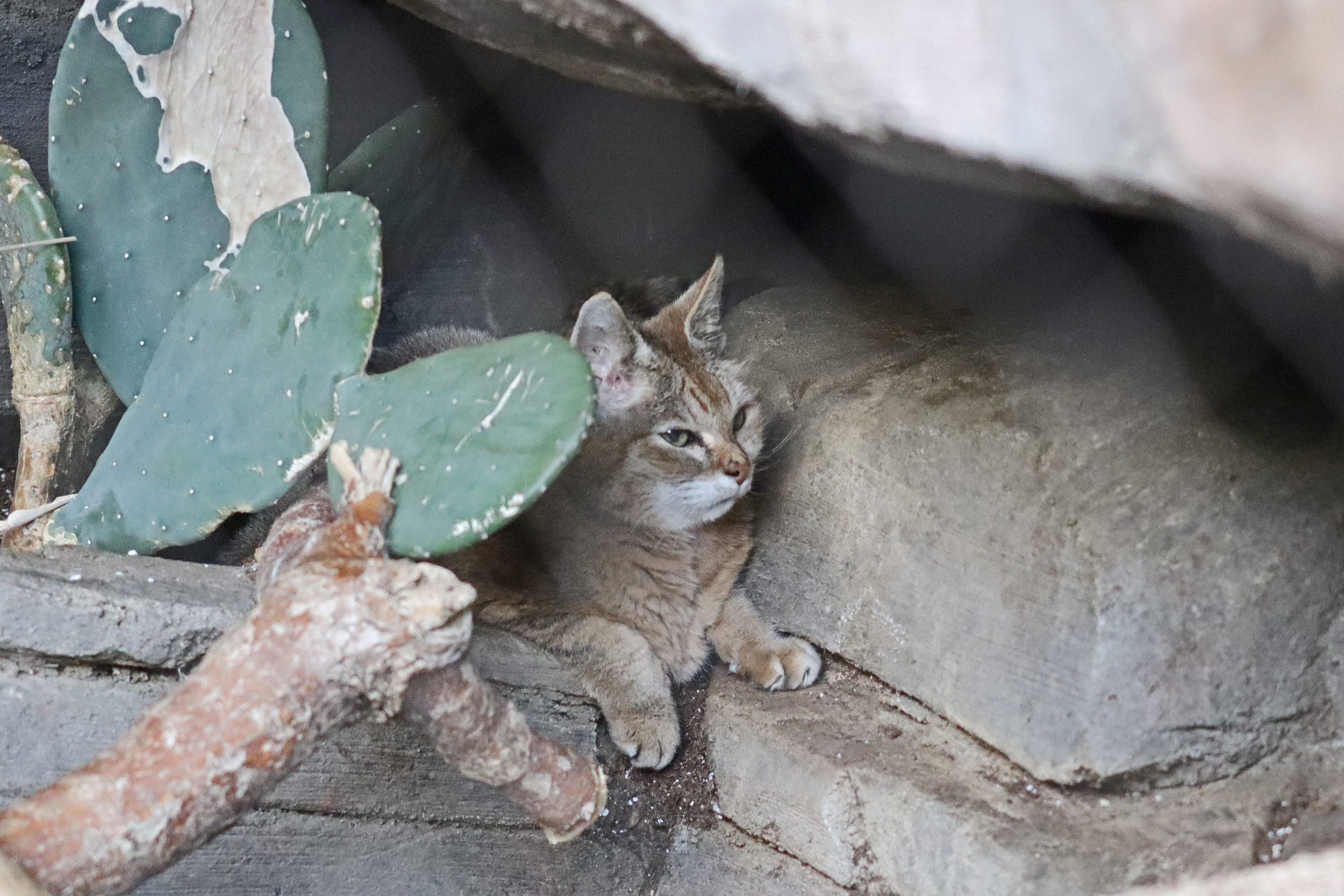 I worked my way clockwise around the park from the entrance, so first stop, the Desert Dome and subterranean Kingdoms of the Night. I think this was my favourite area. Apparently it’s the world’s largest indoor desert – I’ve been to the dome in ZooParc de Beauval before, while I would say it’s felt larger, they’ve both gone for different themes, which I appreciate. And here I saw some great species that I’m pretty sure I’ve never seen before, and a really good range of animals as well. You enter and work your way around the mountain that’s in the middle of the dome, the exhibit spaces were cleverly fitted into the landscaping, using the rock-work to suit the different animals in the different areas. In here I really liked seeing the bat-eared fox and the African wild cat which was the first time I had seen either of these species. I also really liked how the peccary and ocelot spaces were done – the peccaries were in a large open space with overhanging rocks at the back, and ontop of those rocks were were the ocelot space wasn’t (didn’t see but really tried!). There was also a very good bird selection in here, loved the tiny owls, especially the burrowing owls.