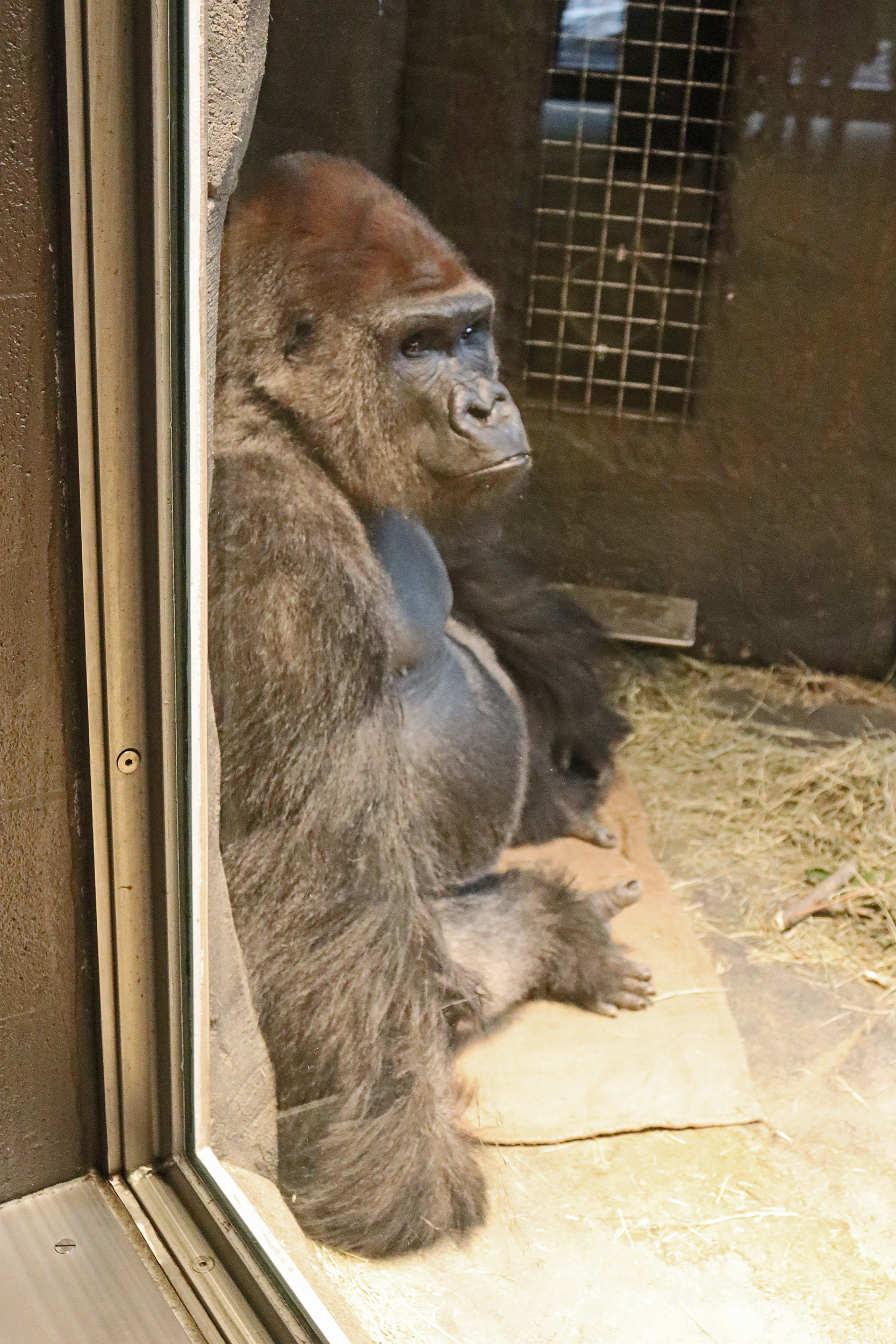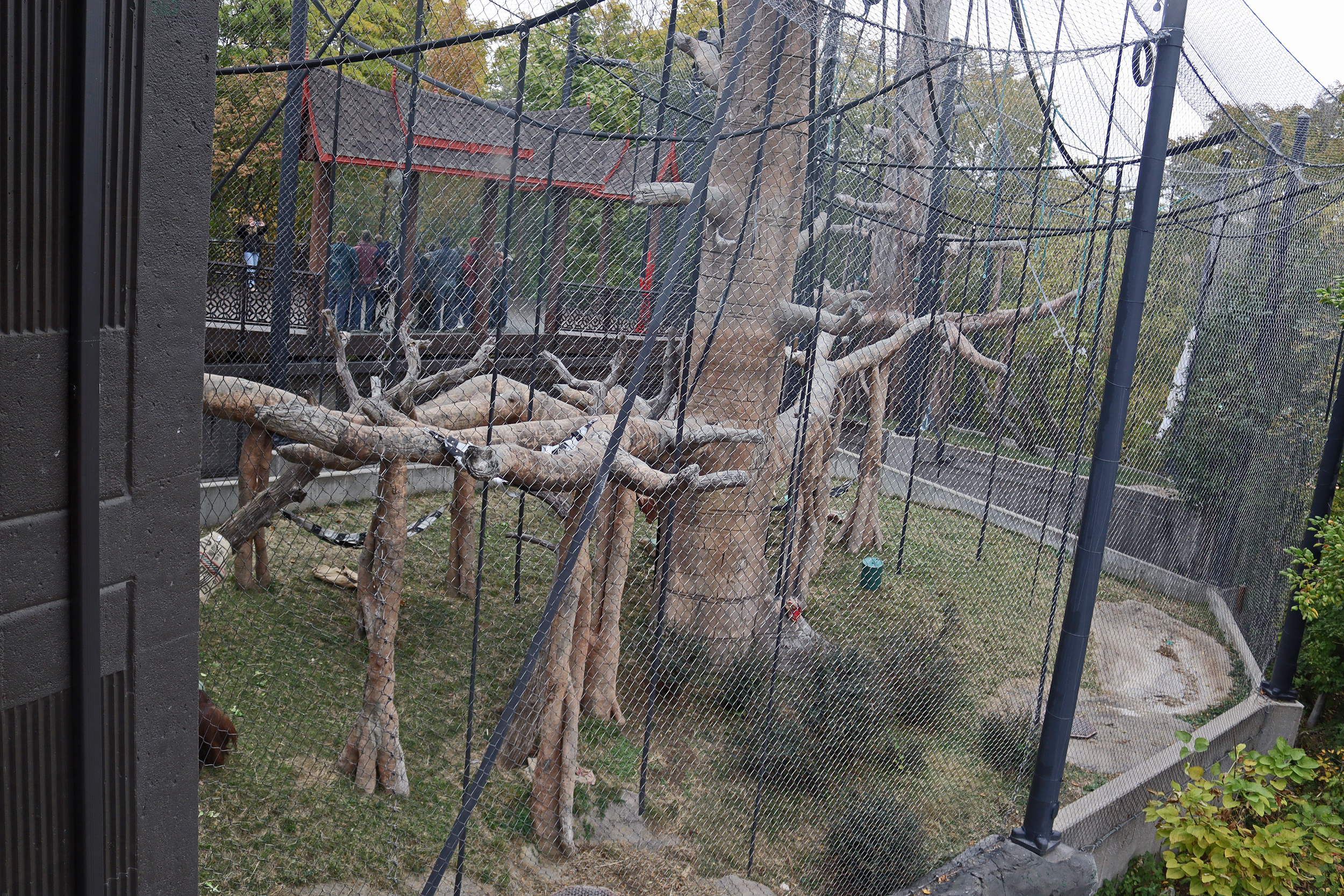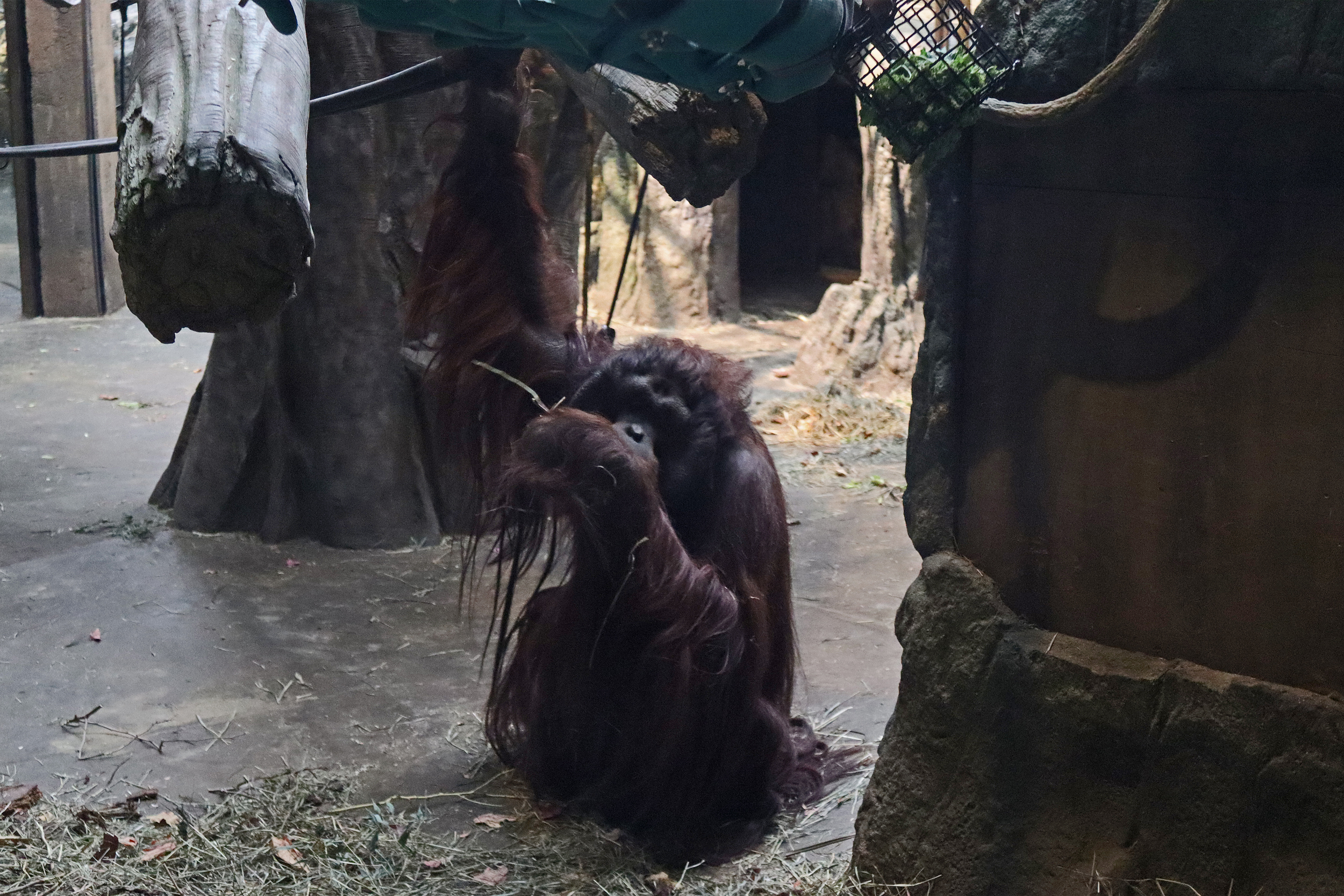 Heading out of the Desert Dome I headed down the hill to the Hubbard Orangutan Forest and Gorilla Valley. From where I came from I was on the top level of the Orangutan Forest, here you can view two outdoor netted areas, I only saw the Siamangs in this outside area on the 2 occasions when I visited here. But they were very popular, there was always a crowd watching. The design of the orangutan building was really nice, I headed inside on this level then went downstairs where you walk along the indoor area, which was where the orangutan’s were always hanging out. They had lots of options in here with climbing and caves, and I was lucky to see one of them super close up.
