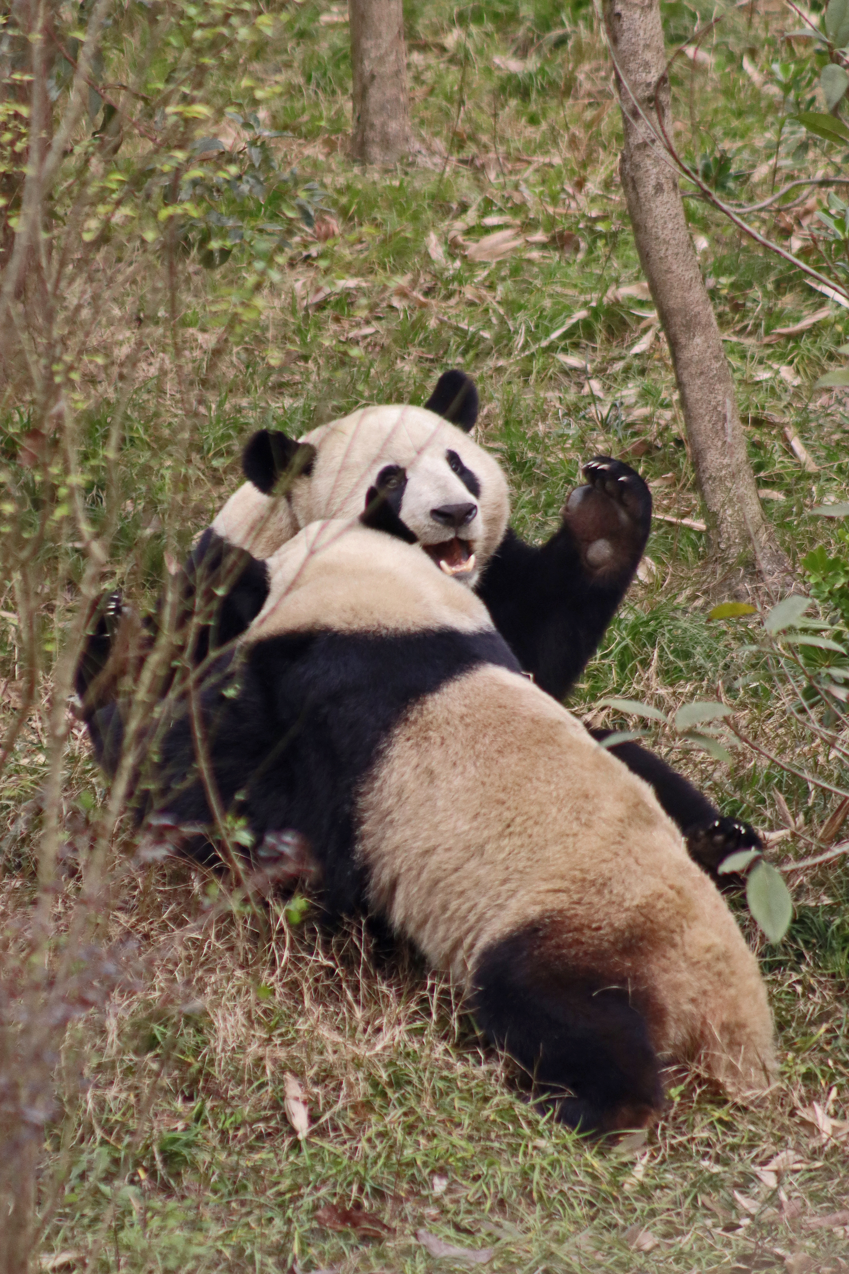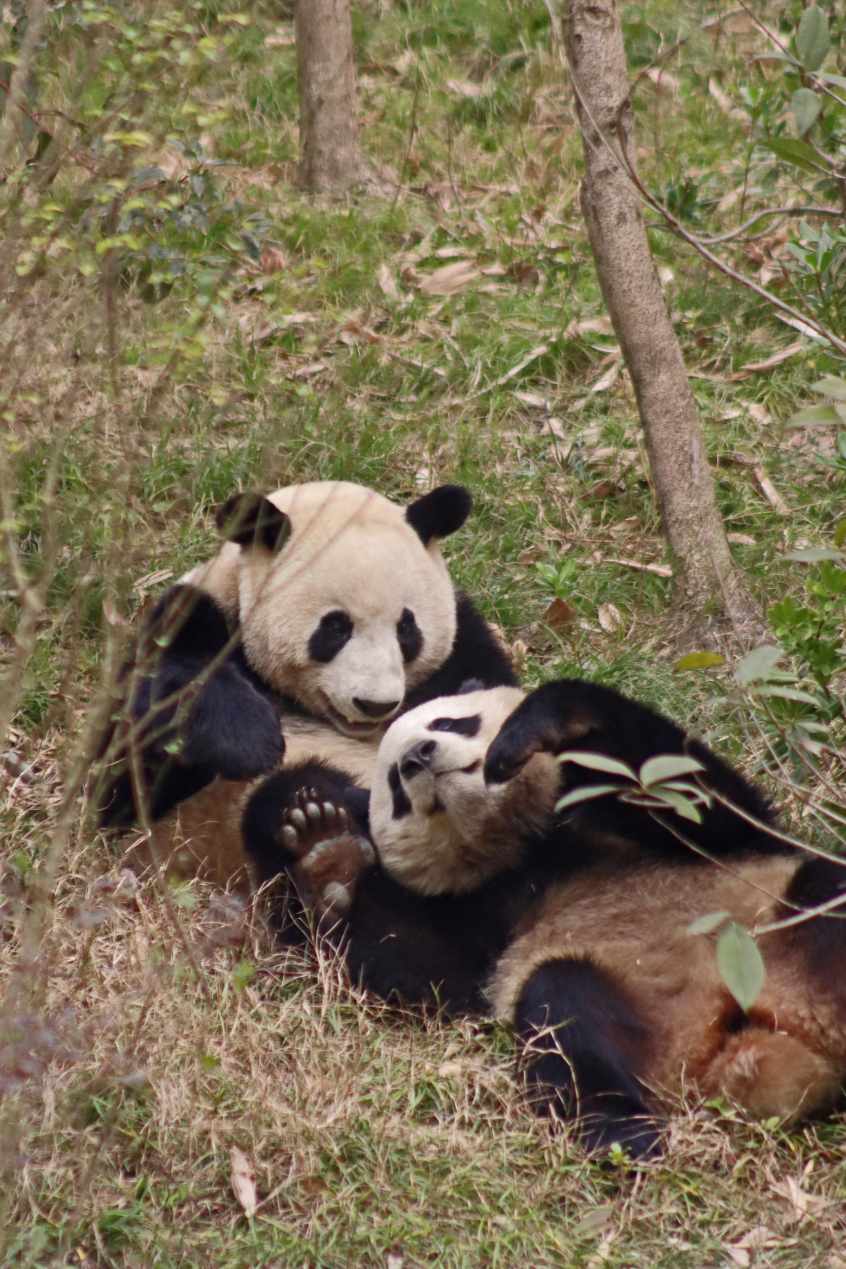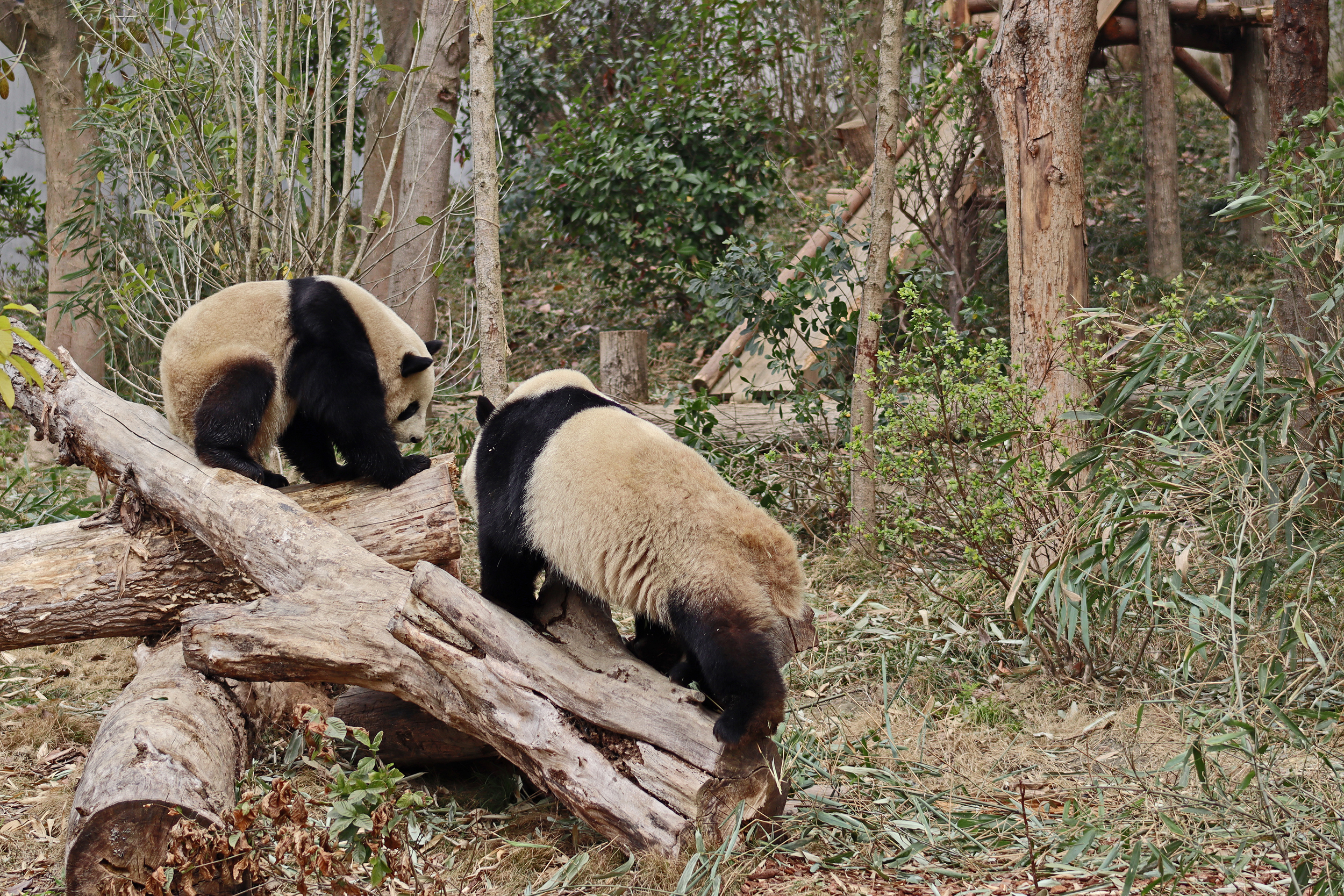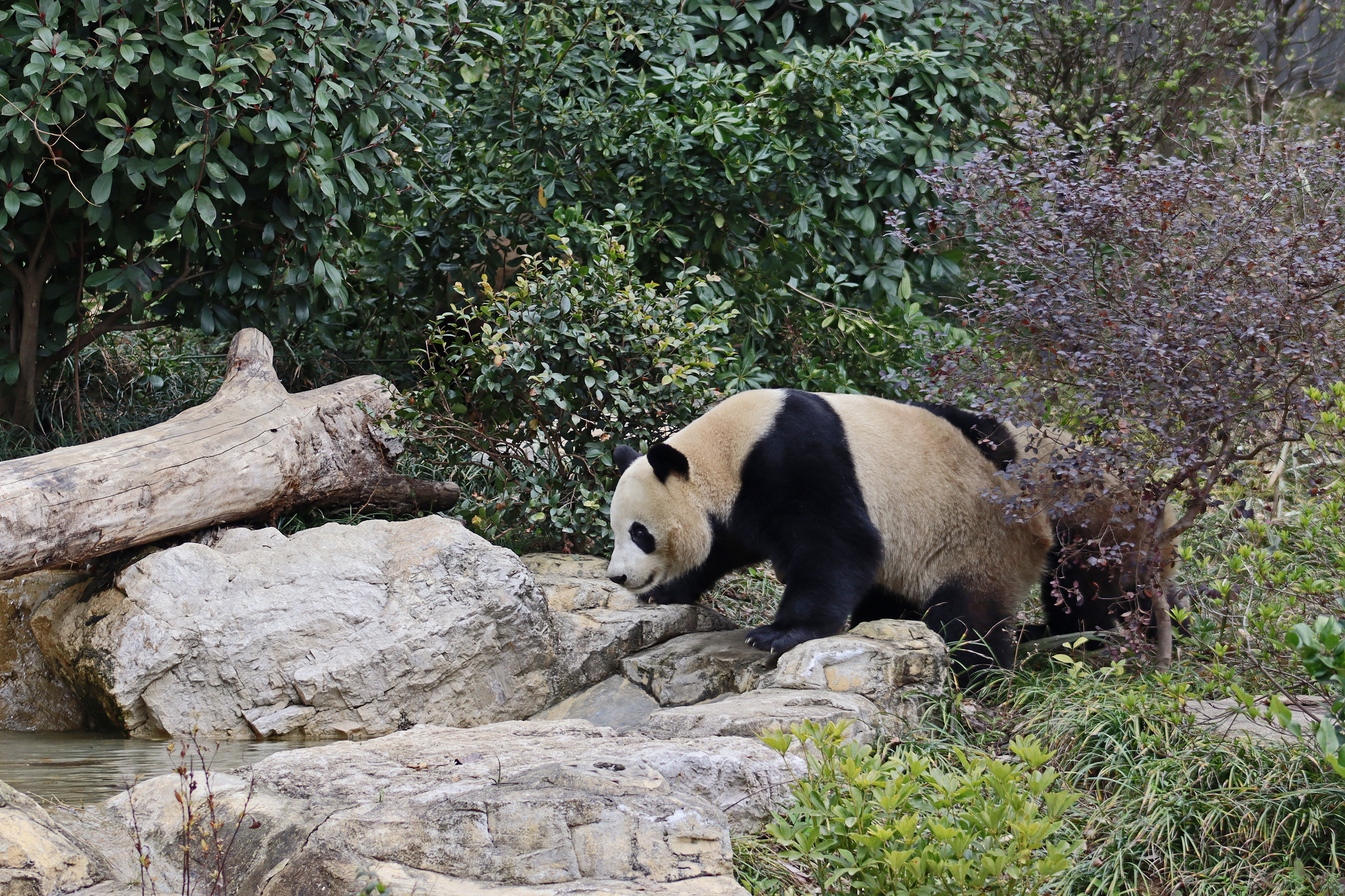 I saw Ji Ran, Ke Nian and Bei Xia last year on my visit and had such a great experience watching them – I was so excited to see they are still living together and even more excited to have seen them outside this time, so much better than before! These 3 are so playful and up to mischief, and I saw exactly that on both days. They were a popular trio with lots of people waiting to see them. Luckily their outdoor yard is huge and has a path around the edge so there are plenty of viewing opportunities for everyone to see them. I really like their yard, it’s good a good mix of hillside with trees and frames to climb on, along with a water feature and a range of terrains. The plants didn’t fare too well on these two days because the 3 of them were running around and bolstering through them all! There wasn’t a lot of downtime for these guys, they were honestly moving around the whole time I was at their yard on both days. The best time to see them seemed to be just before/around lunchtime, but I suspect they were also active first thing in the morning, I just didn’t get there before approx. 11AM on either day. They are still only 2.5 years old, so very young and full of energy – it’s all about the playtime! I’m hoping they can stay a trio for a few more years and that I can see them again on my next visit =)