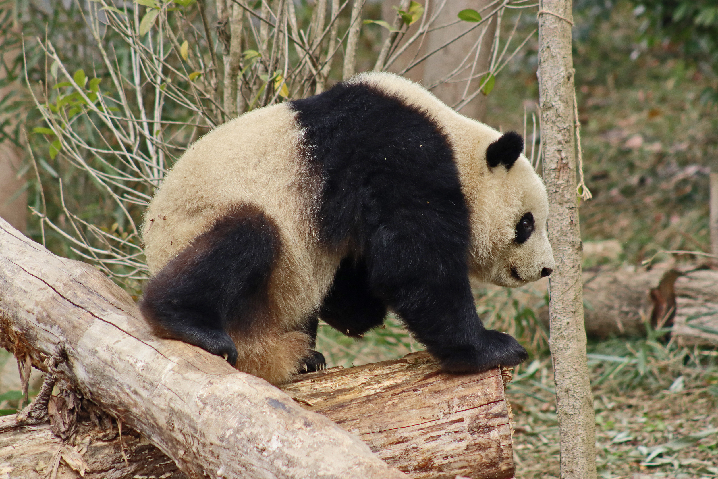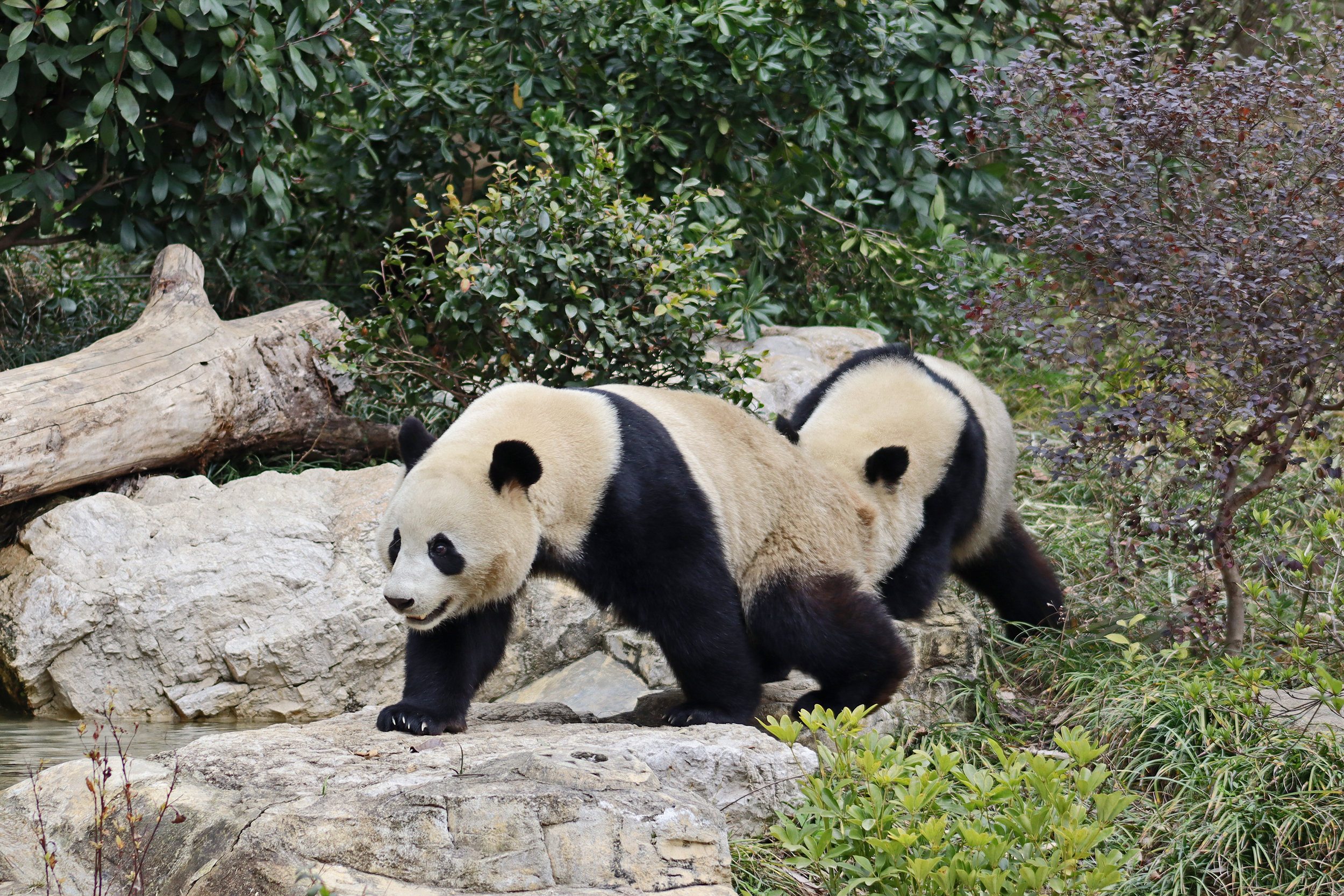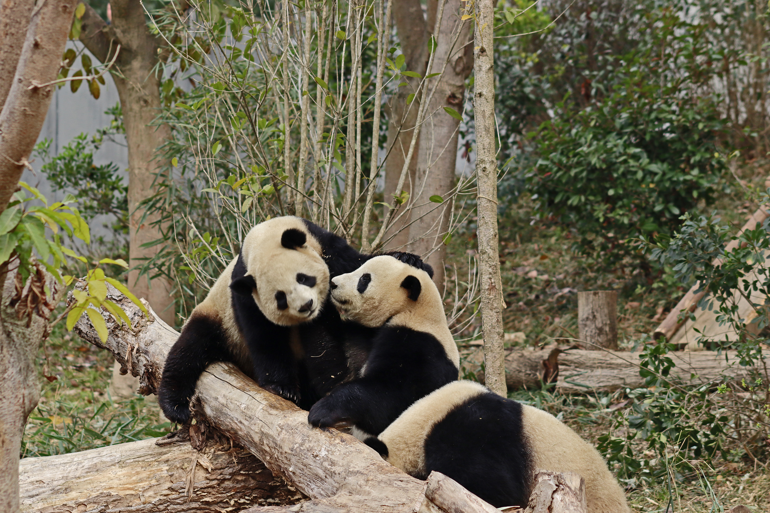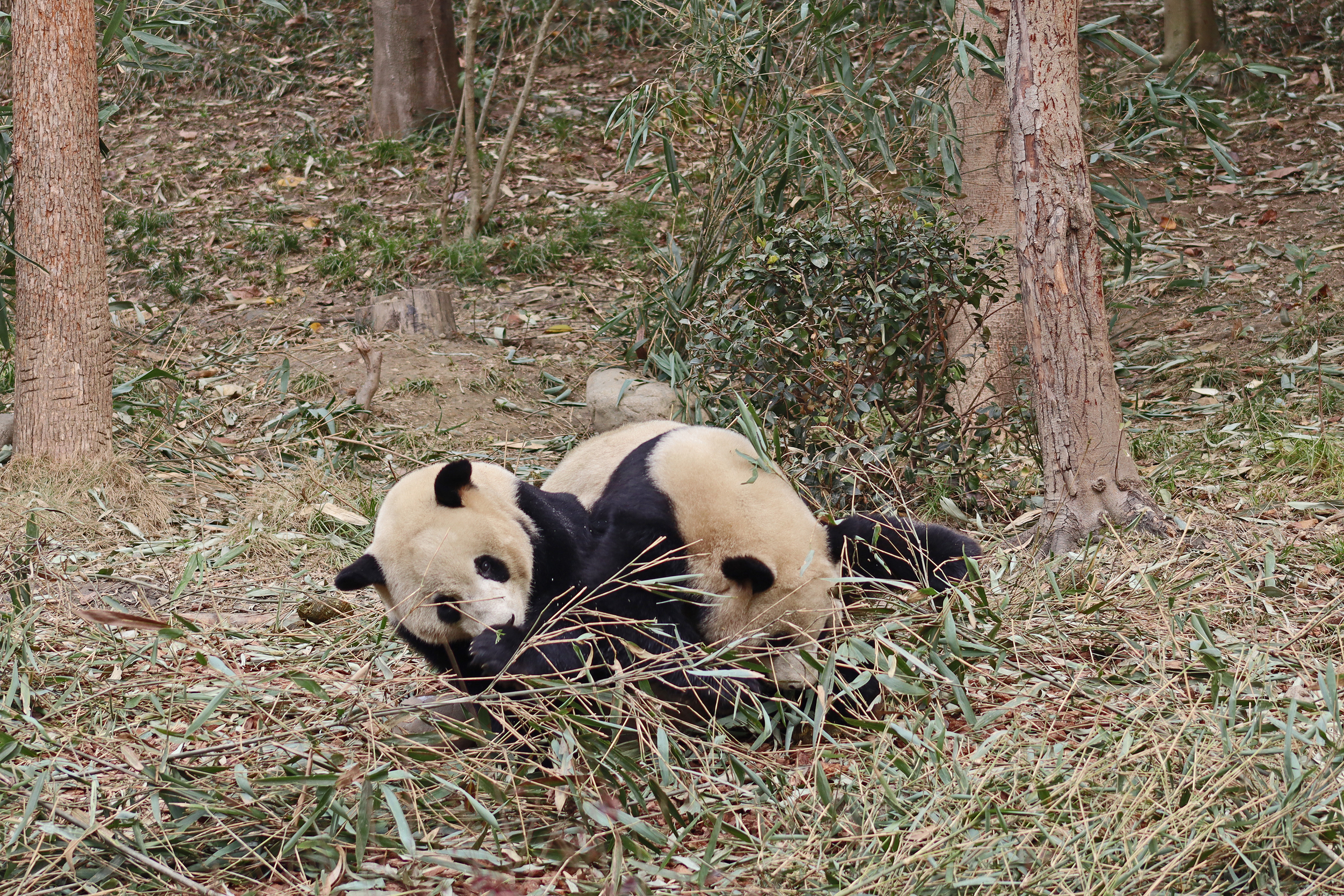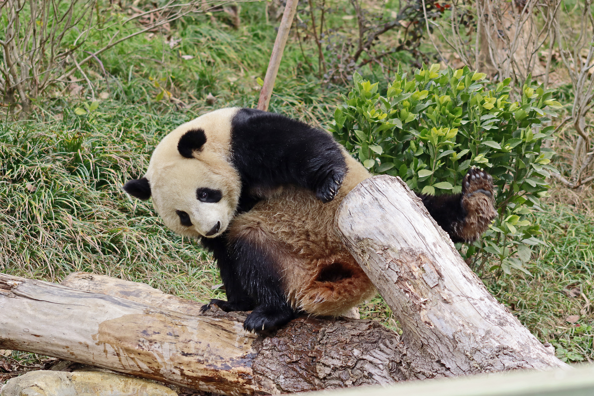 I saw Ji Ran, Ke Nian and Bei Xia last year on my visit and had such a great experience watching them – I was so excited to see they are still living together and even more excited to have seen them outside this time, so much better than before! These 3 are so playful and up to mischief, and I saw exactly that on both days. They were a popular trio with lots of people waiting to see them. Luckily their outdoor yard is huge and has a path around the edge so there are plenty of viewing opportunities for everyone to see them. I really like their yard, it’s good a good mix of hillside with trees and frames to climb on, along with a water feature and a range of terrains. The plants didn’t fare too well on these two days because the 3 of them were running around and bolstering through them all! There wasn’t a lot of downtime for these guys, they were honestly moving around the whole time I was at their yard on both days. The best time to see them seemed to be just before/around lunchtime, but I suspect they were also active first thing in the morning, I just didn’t get there before approx. 11AM on either day. They are still only 2.5 years old, so very young and full of energy – it’s all about the playtime! I’m hoping they can stay a trio for a few more years and that I can see them again on my next visit =)