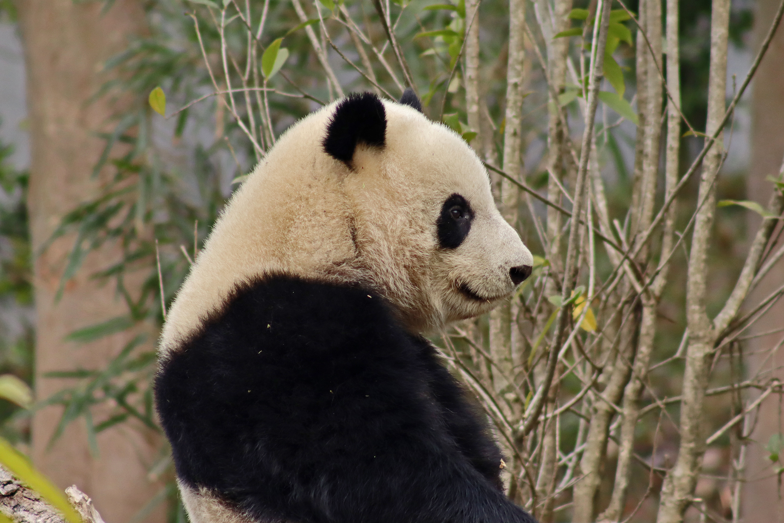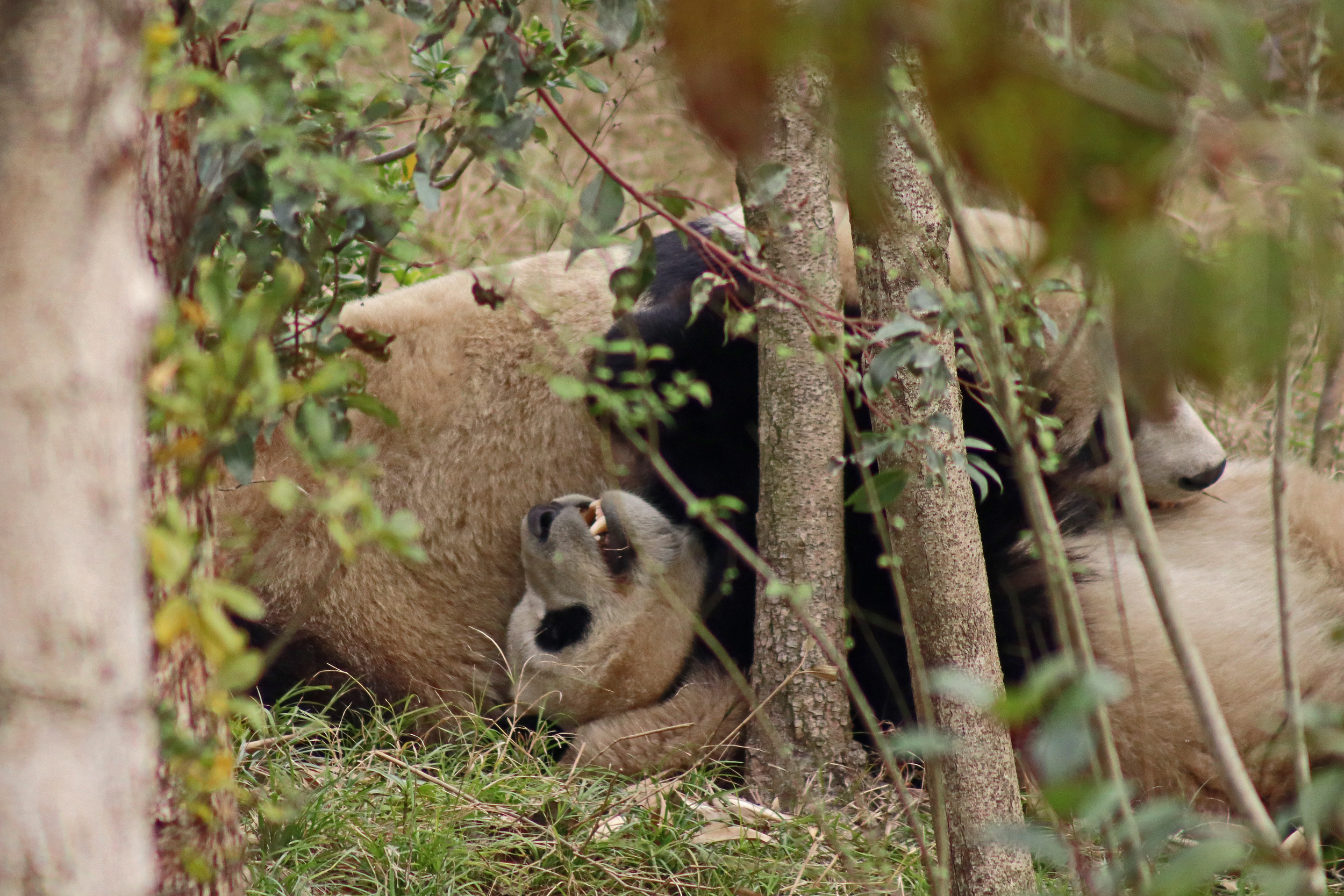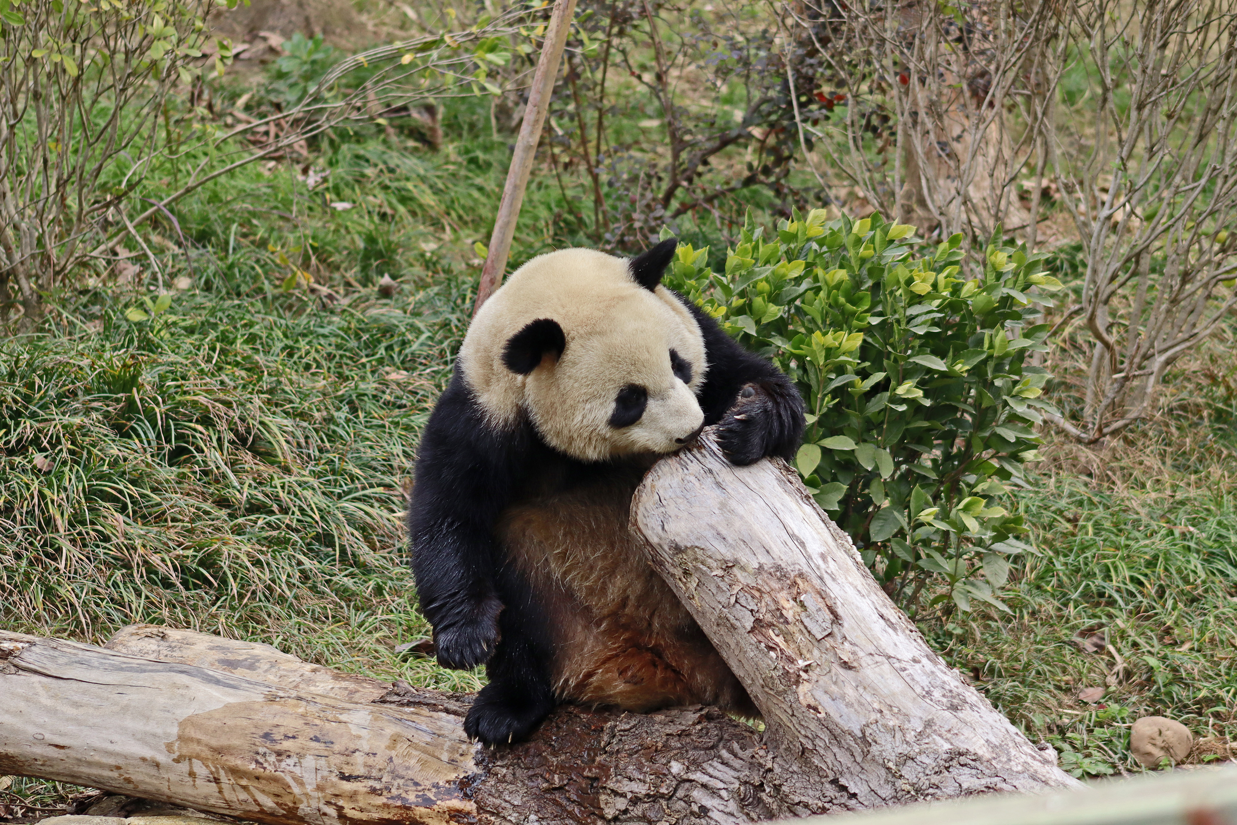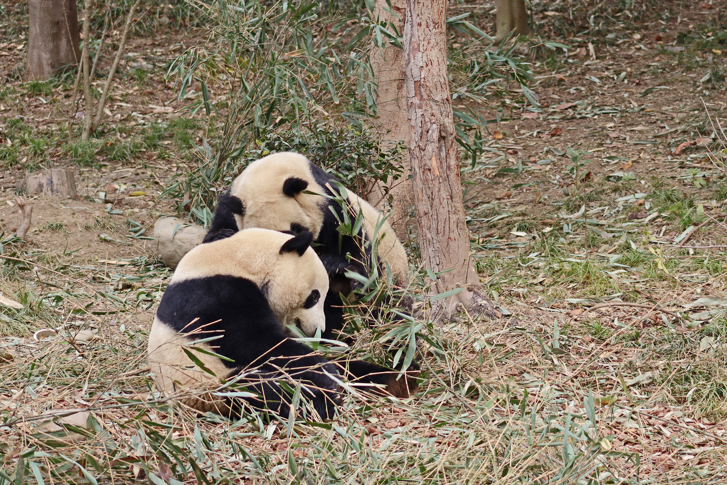 I saw Ji Ran, Ke Nian and Bei Xia last year on my visit and had such a great experience watching them – I was so excited to see they are still living together and even more excited to have seen them outside this time, so much better than before! These 3 are so playful and up to mischief, and I saw exactly that on both days. They were a popular trio with lots of people waiting to see them. Luckily their outdoor yard is huge and has a path around the edge so there are plenty of viewing opportunities for everyone to see them. I really like their yard, it’s good a good mix of hillside with trees and frames to climb on, along with a water feature and a range of terrains. The plants didn’t fare too well on these two days because the 3 of them were running around and bolstering through them all! There wasn’t a lot of downtime for these guys, they were honestly moving around the whole time I was at their yard on both days. The best time to see them seemed to be just before/around lunchtime, but I suspect they were also active first thing in the morning, I just didn’t get there before approx. 11AM on either day. They are still only 2.5 years old, so very young and full of energy – it’s all about the playtime! I’m hoping they can stay a trio for a few more years and that I can see them again on my next visit =)