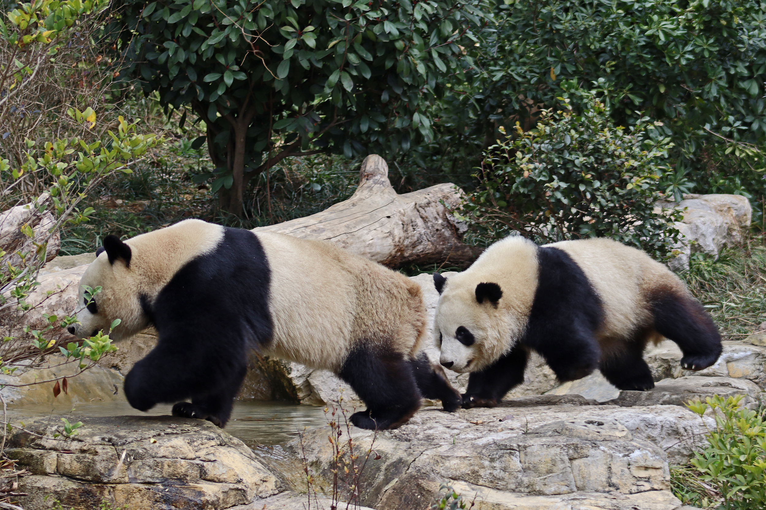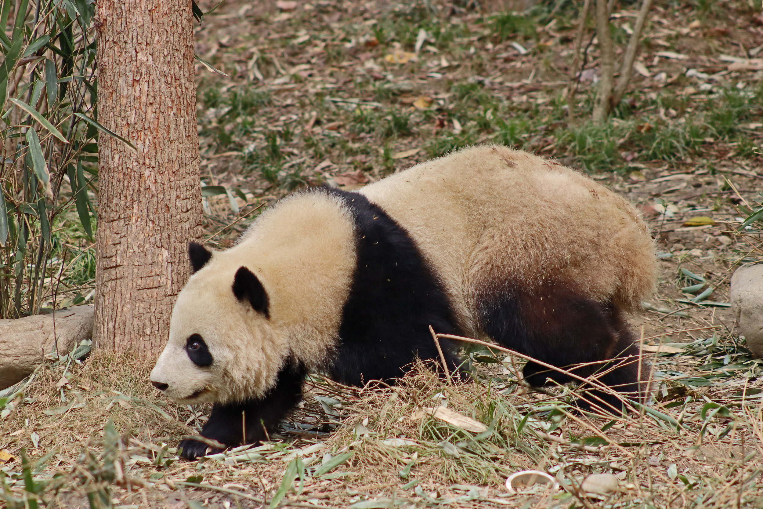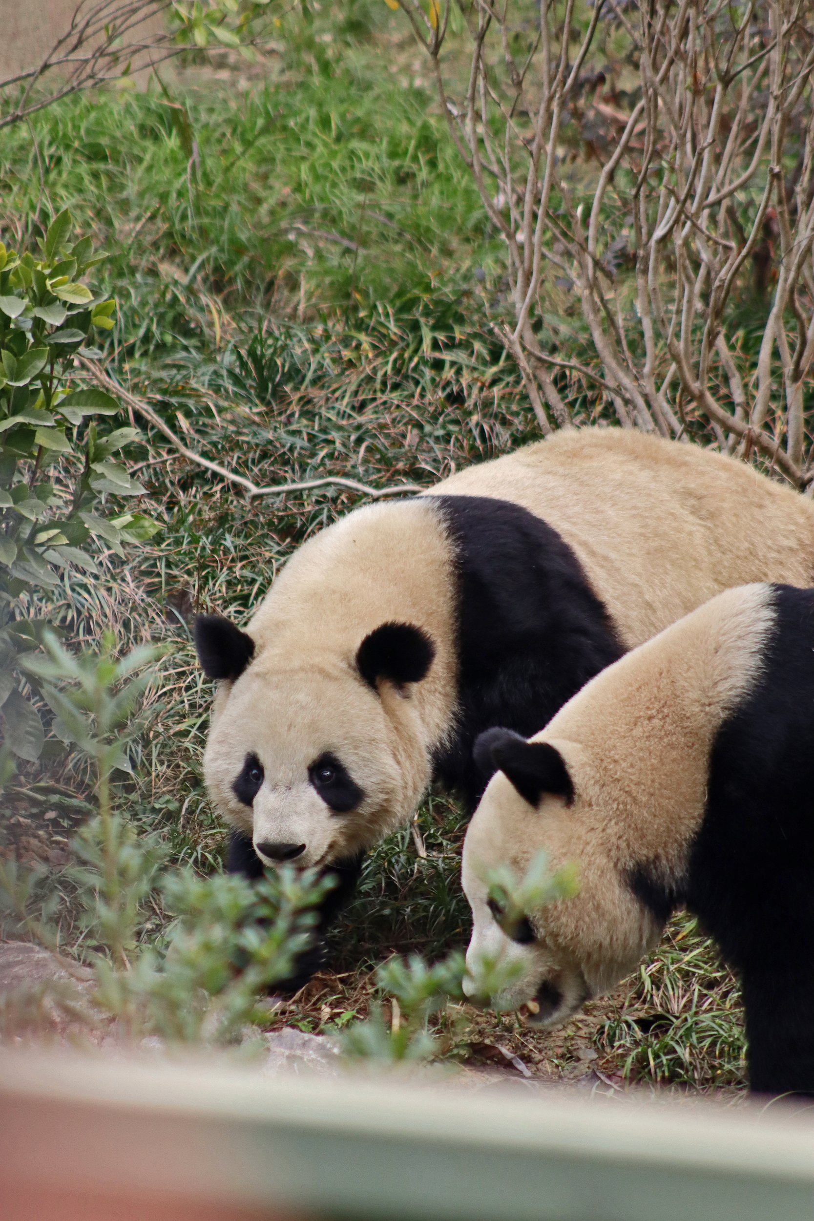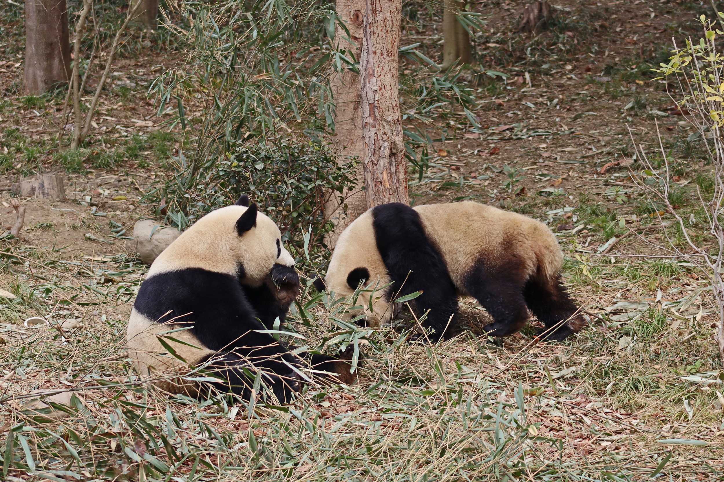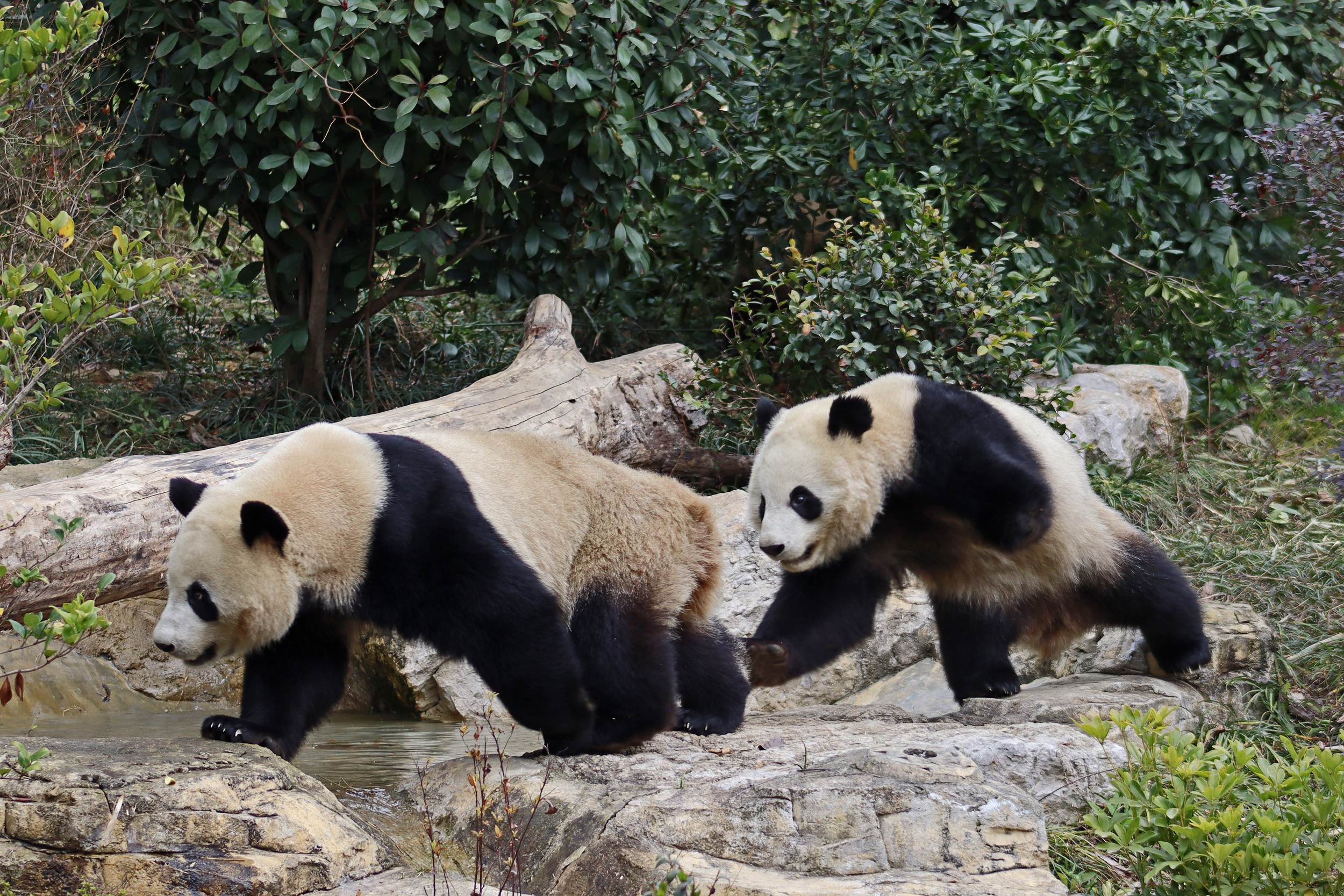 I saw Ji Ran, Ke Nian and Bei Xia last year on my visit and had such a great experience watching them – I was so excited to see they are still living together and even more excited to have seen them outside this time, so much better than before! These 3 are so playful and up to mischief, and I saw exactly that on both days. They were a popular trio with lots of people waiting to see them. Luckily their outdoor yard is huge and has a path around the edge so there are plenty of viewing opportunities for everyone to see them. I really like their yard, it’s good a good mix of hillside with trees and frames to climb on, along with a water feature and a range of terrains. The plants didn’t fare too well on these two days because the 3 of them were running around and bolstering through them all! There wasn’t a lot of downtime for these guys, they were honestly moving around the whole time I was at their yard on both days. The best time to see them seemed to be just before/around lunchtime, but I suspect they were also active first thing in the morning, I just didn’t get there before approx. 11AM on either day. They are still only 2.5 years old, so very young and full of energy – it’s all about the playtime! I’m hoping they can stay a trio for a few more years and that I can see them again on my next visit =)