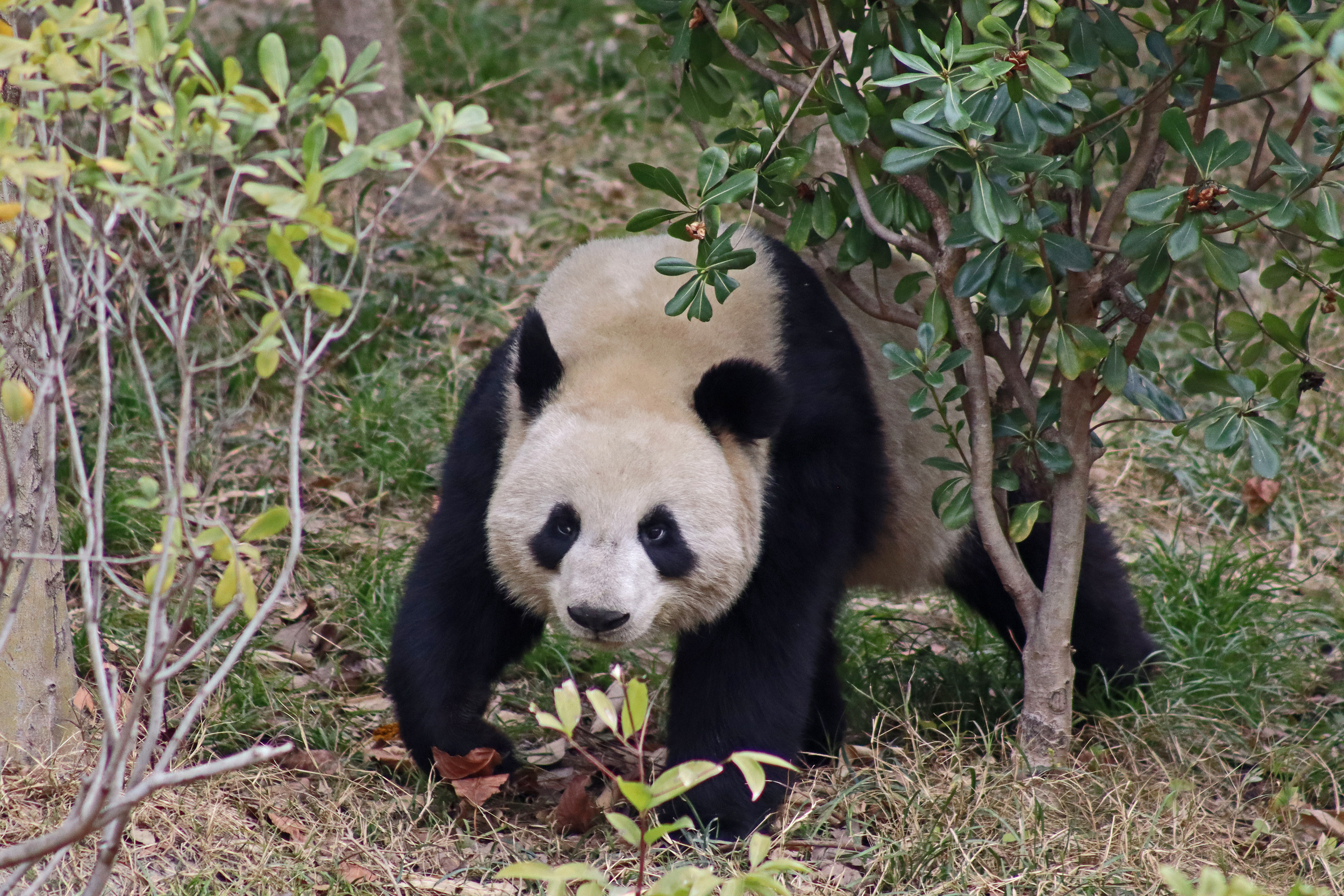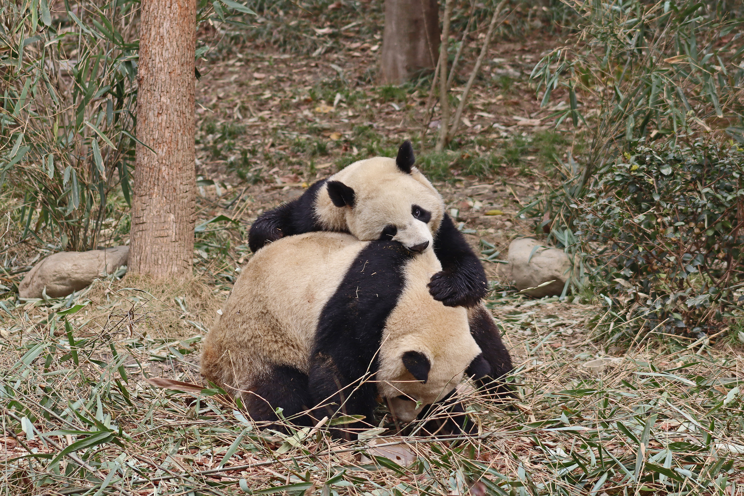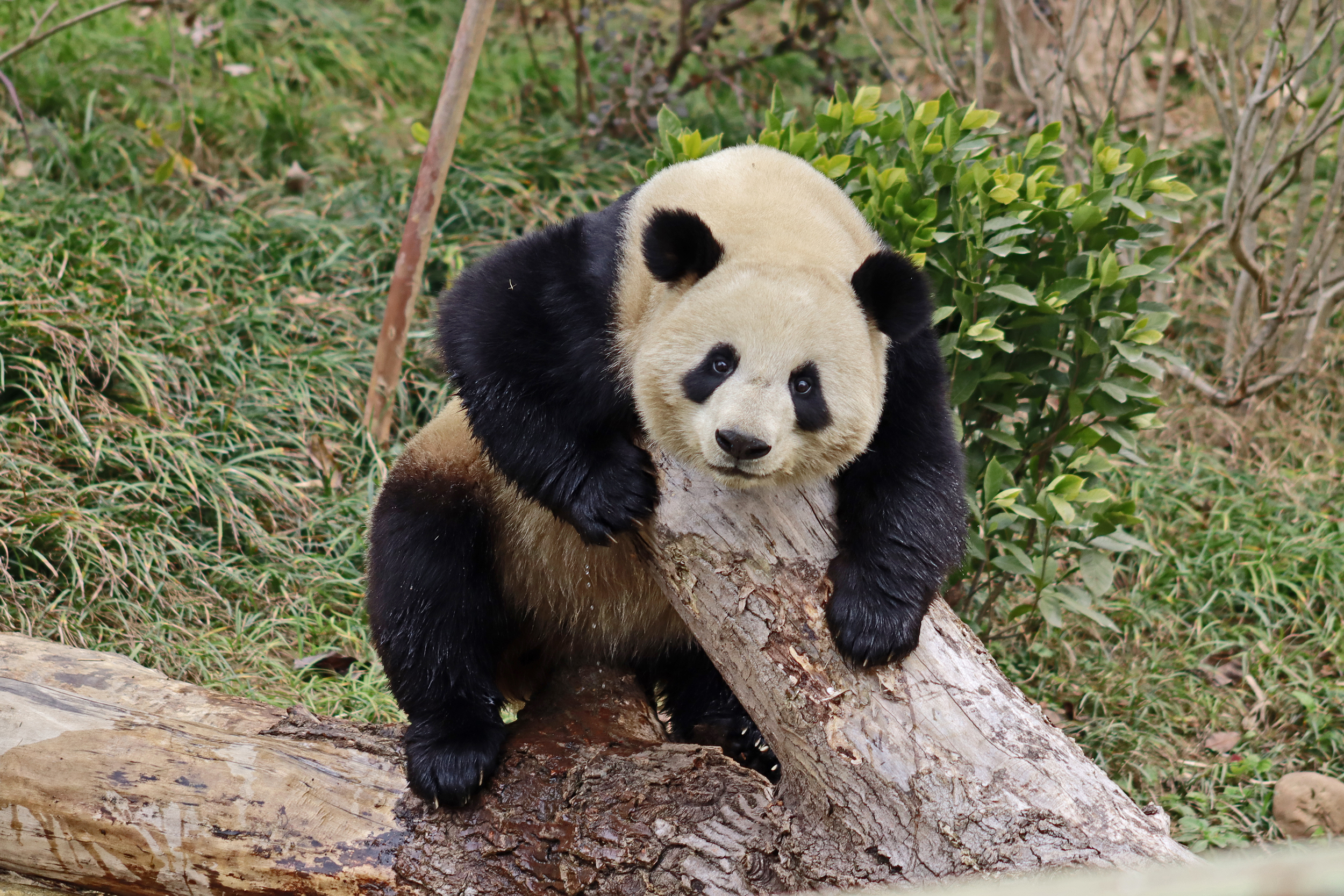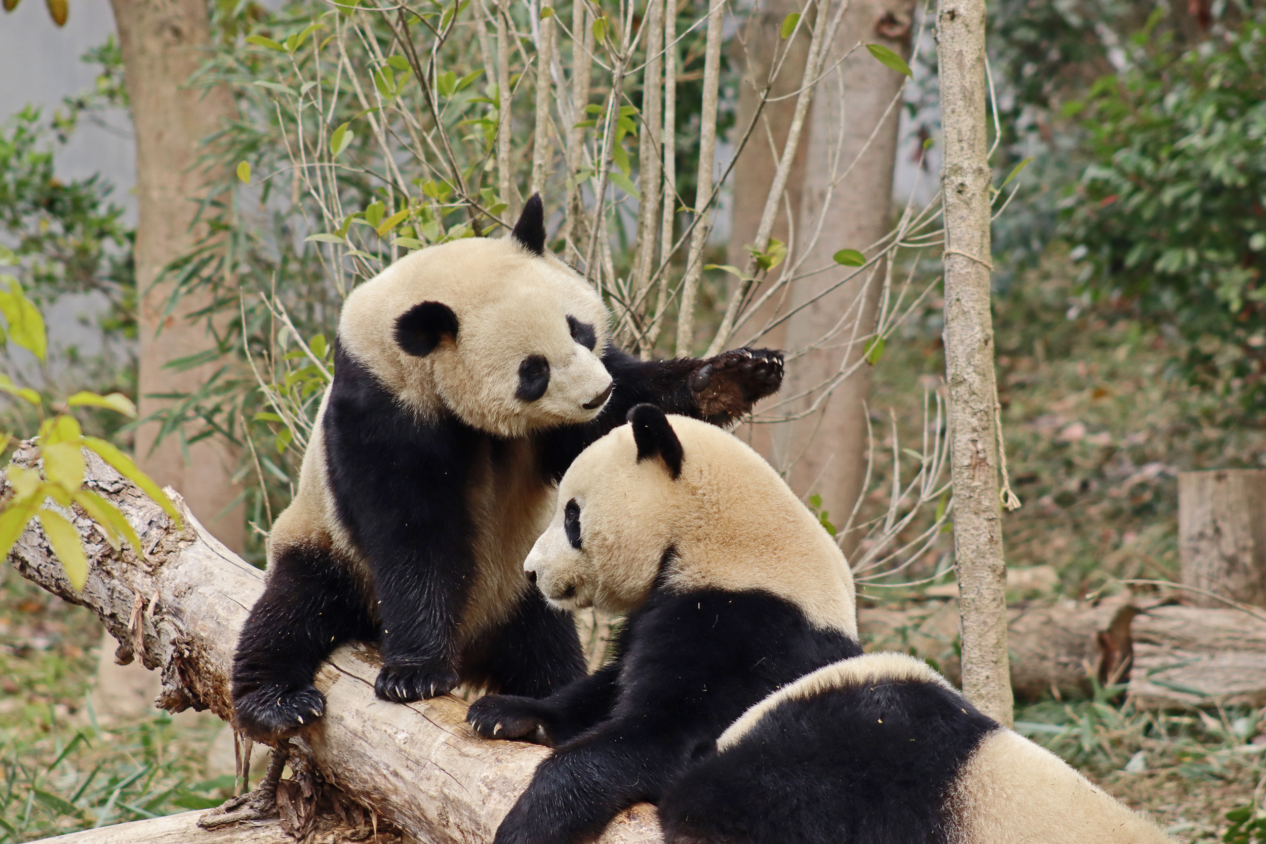 I saw Ji Ran, Ke Nian and Bei Xia last year on my visit and had such a great experience watching them – I was so excited to see they are still living together and even more excited to have seen them outside this time, so much better than before! These 3 are so playful and up to mischief, and I saw exactly that on both days. They were a popular trio with lots of people waiting to see them. Luckily their outdoor yard is huge and has a path around the edge so there are plenty of viewing opportunities for everyone to see them. I really like their yard, it’s good a good mix of hillside with trees and frames to climb on, along with a water feature and a range of terrains. The plants didn’t fare too well on these two days because the 3 of them were running around and bolstering through them all! There wasn’t a lot of downtime for these guys, they were honestly moving around the whole time I was at their yard on both days. The best time to see them seemed to be just before/around lunchtime, but I suspect they were also active first thing in the morning, I just didn’t get there before approx. 11AM on either day. They are still only 2.5 years old, so very young and full of energy – it’s all about the playtime! I’m hoping they can stay a trio for a few more years and that I can see them again on my next visit =)