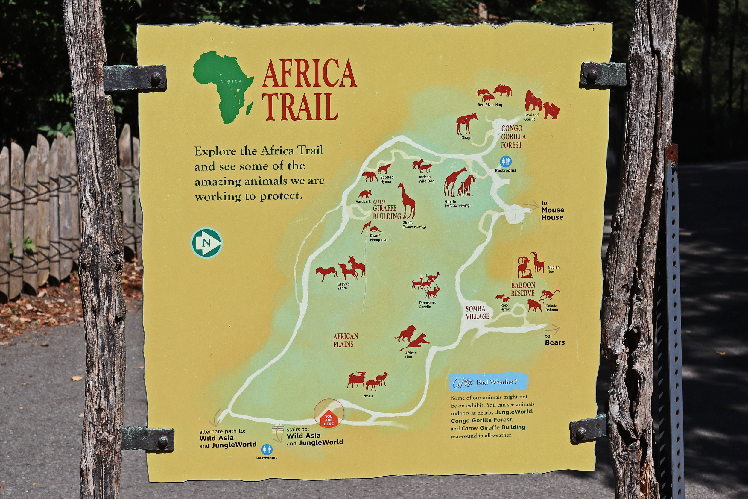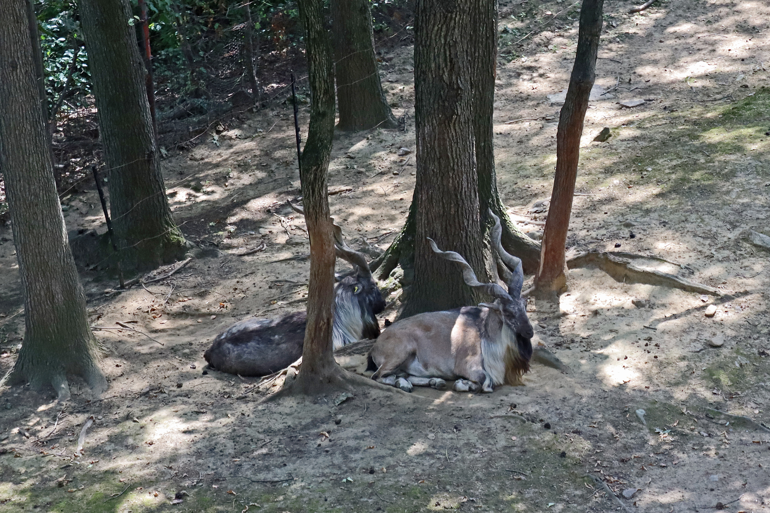 The African Trail was the first area that I went to – it’s large and has plenty of animals to see. What was really nice was the eyelines in the plains area, so at first glance it really looked like the nyala and the lions were sharing a space! A very nice deception and I could only spot the split when I was quite close to the lions, which makes for a very nice impact. The spaces for both were very nice. I also liked the Baboon Reserve area, although I didn’t see a lot of the baboons themselves, but did see their yard-mates, the rock hyrax which I just think are super cute, and the ibex. Giraffes are always a favourite to see, these guys spent their time mostly at the back of their yard, so I didn’t get to see them close up. There is also an inside area in the giraffe building, but they spent all their time outside on my visit. Inside you can also see some other animals, I especially was excited to see the aardvark, I think this was my first time seeing one! Didn’t get any photos as they are a nocturnal species so were living in a completely darkened area, but I still could see one running around the space, it was much larger than I was expecting. There was also a very impressive large bird living here, annoyingly I didn’t take a picture of the sign but a reverse image search tells me it’s a Von der Decken’s Hornbill – the colours on the bill are beautiful. I tried several times to see the hyena, but had no luck, and end the end of the day got lucky in seeing the African wild dogs, these guys were elusive the rest of the day as well.
