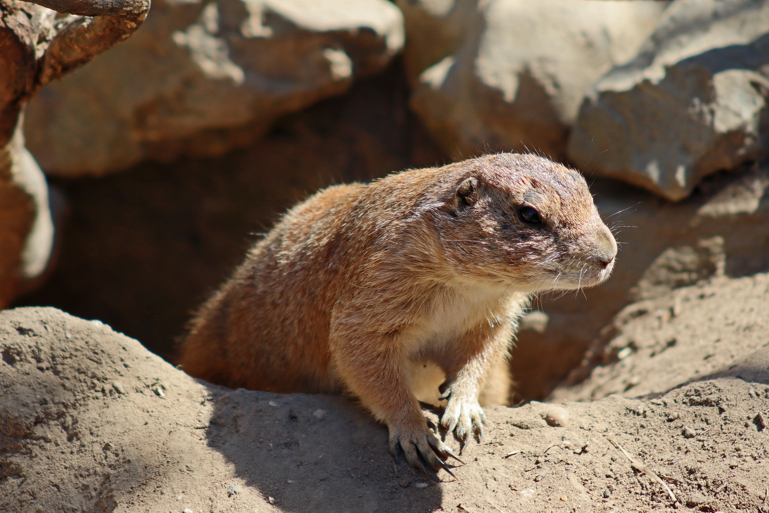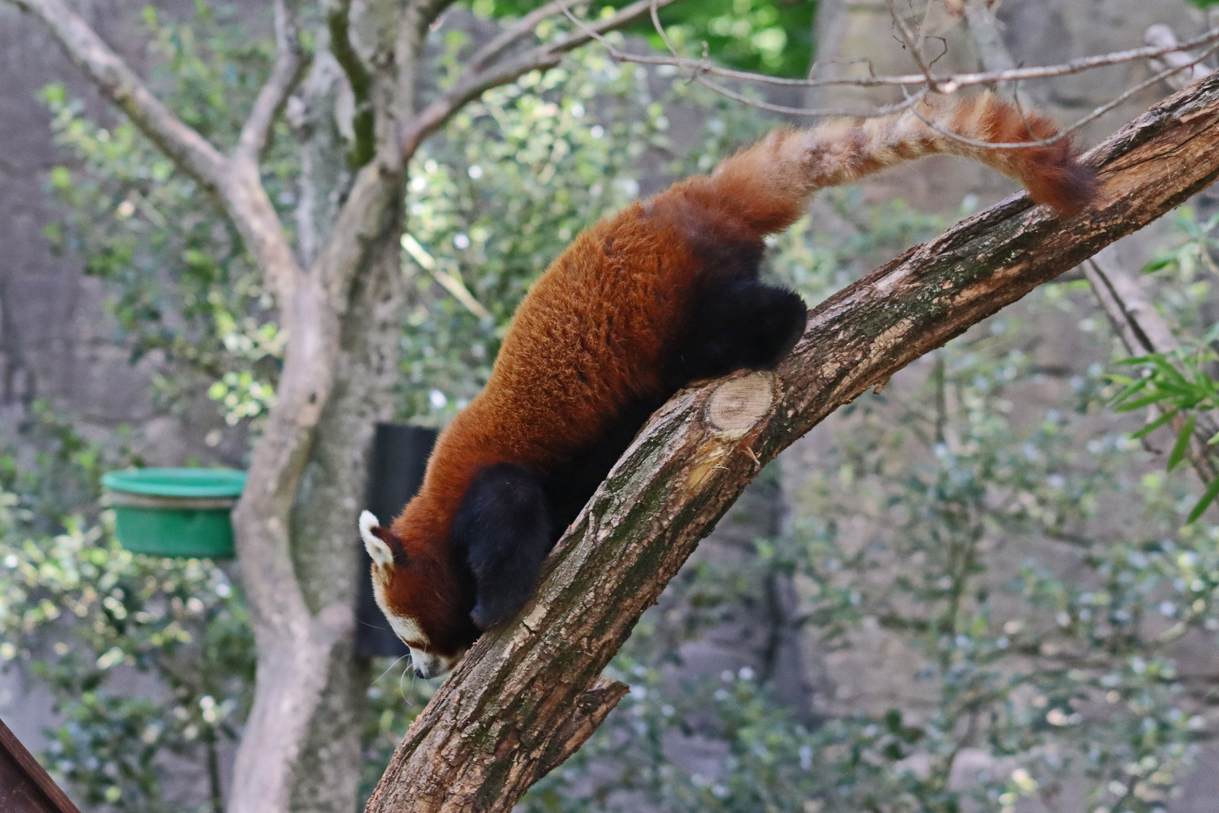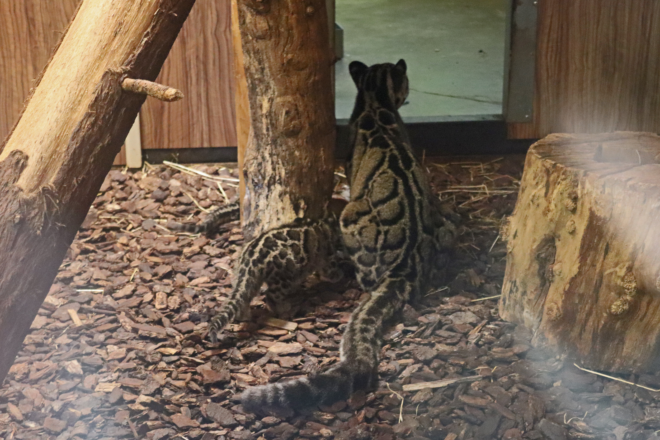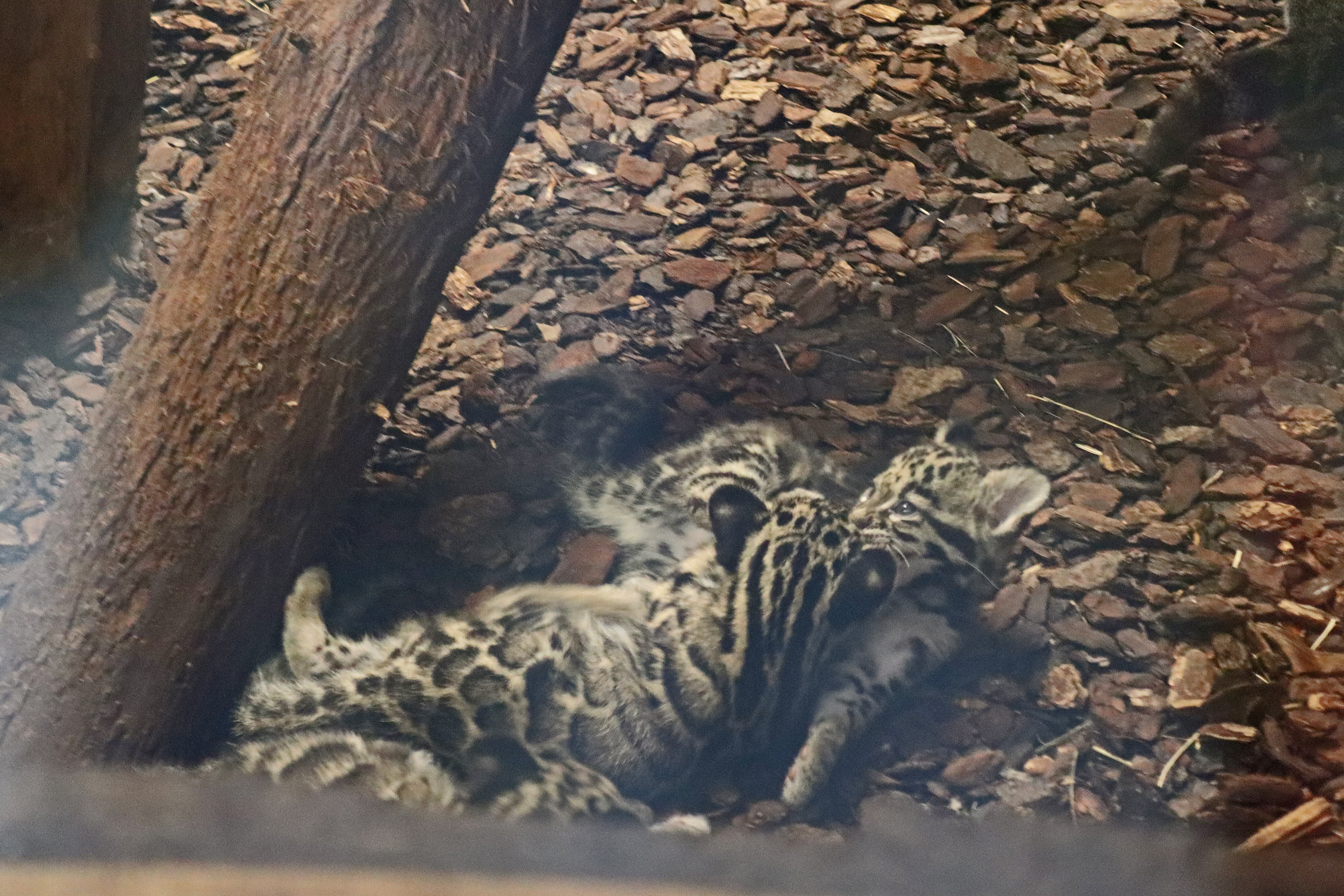 It’s nice starting the journey around the zoo by seeing the giraffes and zebras because they are not too common as the first animals – these guys were out grazing when we arrived and when we were leaving the zebras were already inside and the giraffes were just starting to head inside. The red pandas are also usually also a highlight and we got very lucky, we walked up to their yard and one of them was very active, running around and climbing, so agile and quick! The elephants were very much enjoying the nice weather and were at the far end of their yard which is a part I don’t remember from before, and they were also sharing with red river hogs – for me I like seeing this combination, I don’t think it’s one I’ve seen before and I think it works quite nicely. We spent quite a bit of time watching the prairie dogs – what adorable little guys these are^ So inquisitive and cautious, while being super cute sneaky glances out of the entrances to their burrows. We don’t remember seeing them before, so they could be a new addition or we are just forgetting XD. And one of the highlights was seeing the clouded leopard kittens who were around 11 weeks old when we were there – they were inside with mum the whole time we watched them while dad was outside, I’m not sure if they were being kept separate or if it was the animals choice. There are 3 kittens and they were both interacting with mum and with each other. They were in their inside den which was quite tricky to get photos in because it was quite dark and there was also a glass window, but what cuties – they are tiny compared to mum but they were already showing strength in their play fighting and their tails were already looking pretty long!