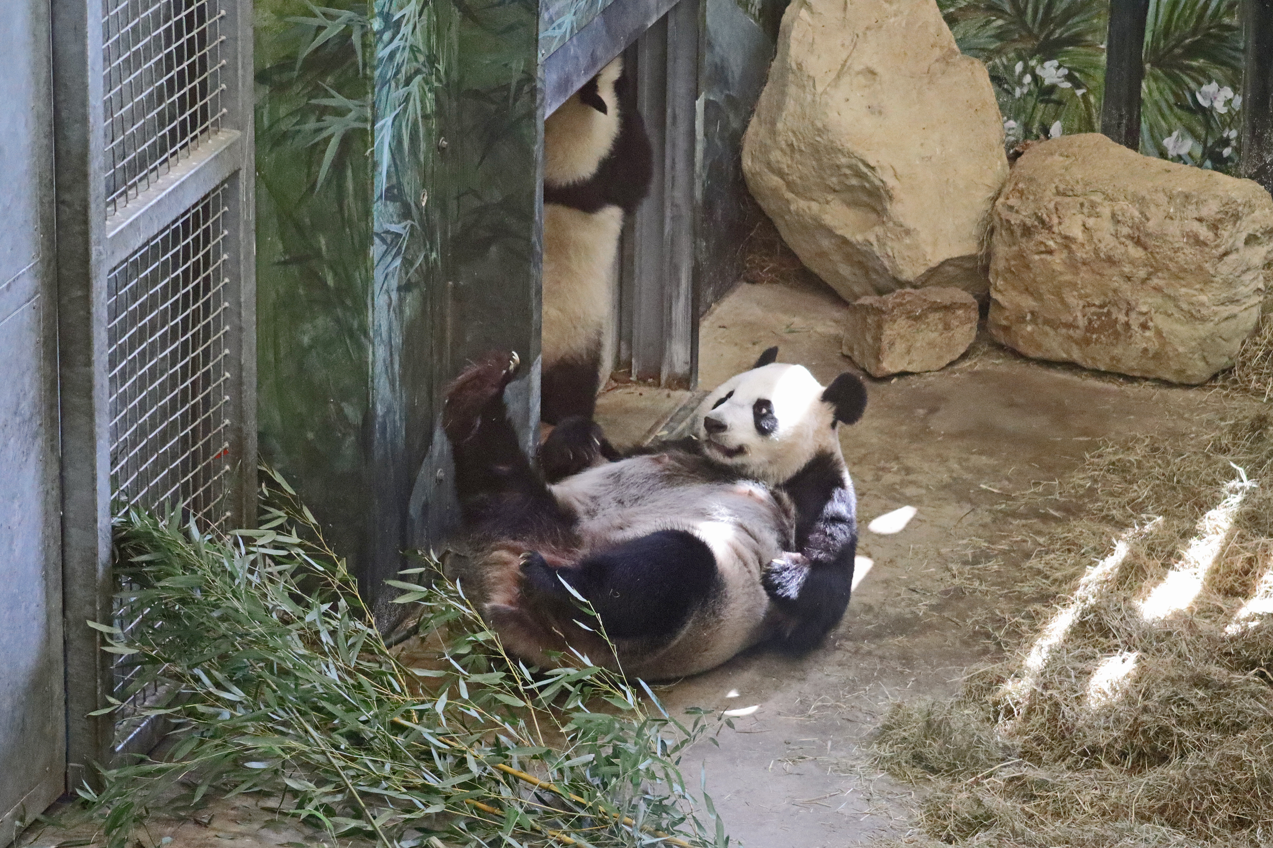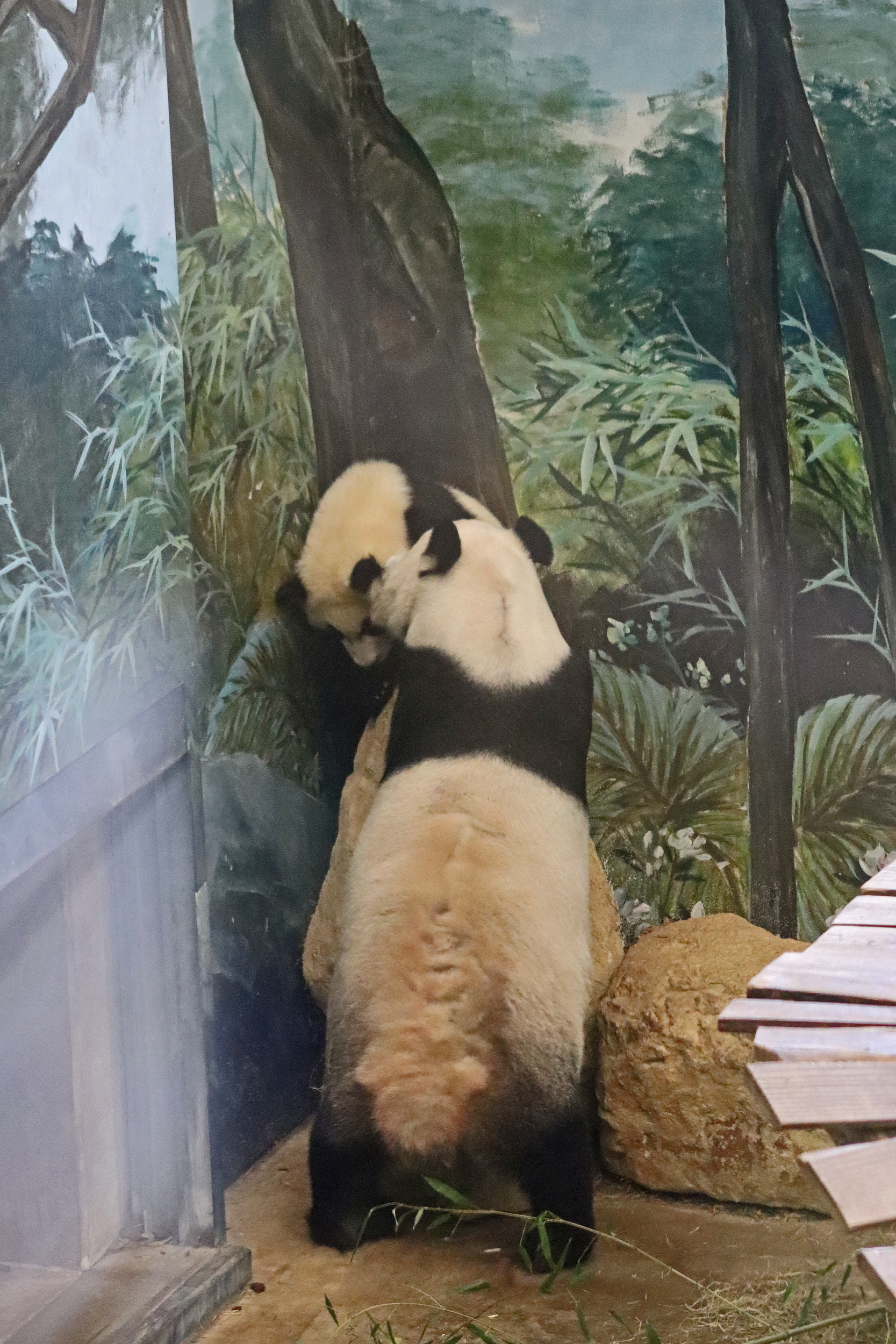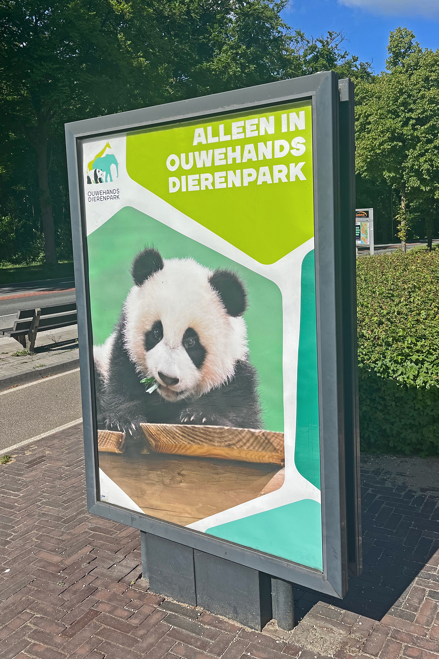 My second time to Ouwehands Dierenpark to see the pandas! After a few days at Pairi Daiza, we took an evening train back to Brussels, then caught the Eurostar to Amsterdam, and then a train to Utrecht for the final nights of our little European tour^ After a good nights rest we headed for Rhenen by train for a day at Ouwehands Dierenpark – this is the second visit for both my mum and I and we were excited to see baby Lang Yue^ We visited first in February 2019, and sadly missed out on seeing first-born cub Fan Xing 梵星 due to the travel regulations for the time she was still in The Netherlands, luckily I’ve seen her since in China, but I didn’t want to miss on seeing Lang Yue as a little one. Overall no changes to the panda area here, but Wu Wen‘s yard has been made suitable for a youngster, with a wall blocking off the upper area of the inside space. Onto the pandas:
