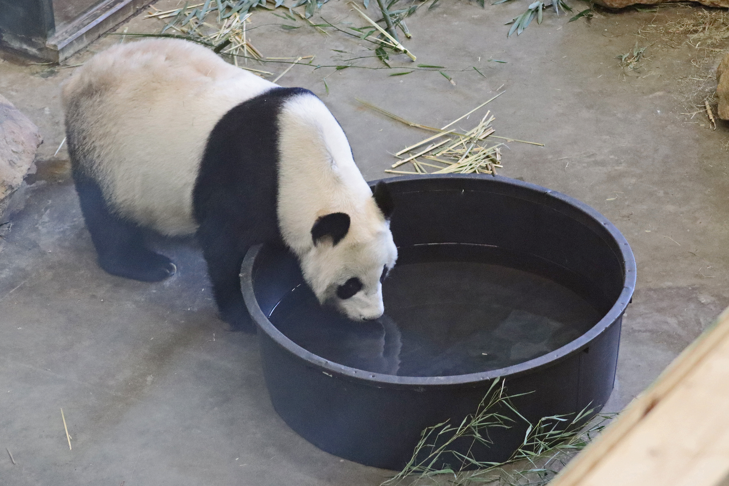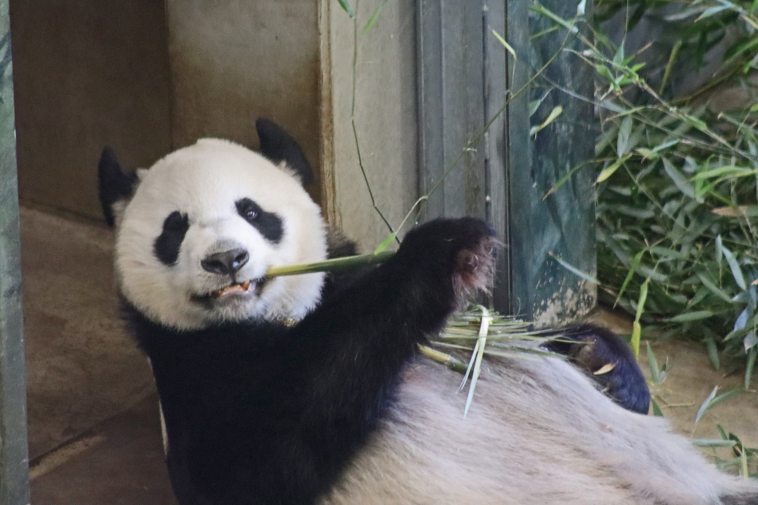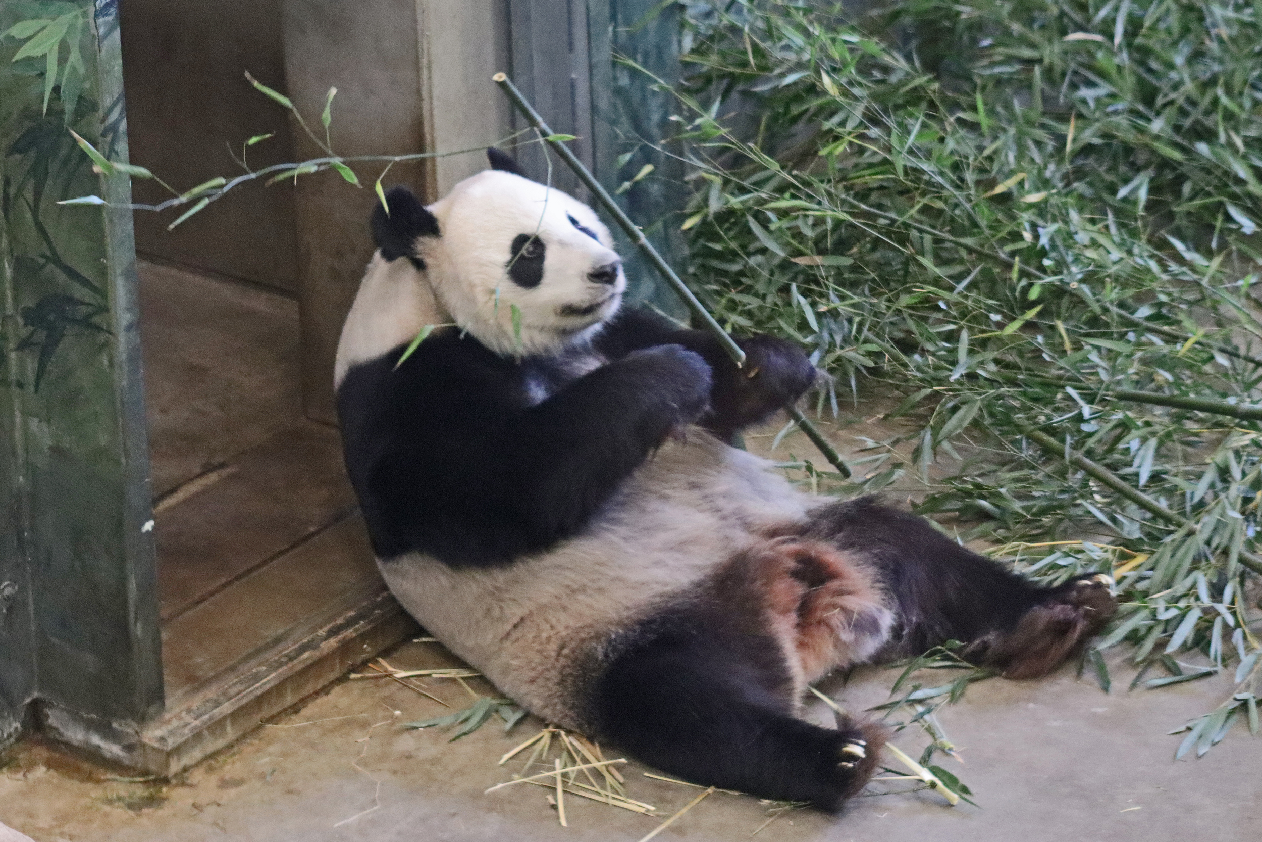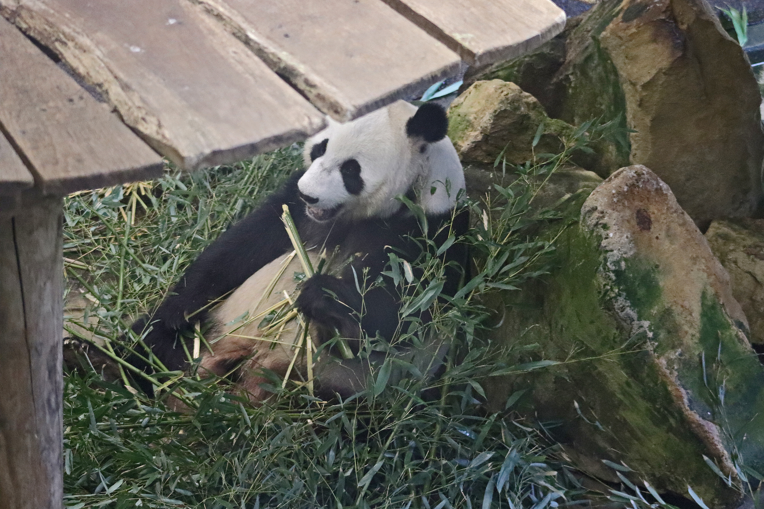 Papa Xing Ya 星雅 – what a sweet guy^ He had access to the outdoor yard all day, but didn’t head out, and actually he didn’t come into the indoor viewing from the back den until around lunchtime, so it took a few hours of stopping by his windows to check if he was there. He mostly choose positions that were tricky to photograph, so I was crouched on the ground to get an angle where he was positioned well in the shot! Luckily he did move around a bit, but spent a good hour or so enjoying his bamboo before heading up onto one of his platforms for a long afternoon nap – gotta love a starfished panda XD And caught him drooling as well! He seems super chilled out and laid back and one day I hope I’ll see him enjoying the outdoor yard because it’s a lovely one.