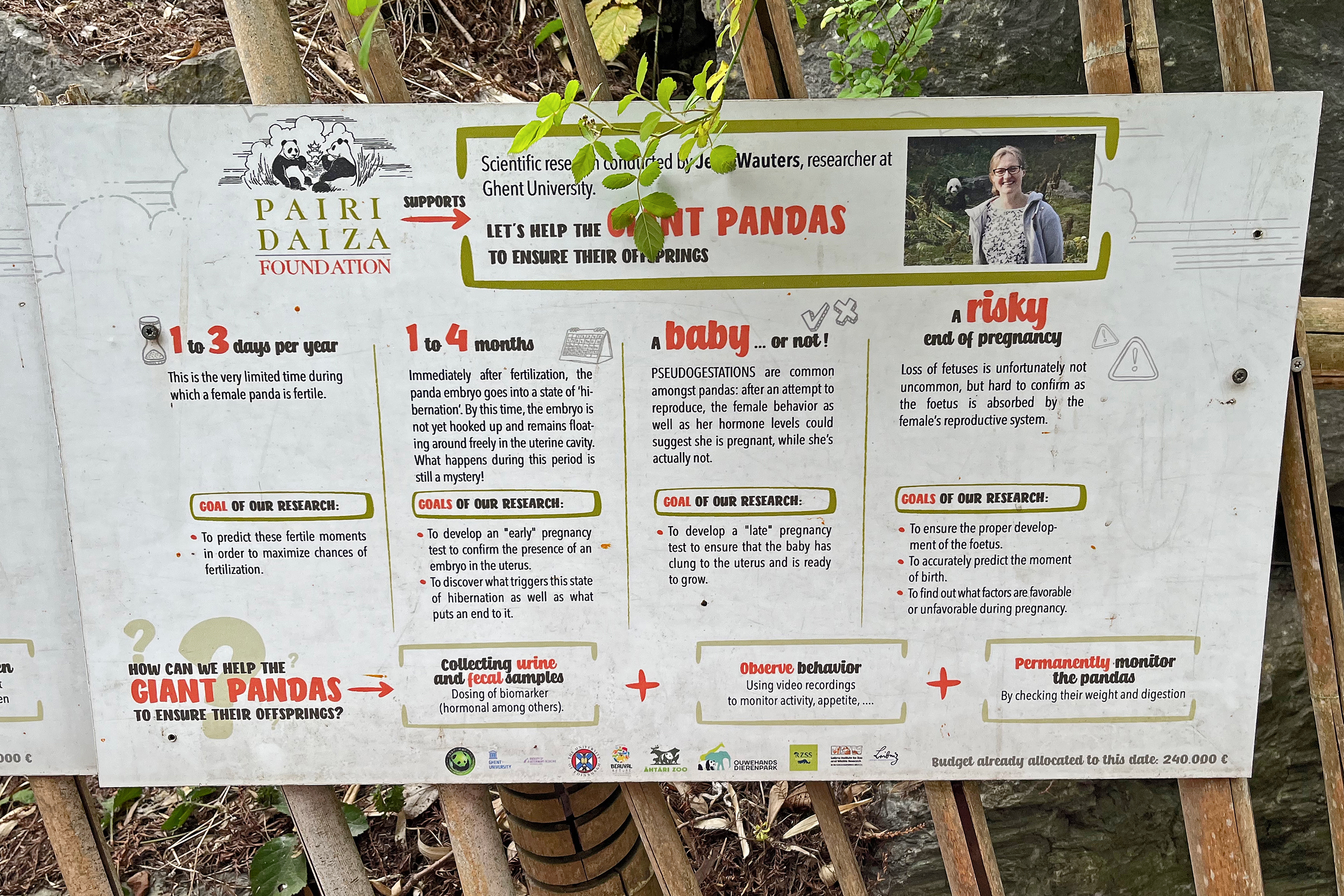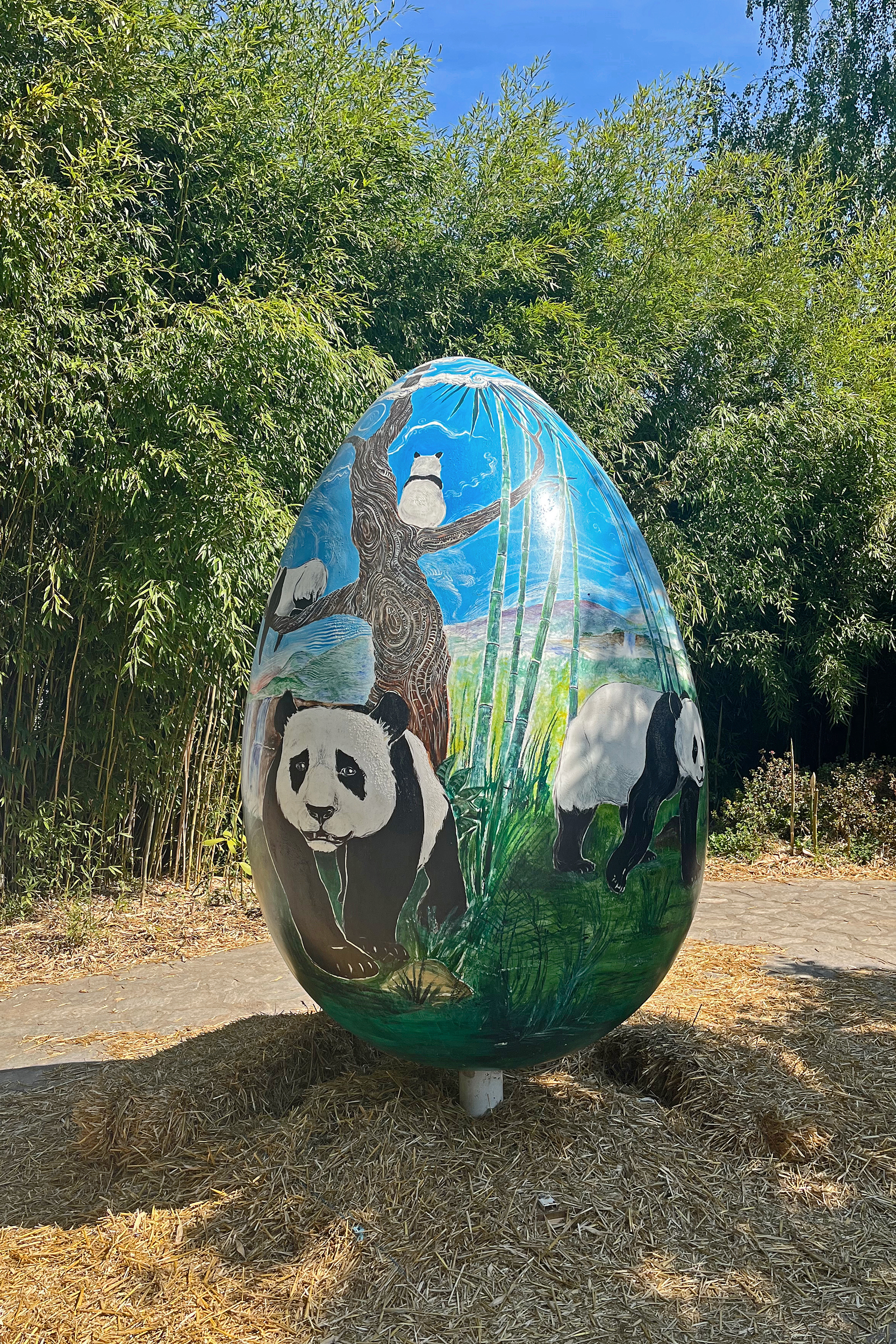 The theming around the Panda Grotto is much the same, I like the design with the rock-work and all the bamboo, and it’s unique from the other panda zoos that I’ve been to. As it was shortly after Easter, the Easter theming was still up, the large eggs with different designs around the park looked great and were fun to check out, and so detailed – of course there was a panda one too^ I also like that the research information is still up – in case you are interested, this was for a project from a number of years ago that I was involved with (spy the University of Edinburgh logo included on the poster, that’s me!) with Jella Wauters, she supervised my PhD and we’re still friends, so it was good to catch up with her on my trip this year.