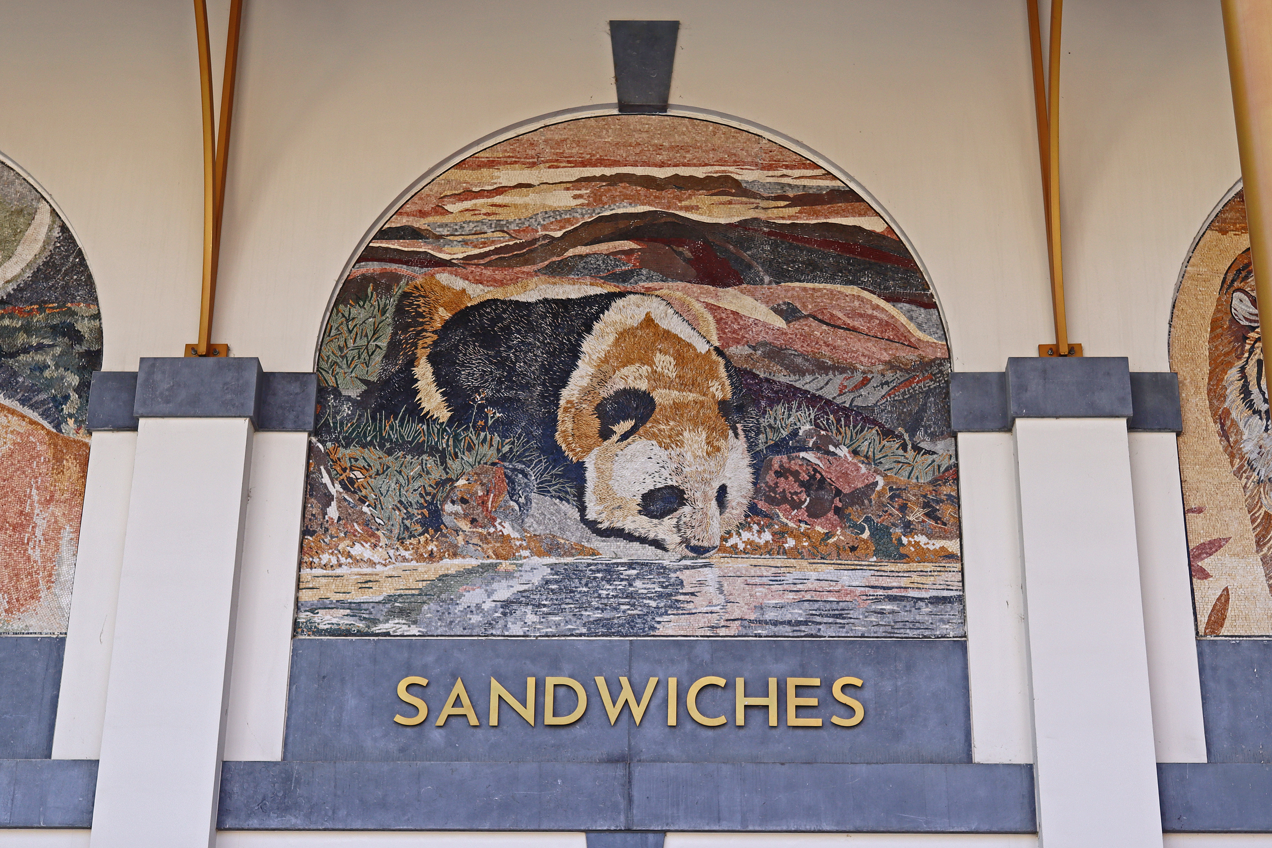 There is still the panda shop at the exit of the Panda Grotto with everything panda, however with the new entrance (more on that later), there is a great display of panda products in the windows of the main shop – I love the sweatshirt I got here back in 2020, so have now also got a t-shirt to match! And speaking of the new entrance, the mosaics and murals are beautiful with of course some panda additions in there too, I really love these and they’re something unique to Pairi Daiza and very memorable. Now I do think the only thing that is perhaps ‘missing’ would be some panda themed food, I think there is/was an ice lolly at one point, but I didn’t see it when I was there. I’m thinking the options like at Ocean Park would be a great fit here^