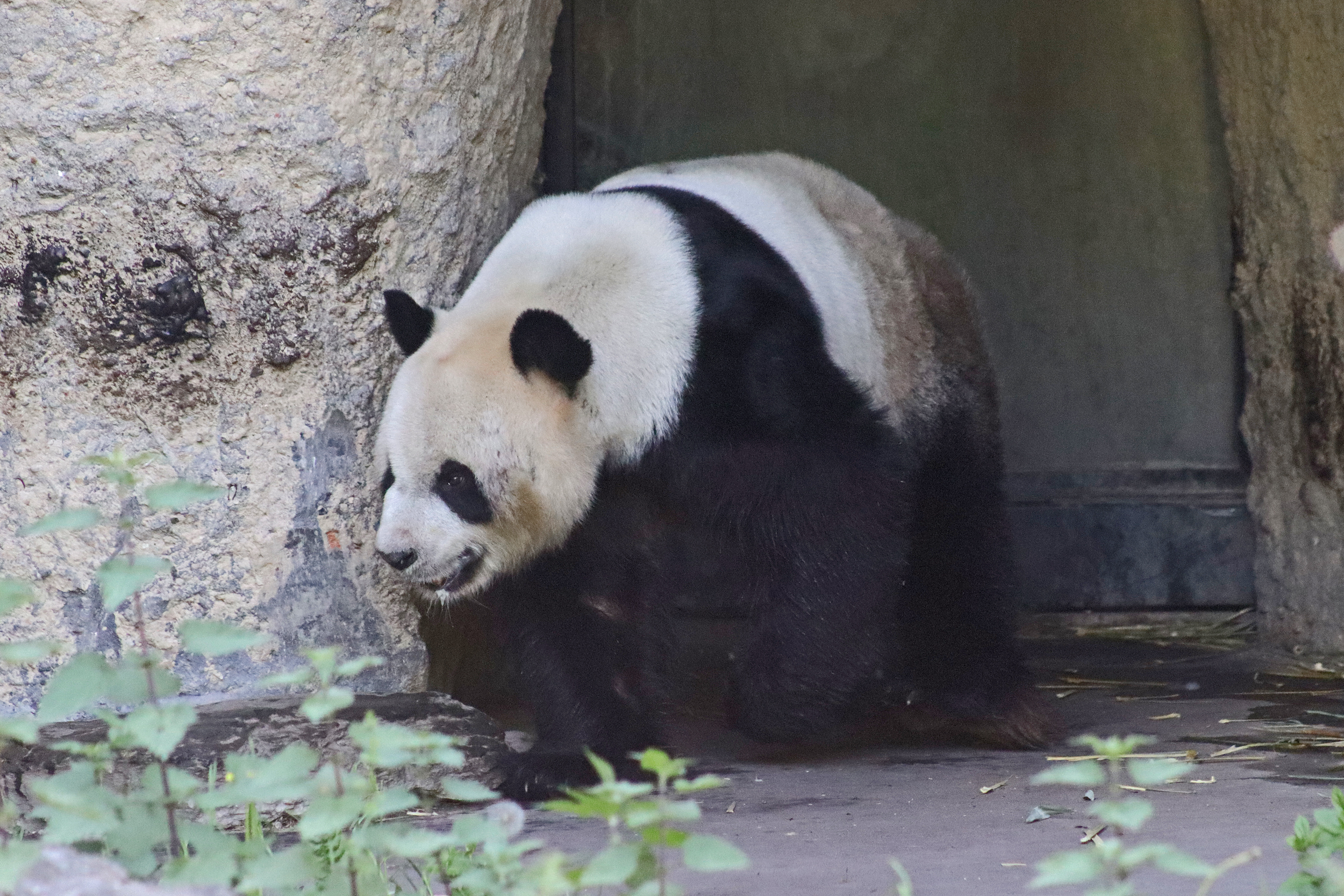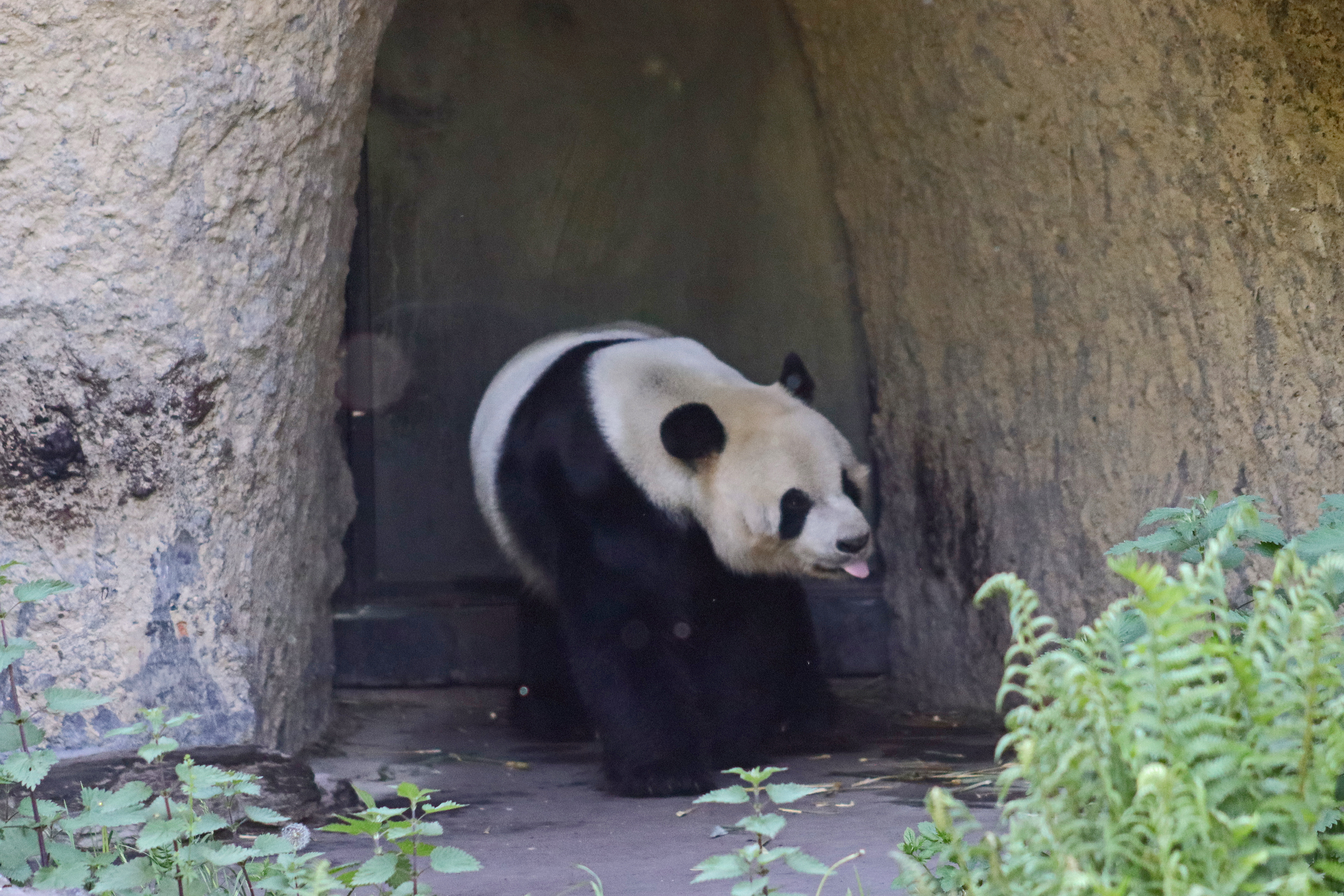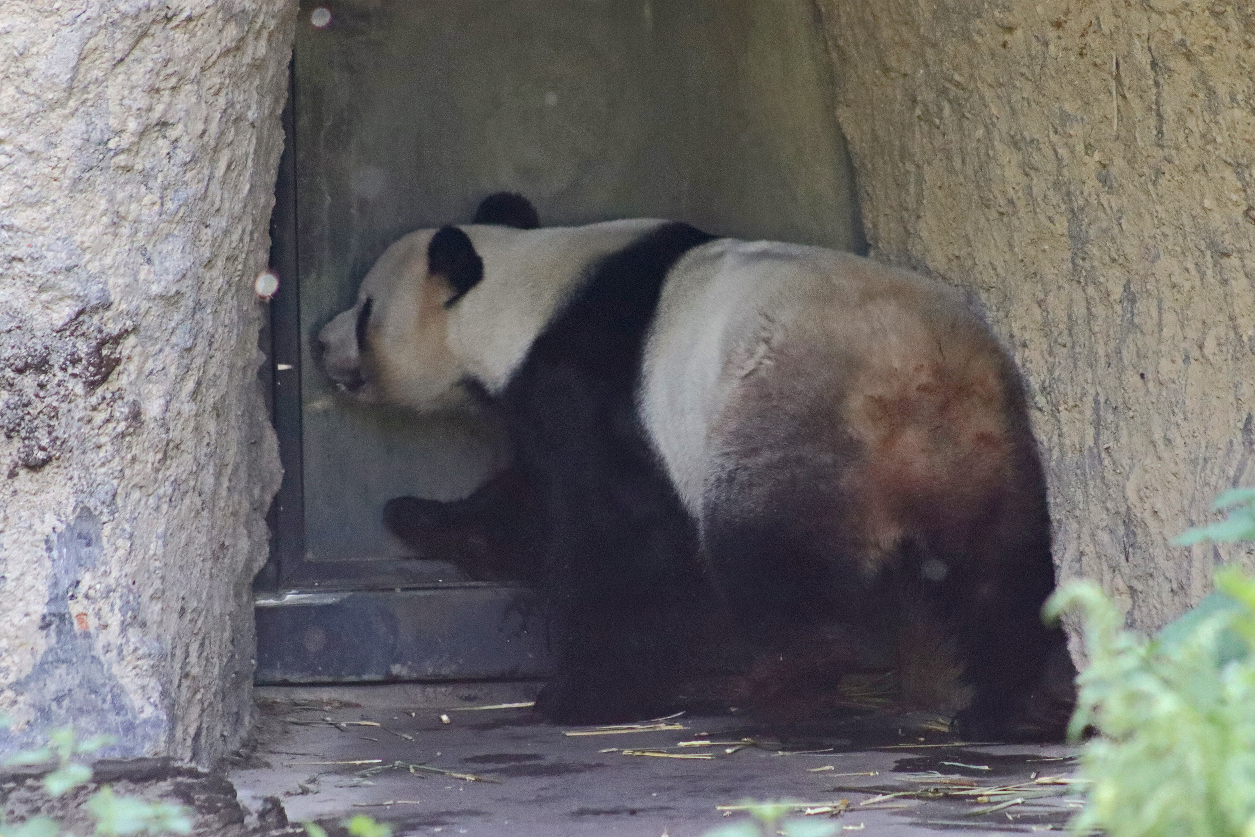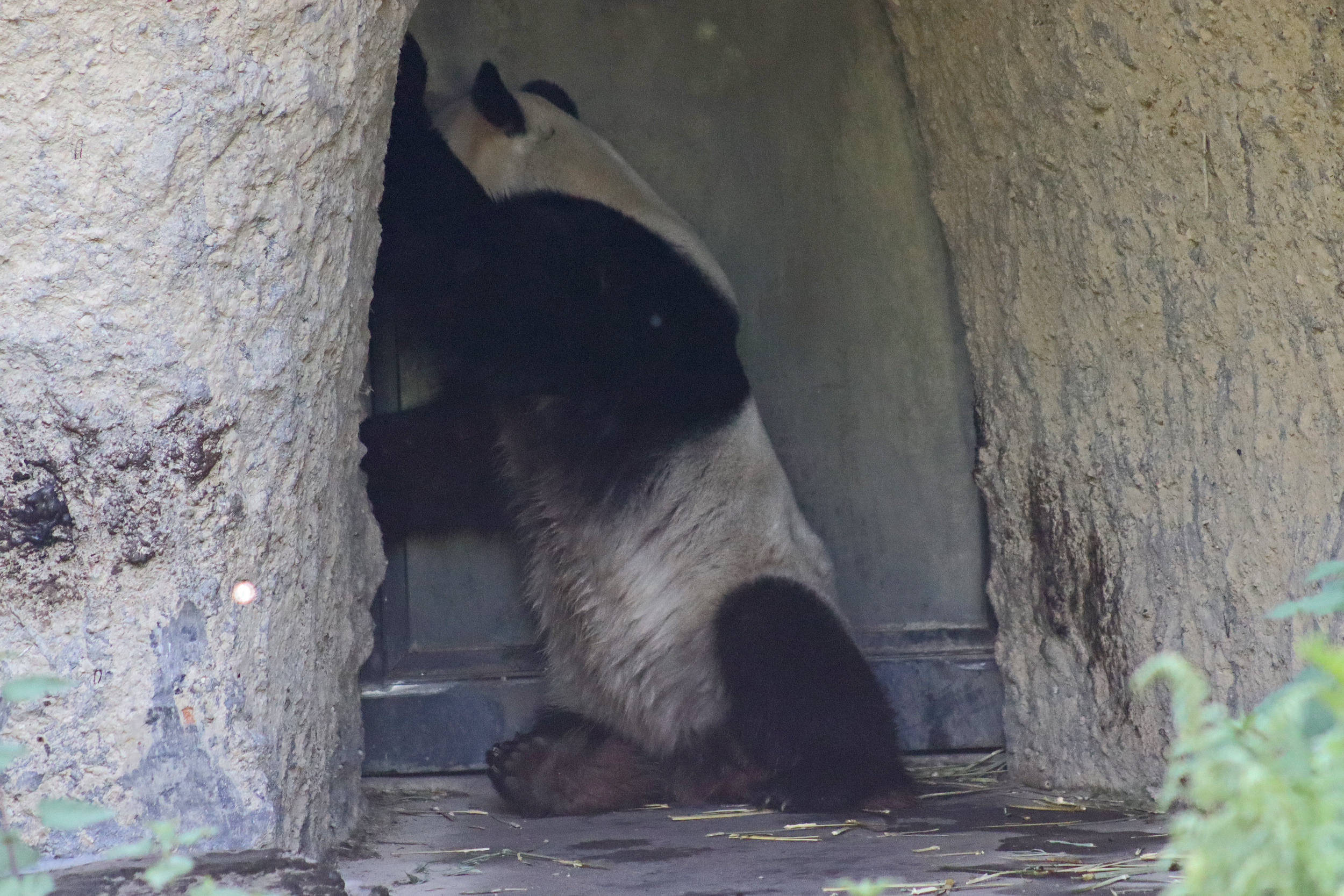 It’s male Xing Hui 星徽! And I really had high hopes of seeing him on this trip, I’ve hardly seen any of him at all on my previous visits. It’s interesting, I’m used to going to places and it being the female who is more shy and elusive, but here it seems that Xing Hui has that personality. Last time I got maybe 4 or 5 photos of him, so I do think this is an upgrade of sorts, because I saw him outside! So lucky to see that, even if he was wanting to go back inside the whole time XD It was very hot that day, so I think he was just wanting to get a little cooler. Even though the photo of him with his tongue out is a little out of focus, it’s such a cute one of him^ I will still persevere to try and get a great viewing experience with him!