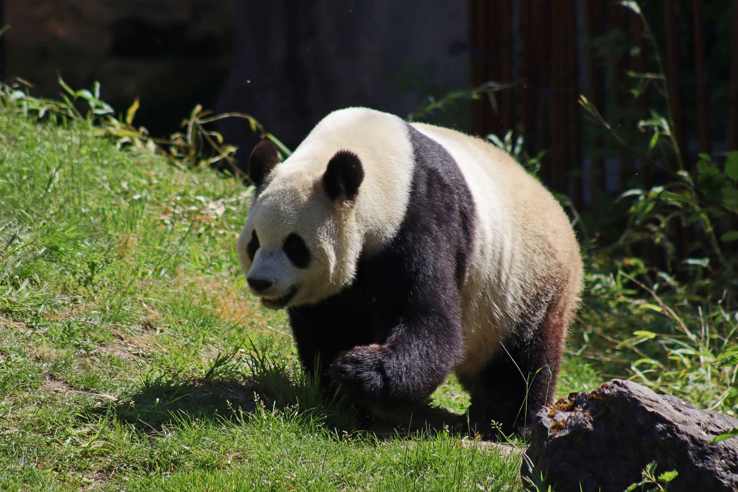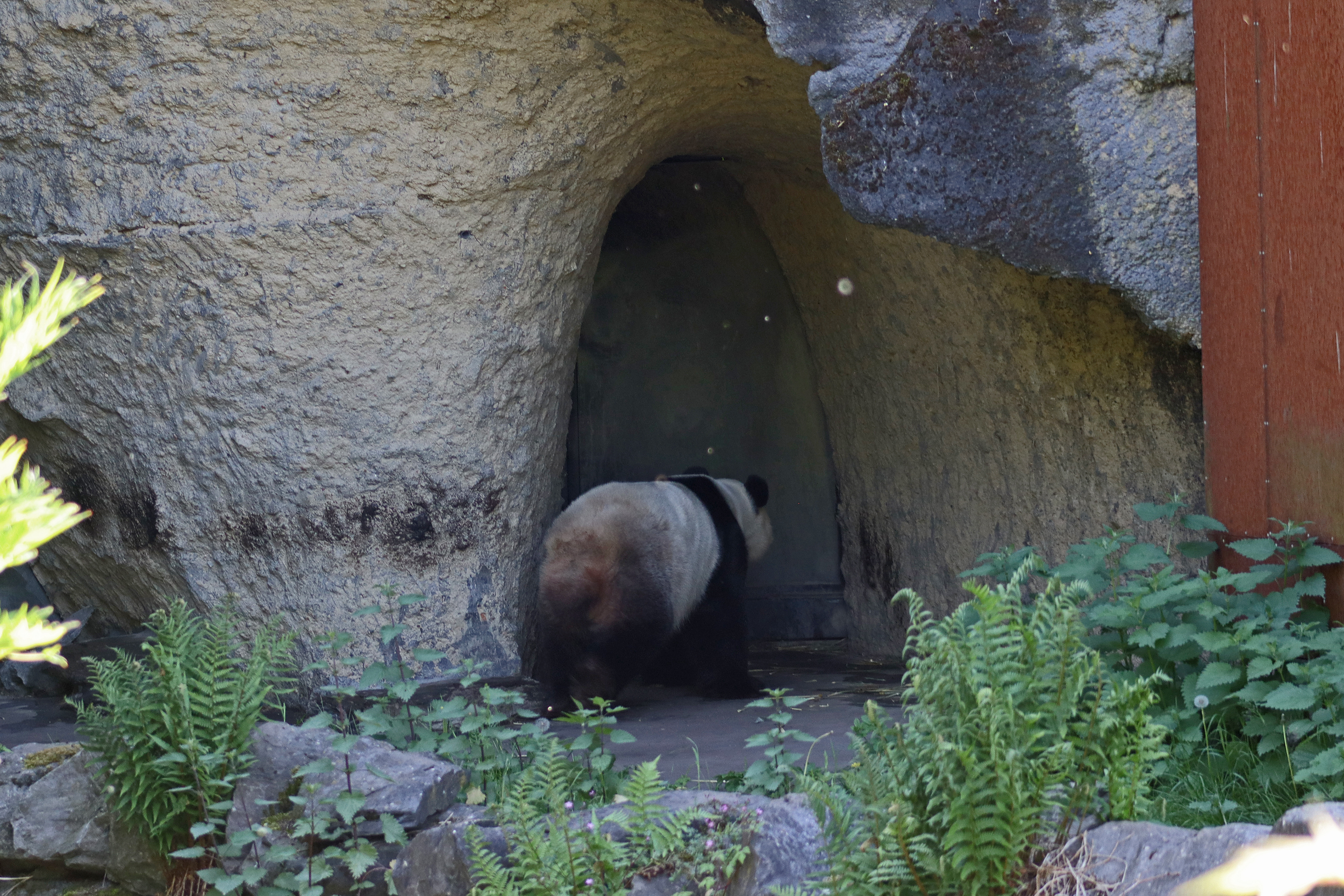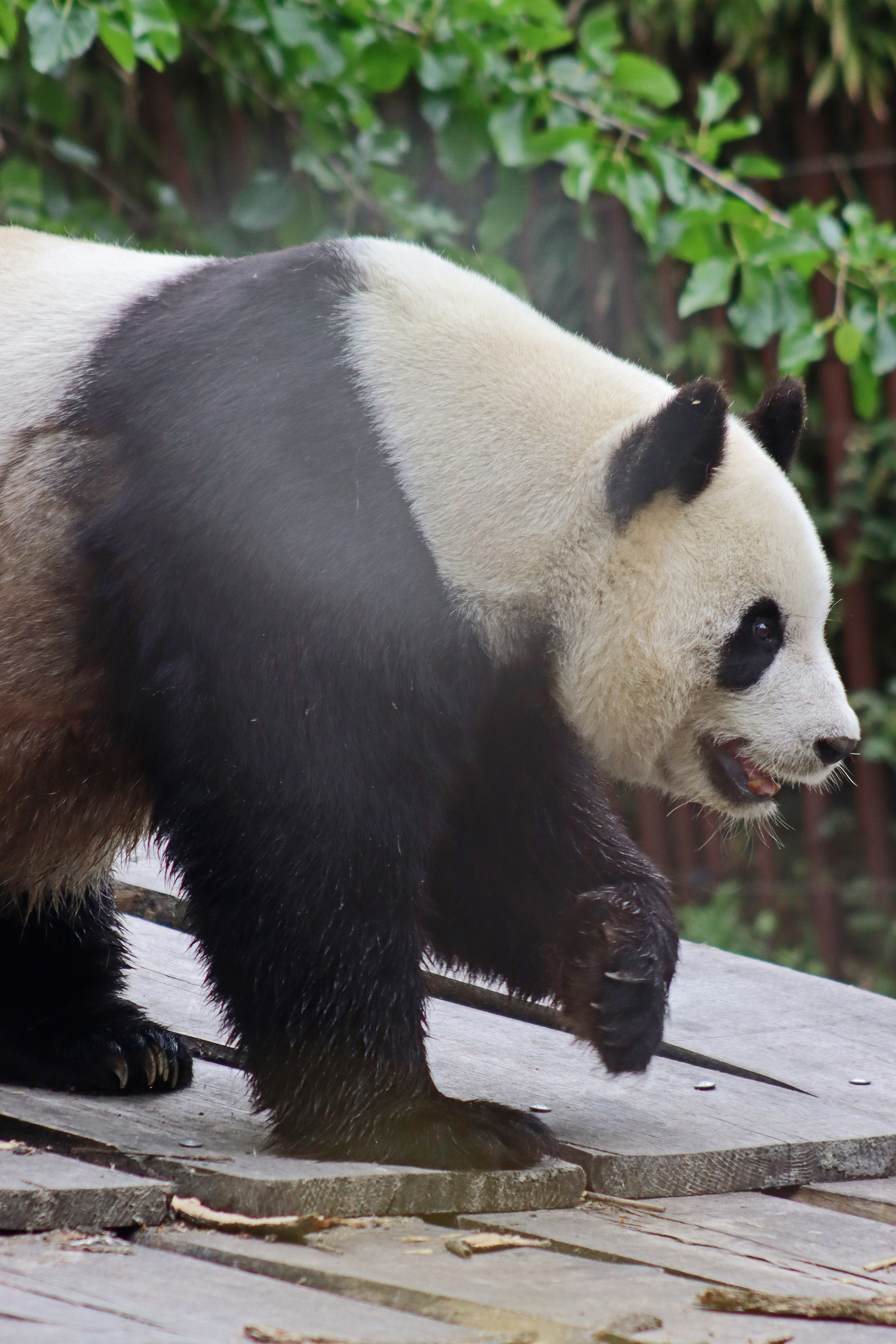 It’s male Xing Hui 星徽! And I really had high hopes of seeing him on this trip, I’ve hardly seen any of him at all on my previous visits. It’s interesting, I’m used to going to places and it being the female who is more shy and elusive, but here it seems that Xing Hui has that personality. Last time I got maybe 4 or 5 photos of him, so I do think this is an upgrade of sorts, because I saw him outside! So lucky to see that, even if he was wanting to go back inside the whole time XD It was very hot that day, so I think he was just wanting to get a little cooler. Even though the photo of him with his tongue out is a little out of focus, it’s such a cute one of him^ I will still persevere to try and get a great viewing experience with him!