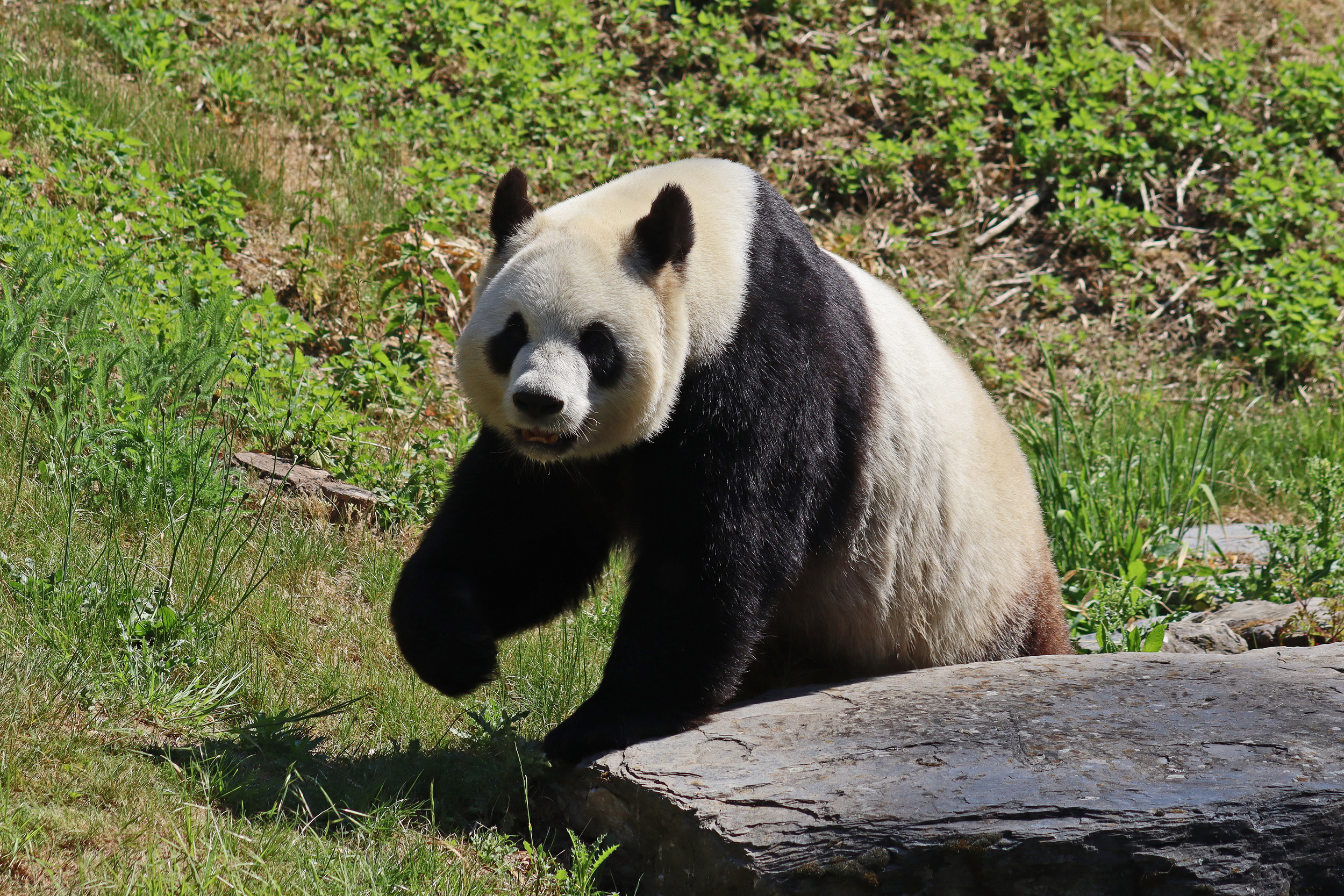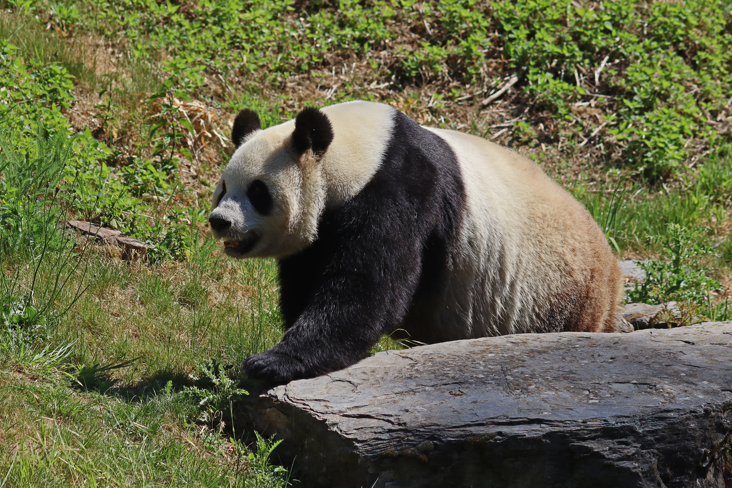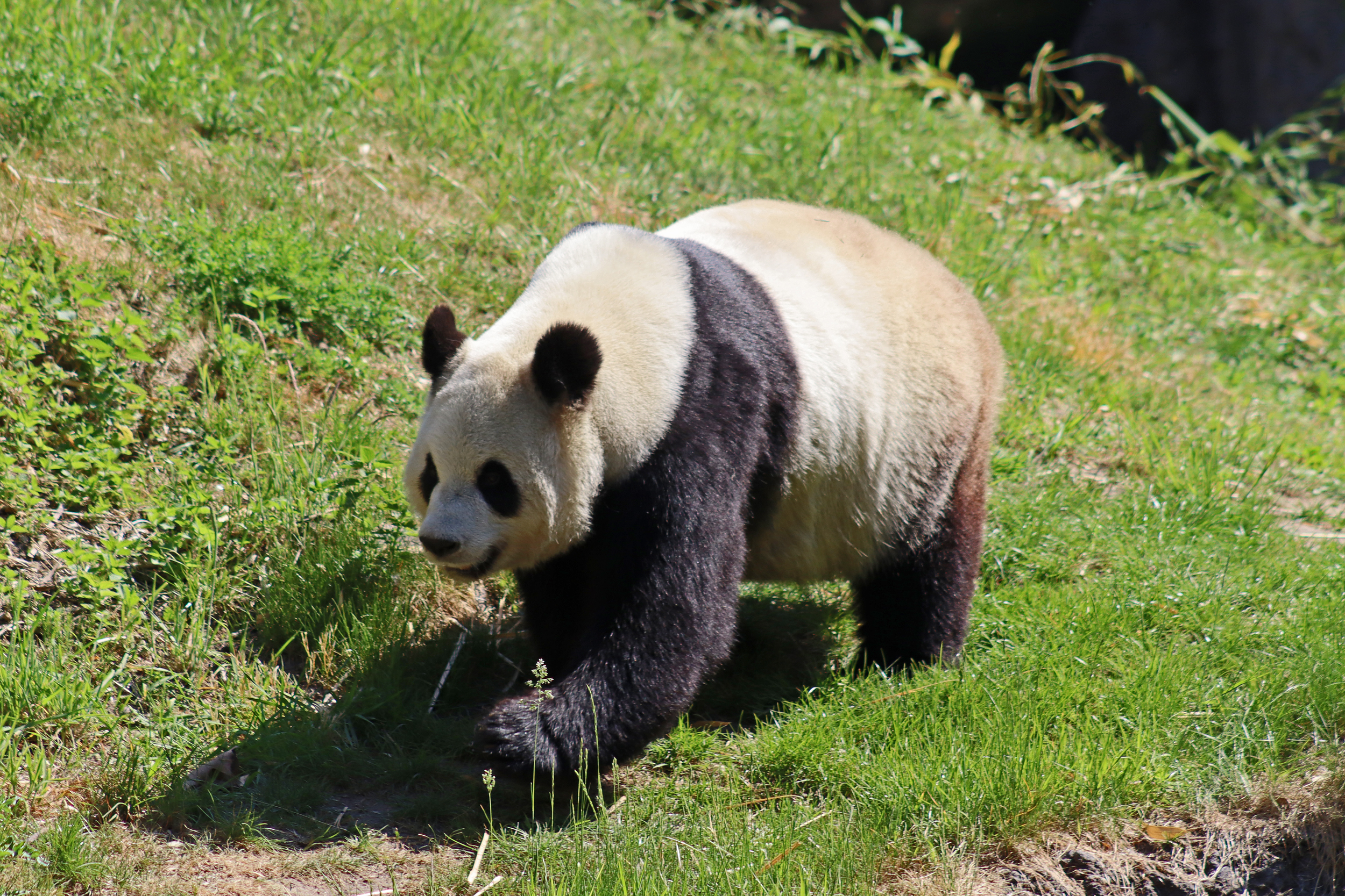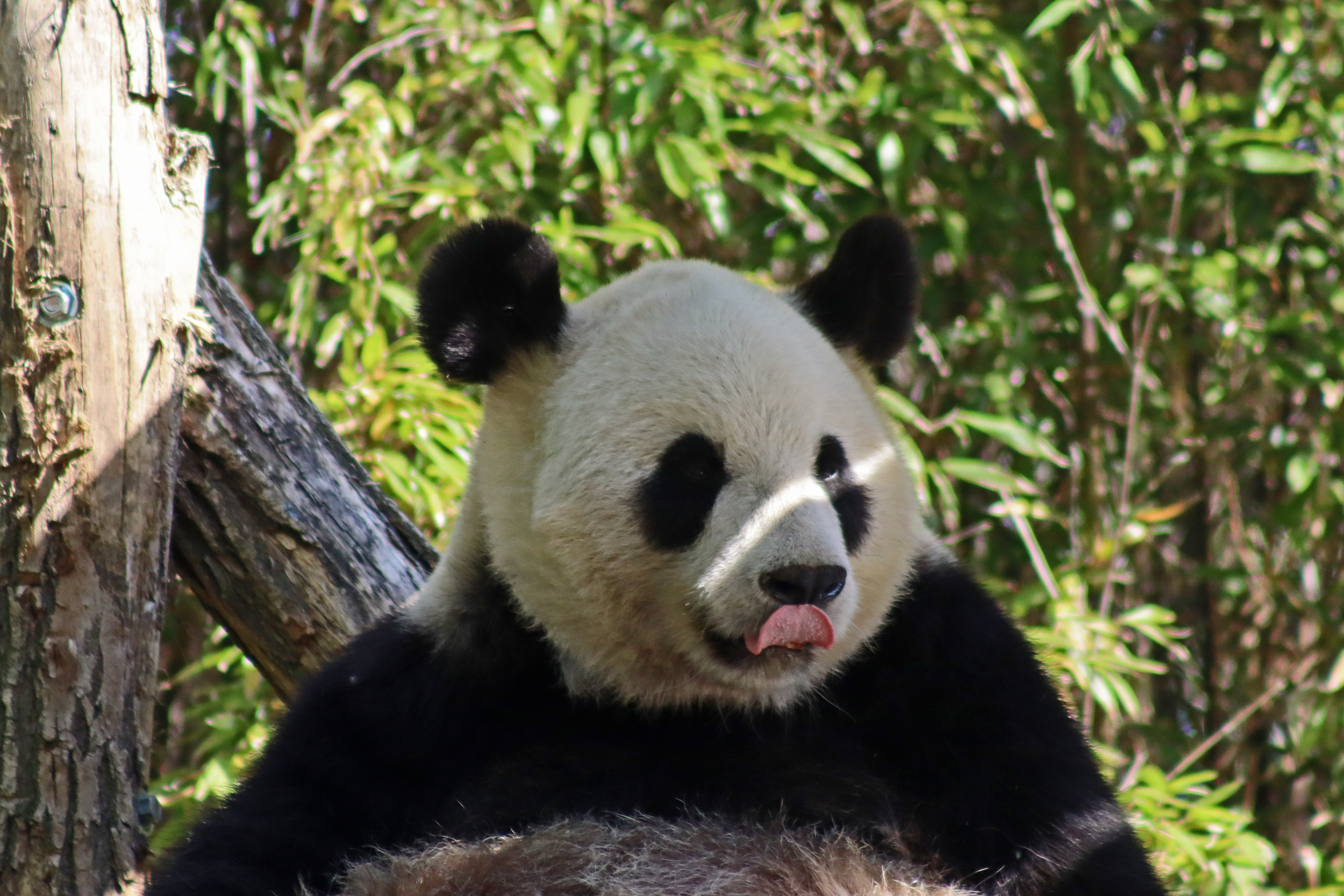 It’s male Xing Hui 星徽! And I really had high hopes of seeing him on this trip, I’ve hardly seen any of him at all on my previous visits. It’s interesting, I’m used to going to places and it being the female who is more shy and elusive, but here it seems that Xing Hui has that personality. Last time I got maybe 4 or 5 photos of him, so I do think this is an upgrade of sorts, because I saw him outside! So lucky to see that, even if he was wanting to go back inside the whole time XD It was very hot that day, so I think he was just wanting to get a little cooler. Even though the photo of him with his tongue out is a little out of focus, it’s such a cute one of him^ I will still persevere to try and get a great viewing experience with him!