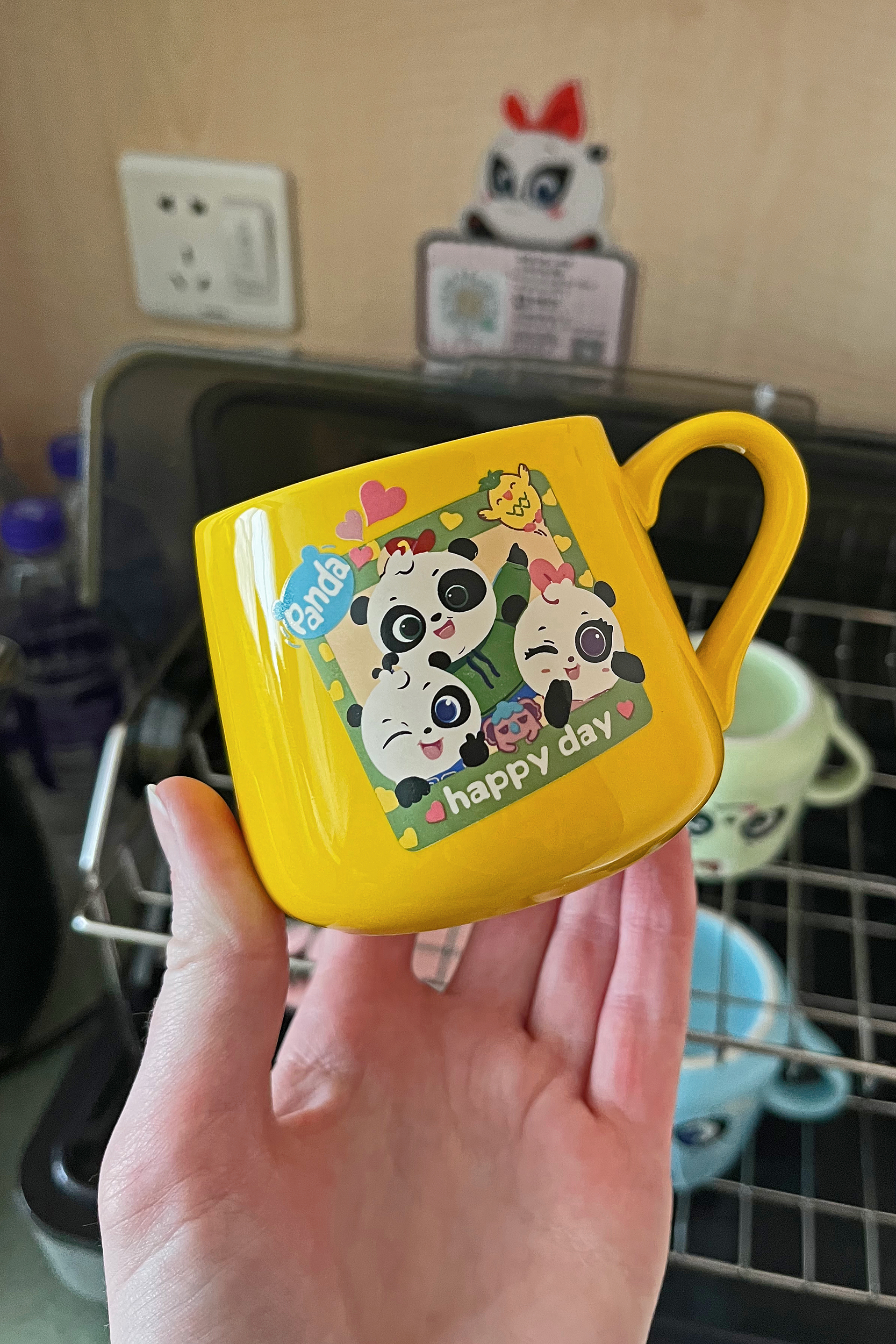 My room overlooked the front of the building so I could see some of the pandas on the outside of the building, but of course there were also pandas on the railing (I did try to open the window, but I think it must have been locked shut). The room was very spacious overall, plenty of space for luggage and to spread out. The bed was also huge, definitely bigger than a king – I lay in the middle and stretched my arms out and couldn’t reach either side! Very comfy and I had a great nights sleep here. And the amenities were also panda themed, from the toiletries in the bathroom, to the mugs in the room, and the information sheets – all pandas! And the duvet cover was also beautiful, it looked plain white but on closer inspection there were pandas embossed on it, a very nice touch.