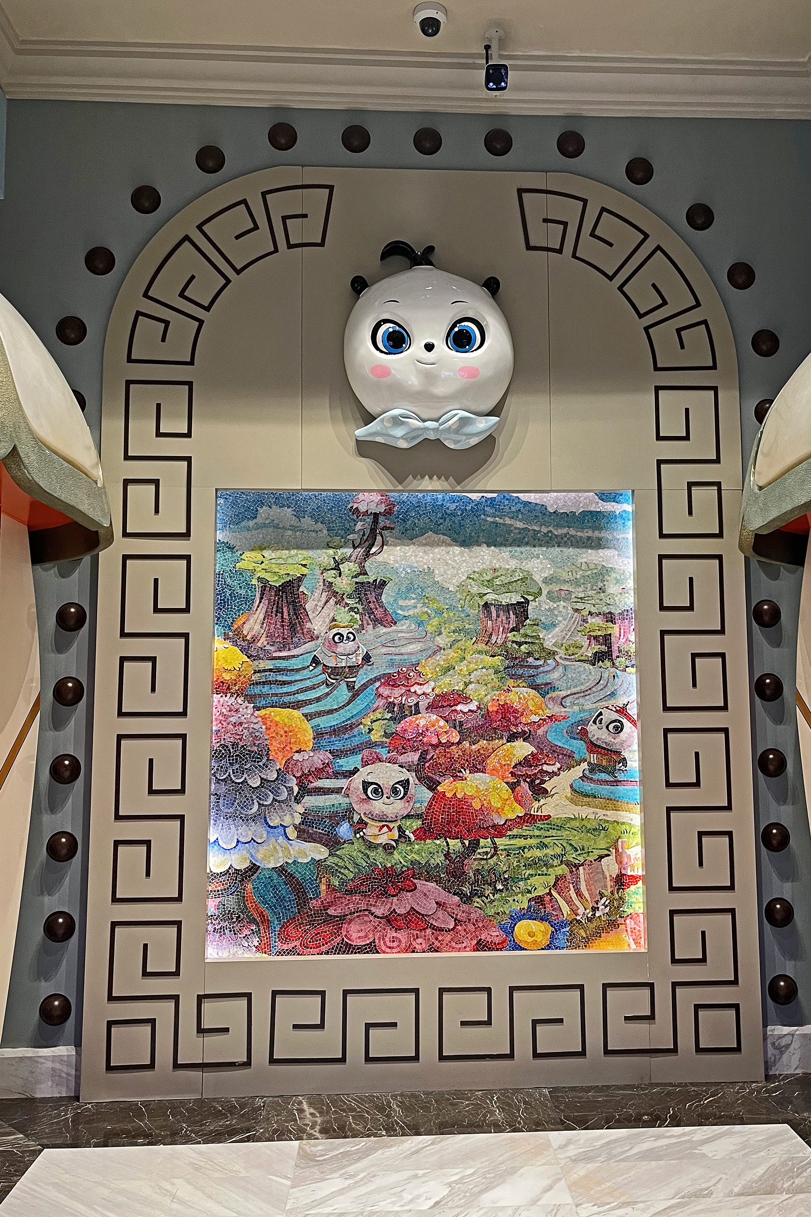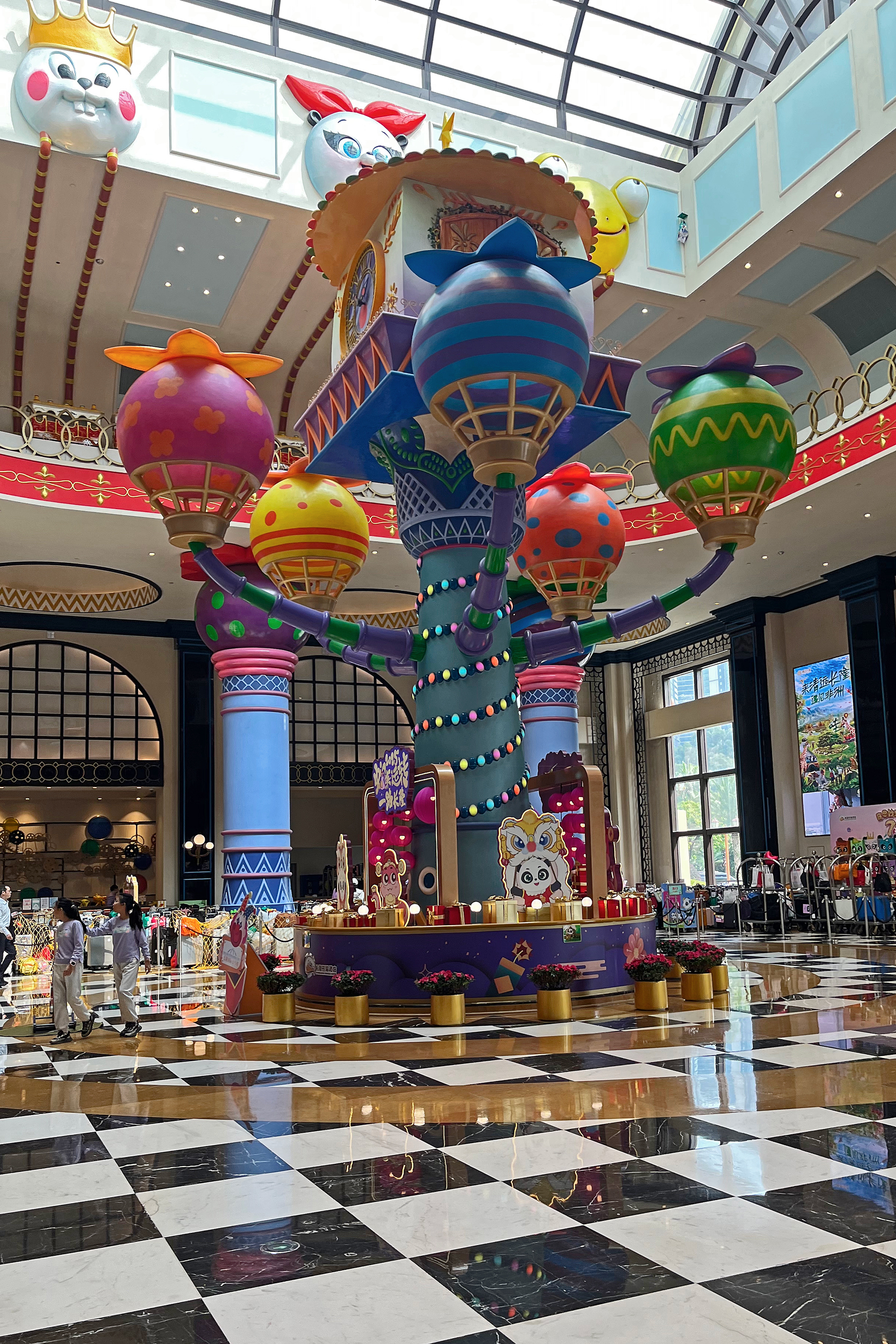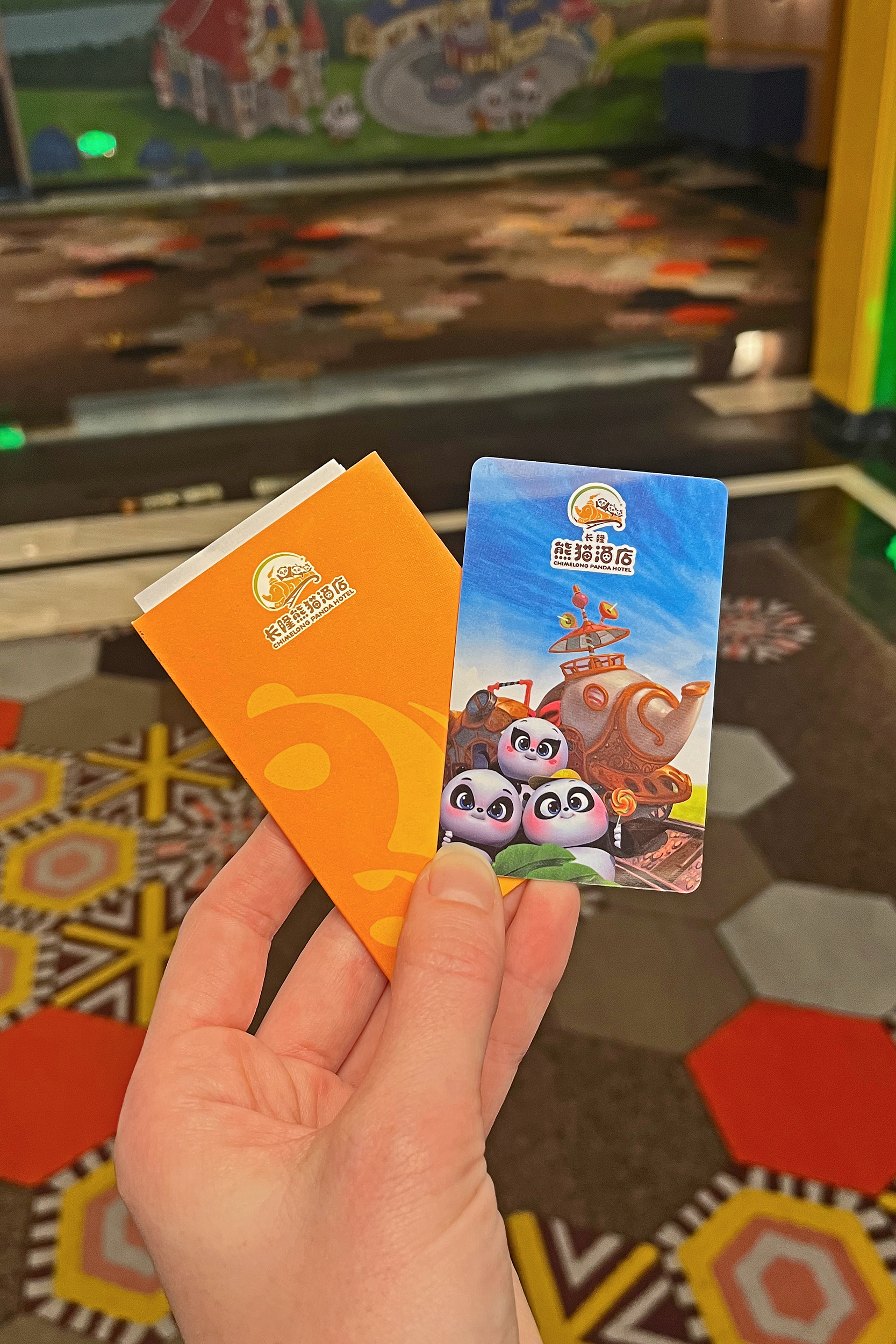 The general spaces around the hotel were also themed, with the lift lobby’s particularly impressive with beautiful mosaics. The main lobby was huge and quite stunning, with a huge skylight and a hot air balloon display in the middle. Here one side was for checking in, and one for checking out and luggage storage – there were signs for all 3 in both Chinese and English. When I checked in, the staff member didn’t speak English, but we had no problems communicating with my limited Chinese and a translate app. On checking out and leaving my luggage, staff at both these stations spoke English. There were a few gift shops on the main passageway as well, plenty of panda merch to buy, this was mostly the same as what was in the parks but I think I did see a few things here that was unique. There was also a stand selling the same animal ice lollies that were available in the park. There are several restaurant/dining options at the hotel, I didn’t eat at the hotel – I arrived at 2PM to check in and would have liked lunch, but lunch ended at 2PM, so maybe next time! It looked like they had a huge range of cuisines, so I think something for everyone.