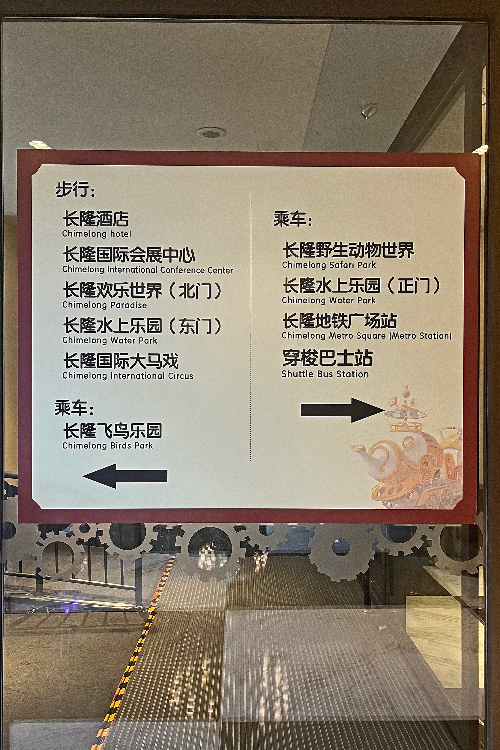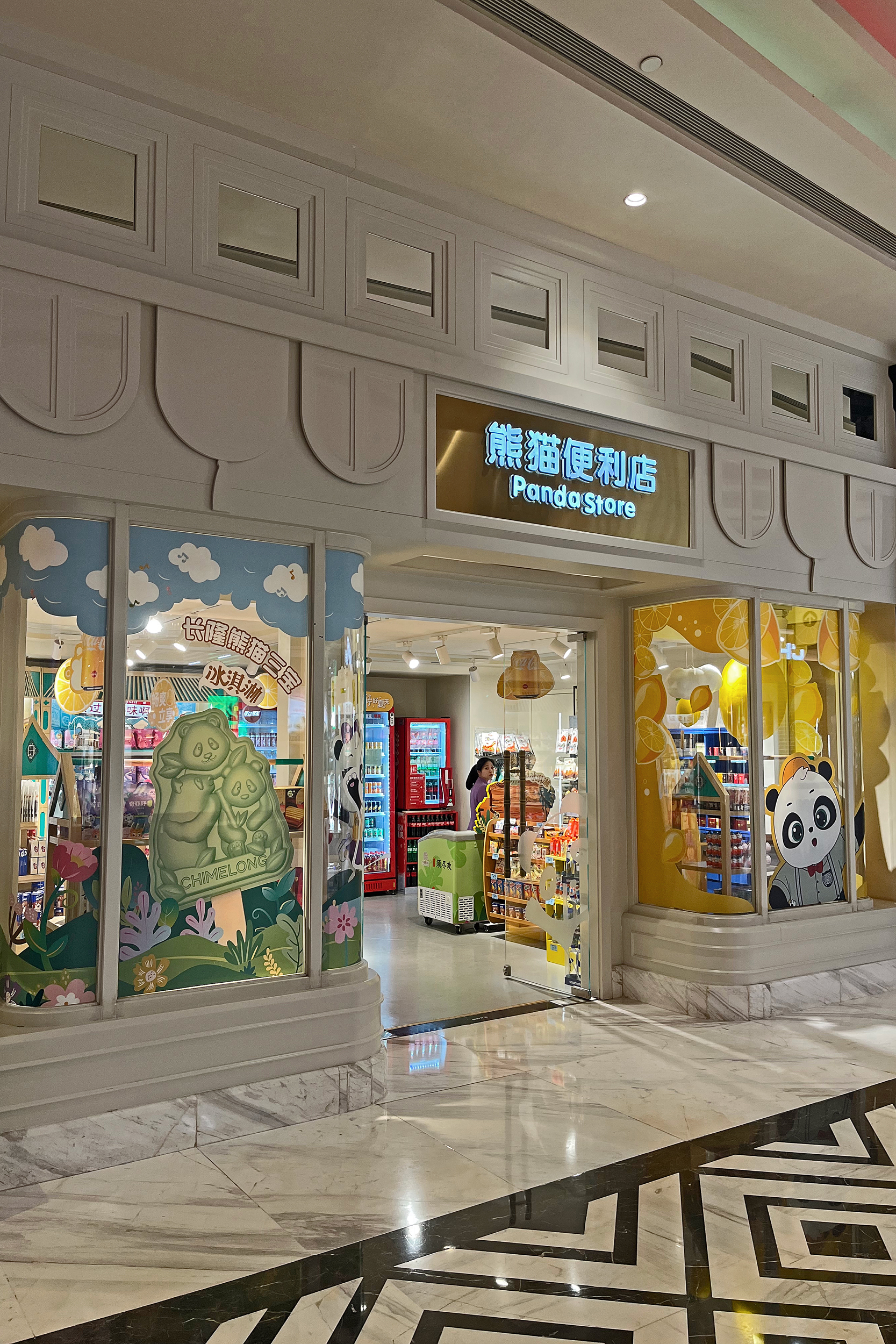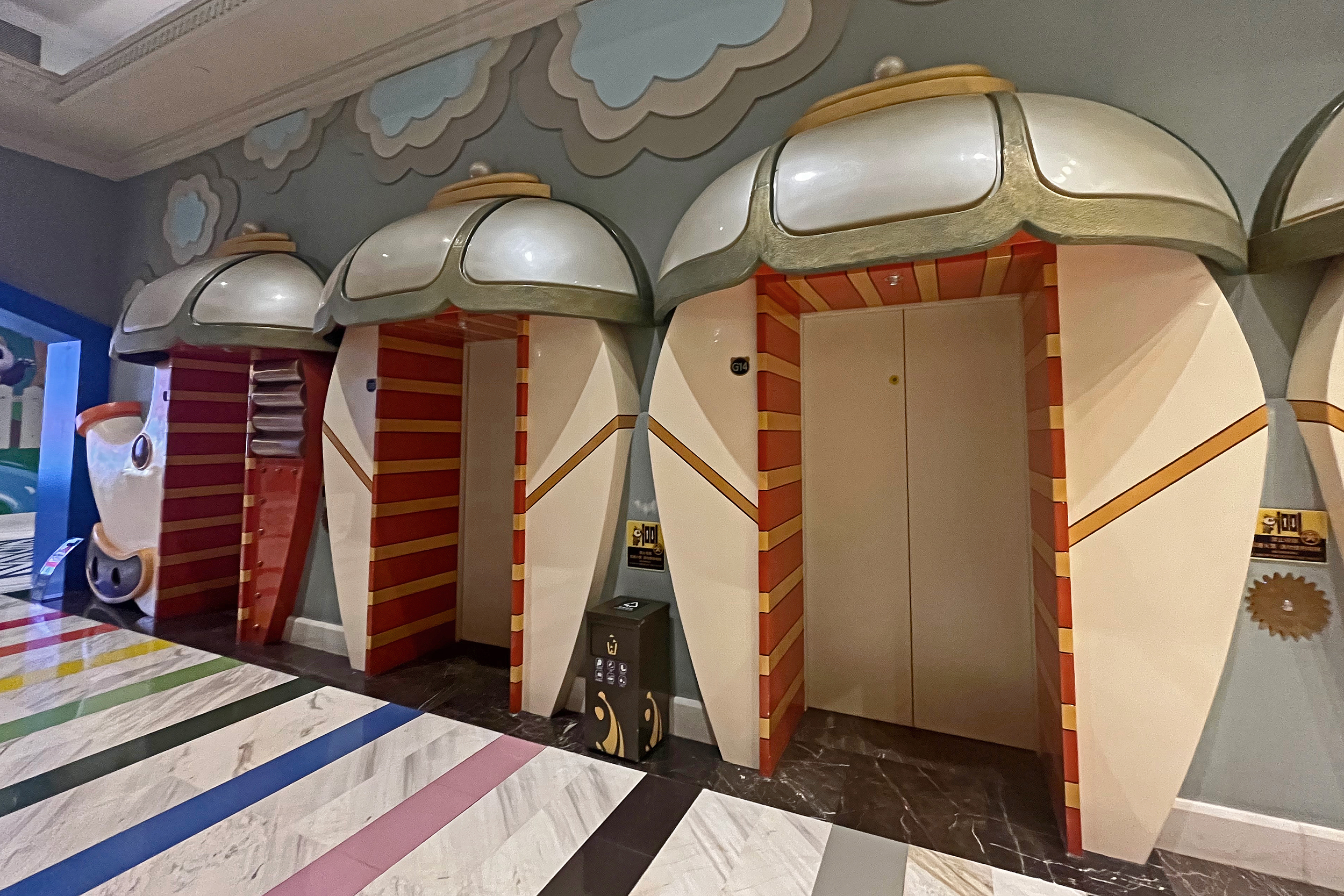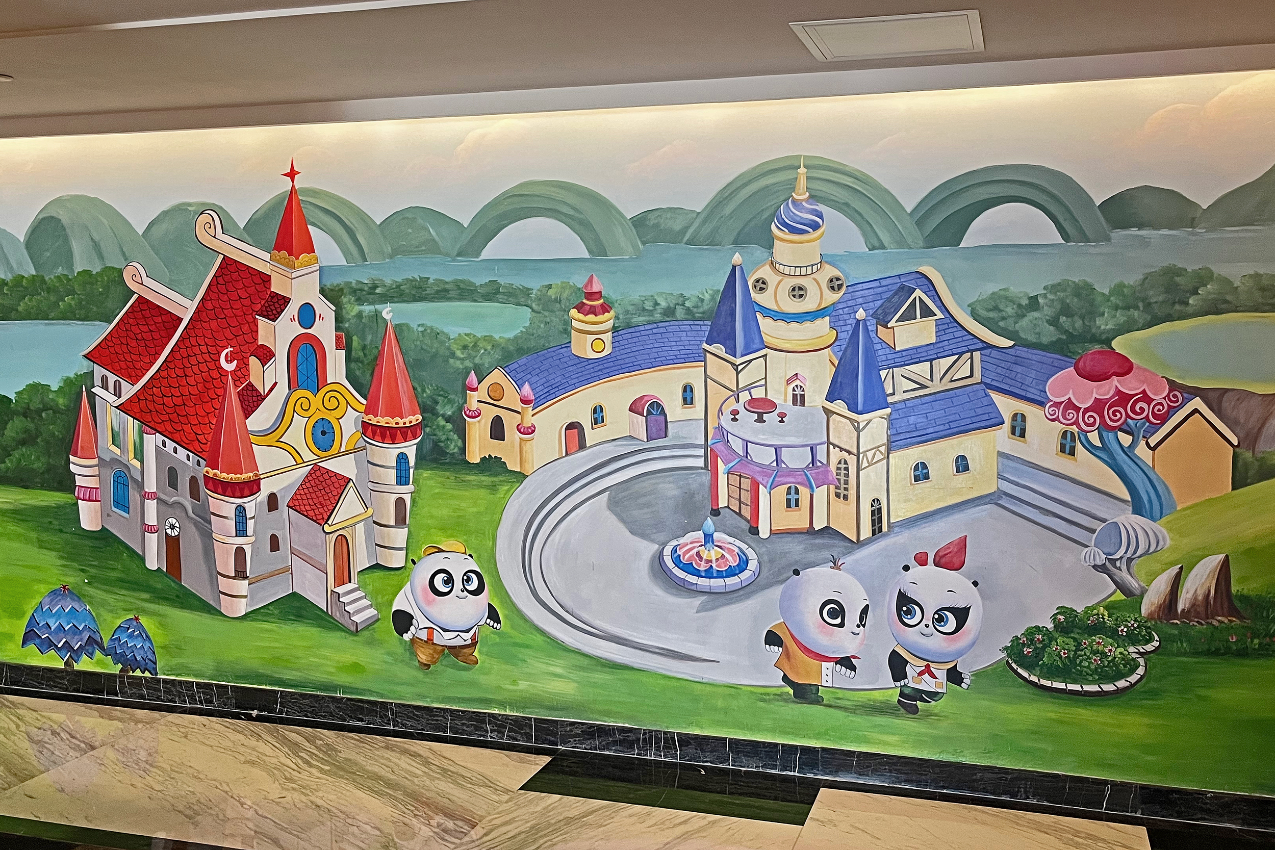 The general spaces around the hotel were also themed, with the lift lobby’s particularly impressive with beautiful mosaics. The main lobby was huge and quite stunning, with a huge skylight and a hot air balloon display in the middle. Here one side was for checking in, and one for checking out and luggage storage – there were signs for all 3 in both Chinese and English. When I checked in, the staff member didn’t speak English, but we had no problems communicating with my limited Chinese and a translate app. On checking out and leaving my luggage, staff at both these stations spoke English. There were a few gift shops on the main passageway as well, plenty of panda merch to buy, this was mostly the same as what was in the parks but I think I did see a few things here that was unique. There was also a stand selling the same animal ice lollies that were available in the park. There are several restaurant/dining options at the hotel, I didn’t eat at the hotel – I arrived at 2PM to check in and would have liked lunch, but lunch ended at 2PM, so maybe next time! It looked like they had a huge range of cuisines, so I think something for everyone.