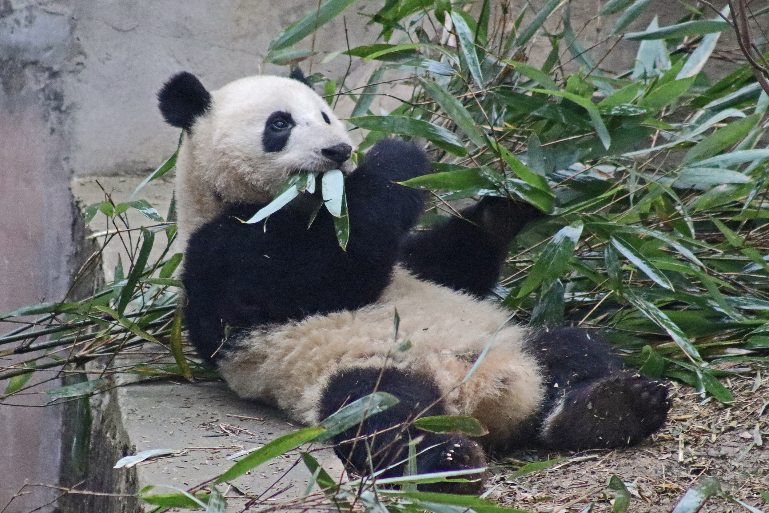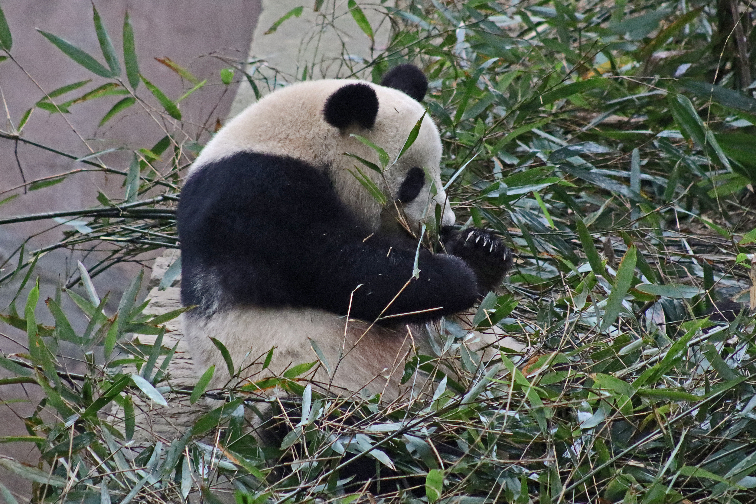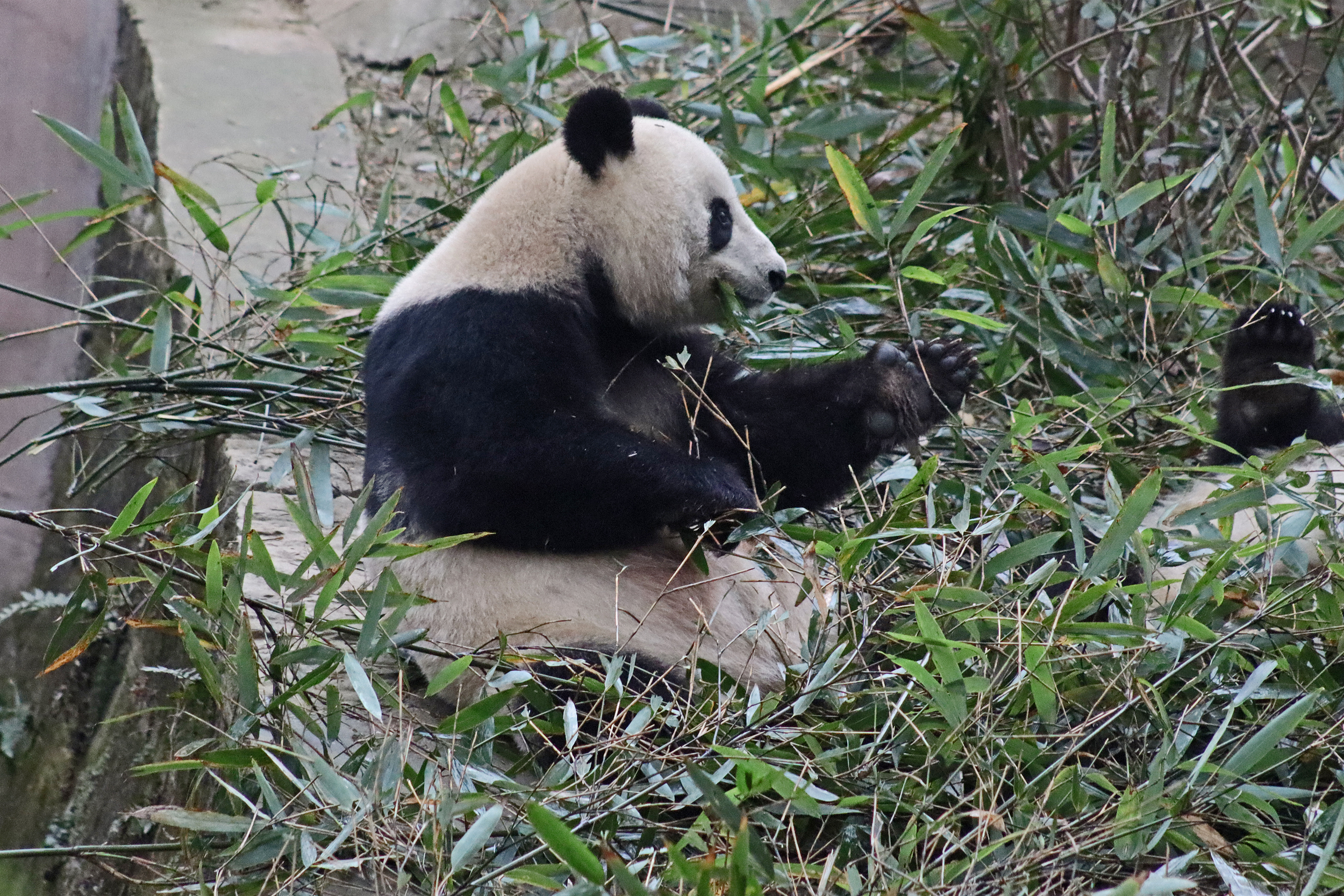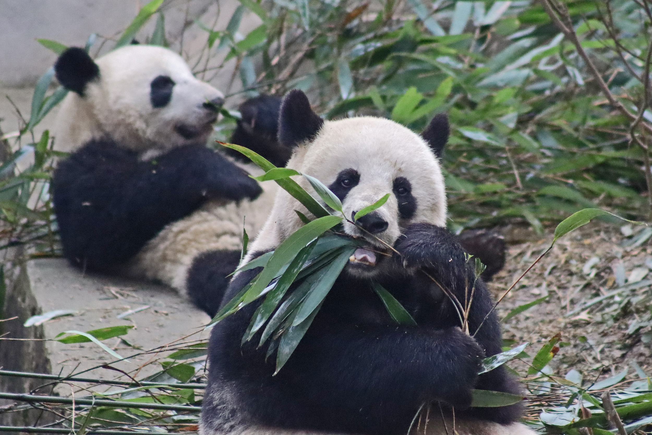 The final pandas to share about from the No1 House – and they were my first youngsters of Chengdu Panda Base on this visit, it’s Xiao Ya Tou 小丫头 and her 2023-born twins! Since my visit the cubs have now been announced as named CC and 99 … not sure how much I get that, but I guess there’s good reasoning behind it! When I was there there was only a sign for Xiao Ya Tou, you wouldn’t know there were her cubs in with her unless you saw them – and it’s a big yard with lots of plant coverage so they could easily hide away out of sight. Now, however, there is new signage so visitors know there are 3 pandas living there.