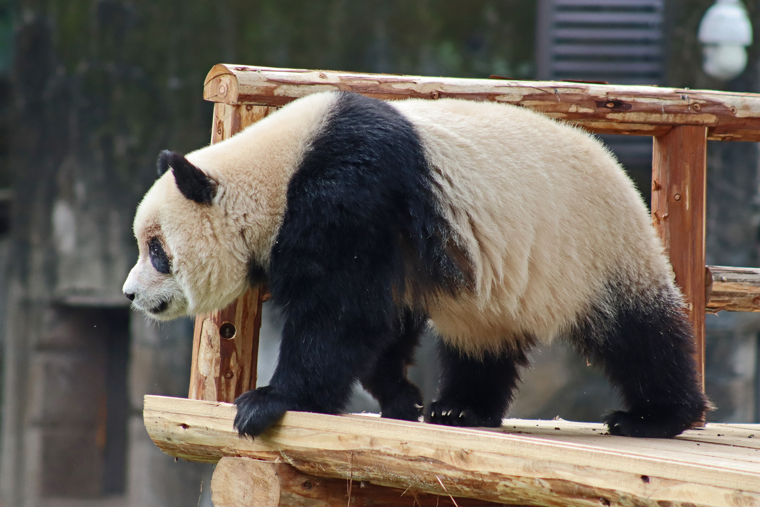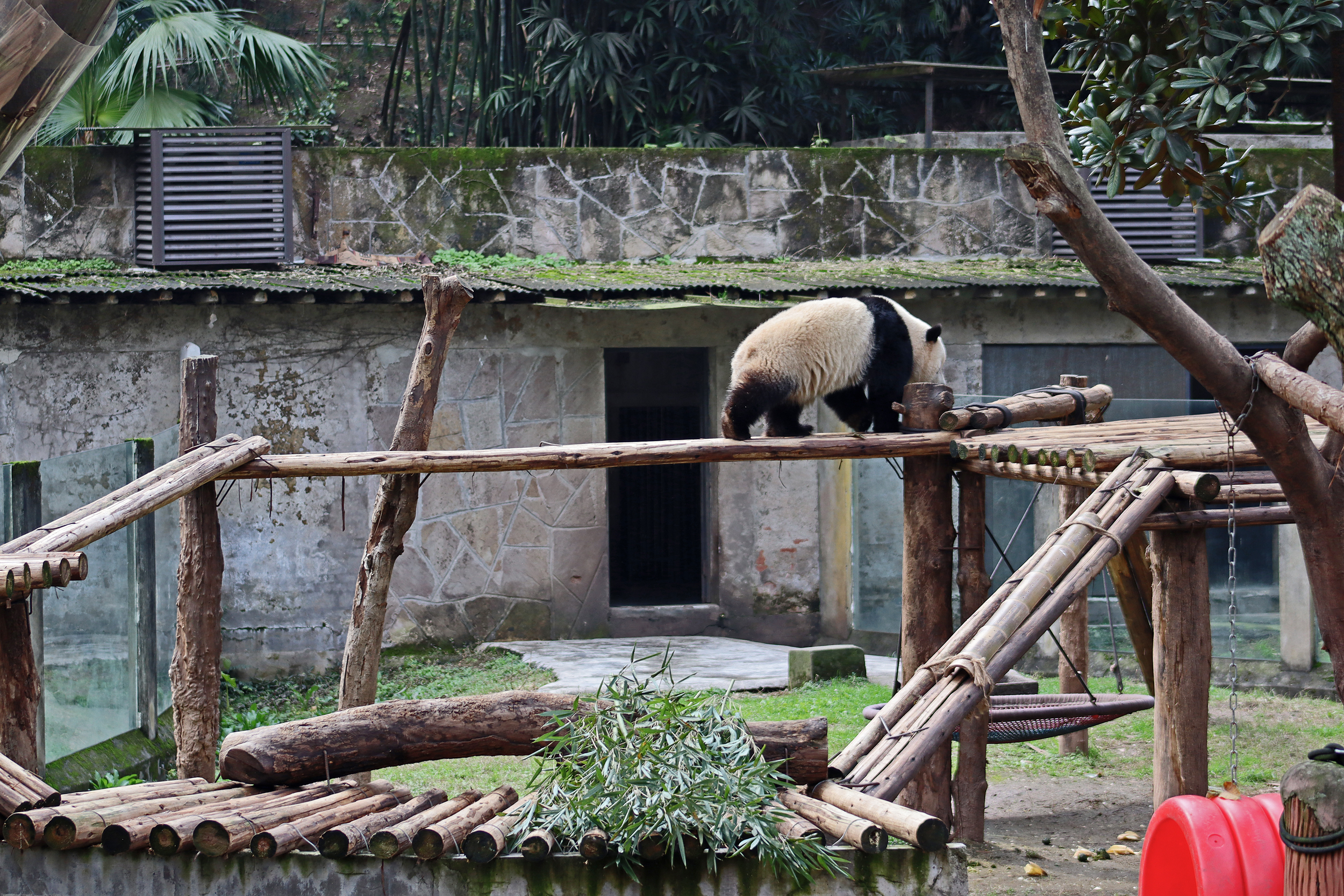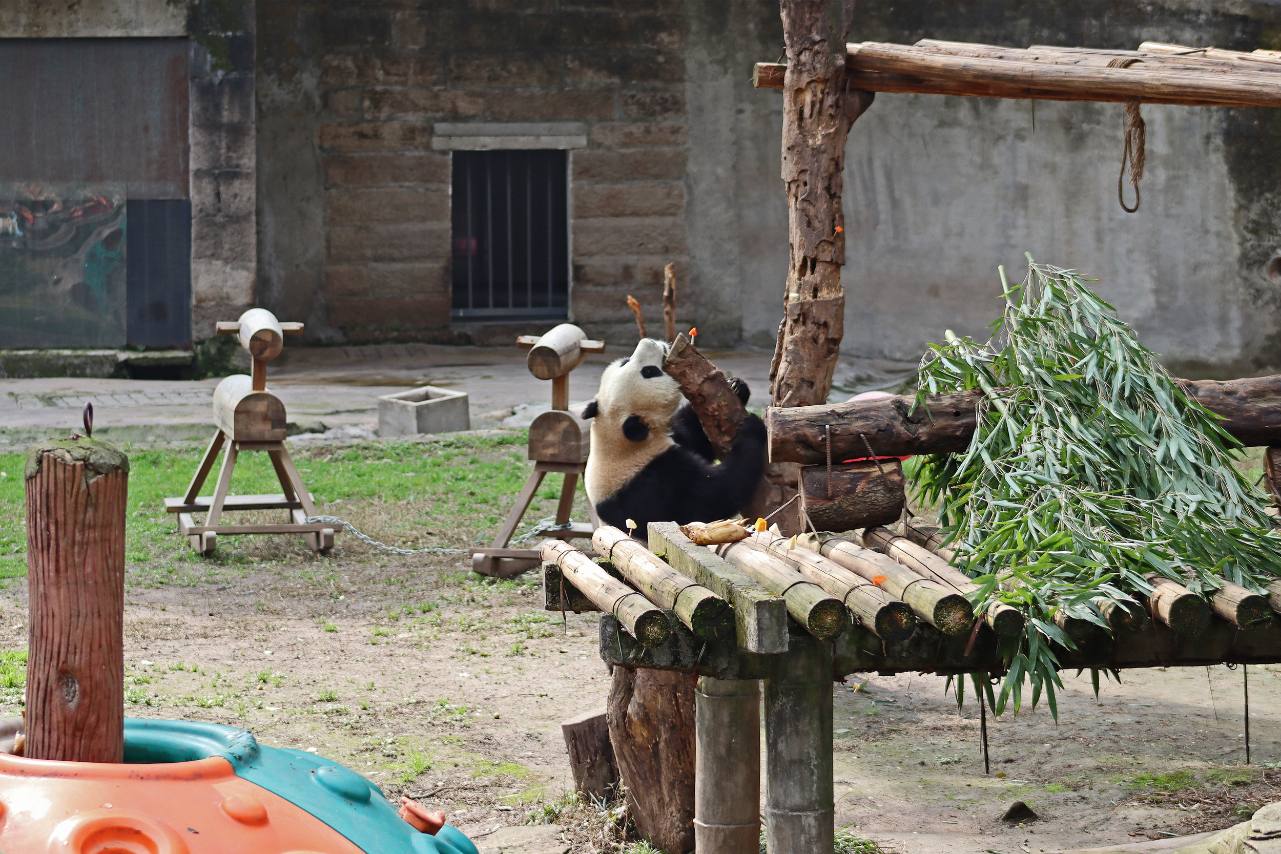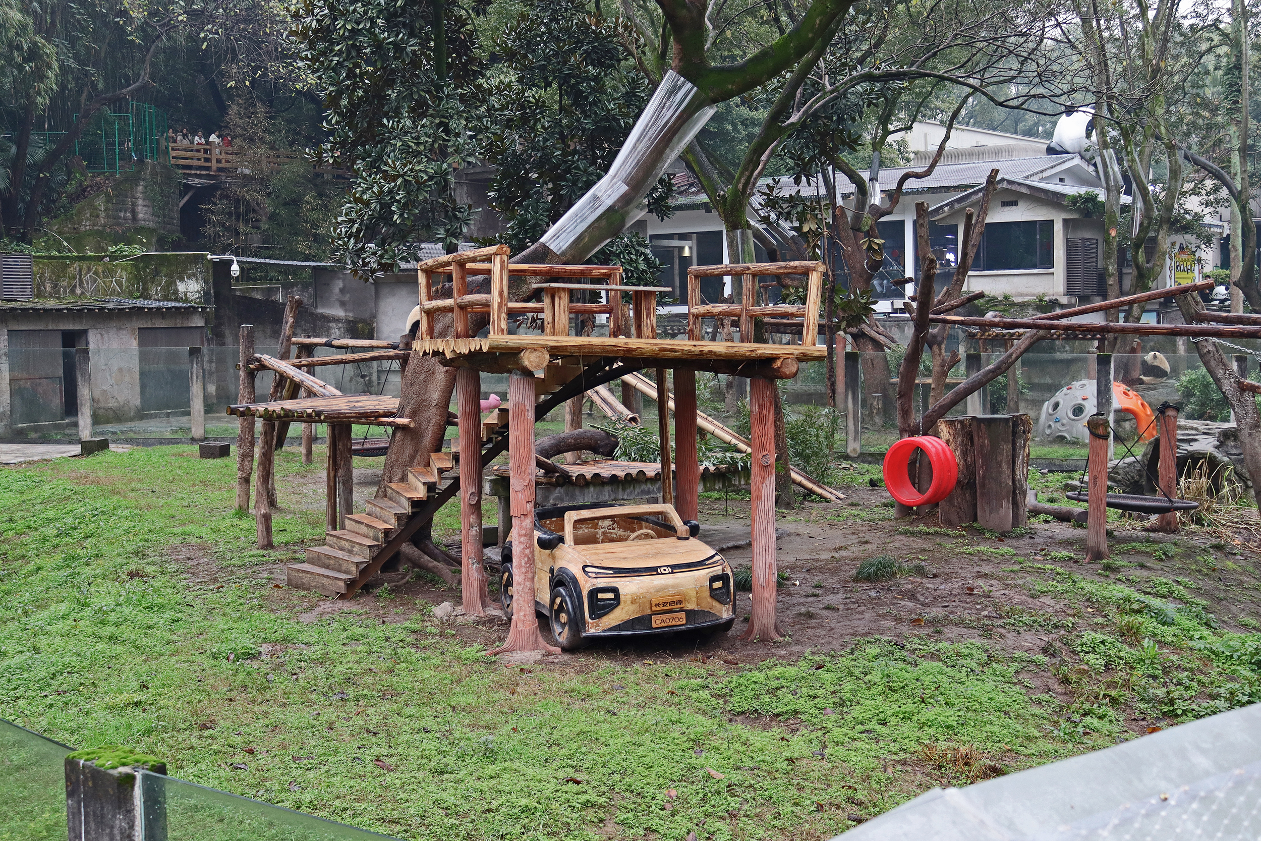 Yu Ai is the younger female twin while Yu Ke is the older male twin and they were born to Er Shun, her first pregnancy back in China after her time in Canada. It’s great to see her continue her reproductive years and perhaps there are more cubs to come for her. Yu Ai and Yu Ke are still neighbours with each other and have very fun yards to play in – Yu Ai is now in the yard with a giant wooden car, so that’s a fun enrichment option to play with! Alike the other yards, lots of wooden climbing options and different toys to interact with.