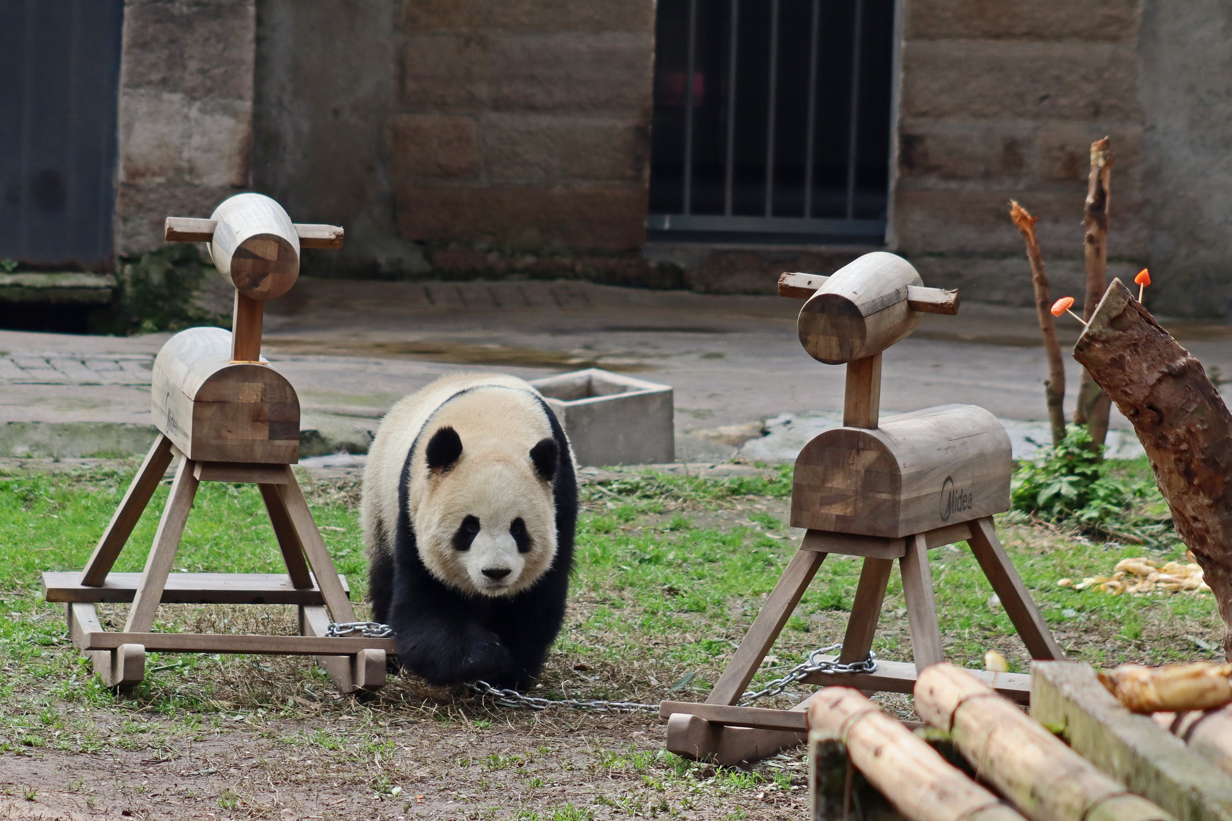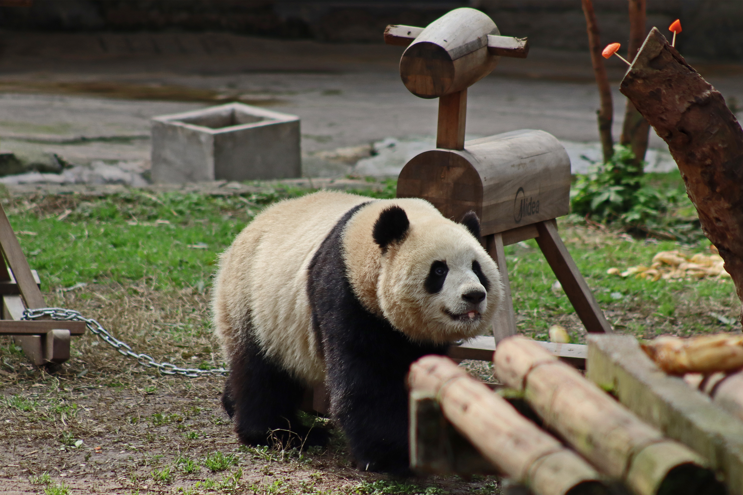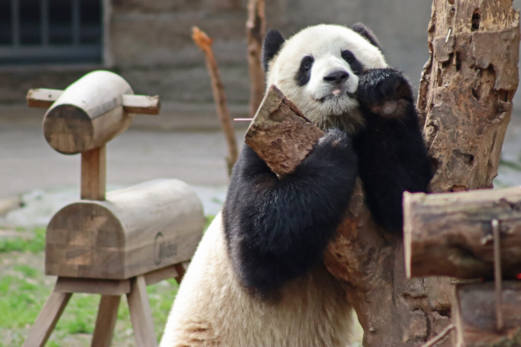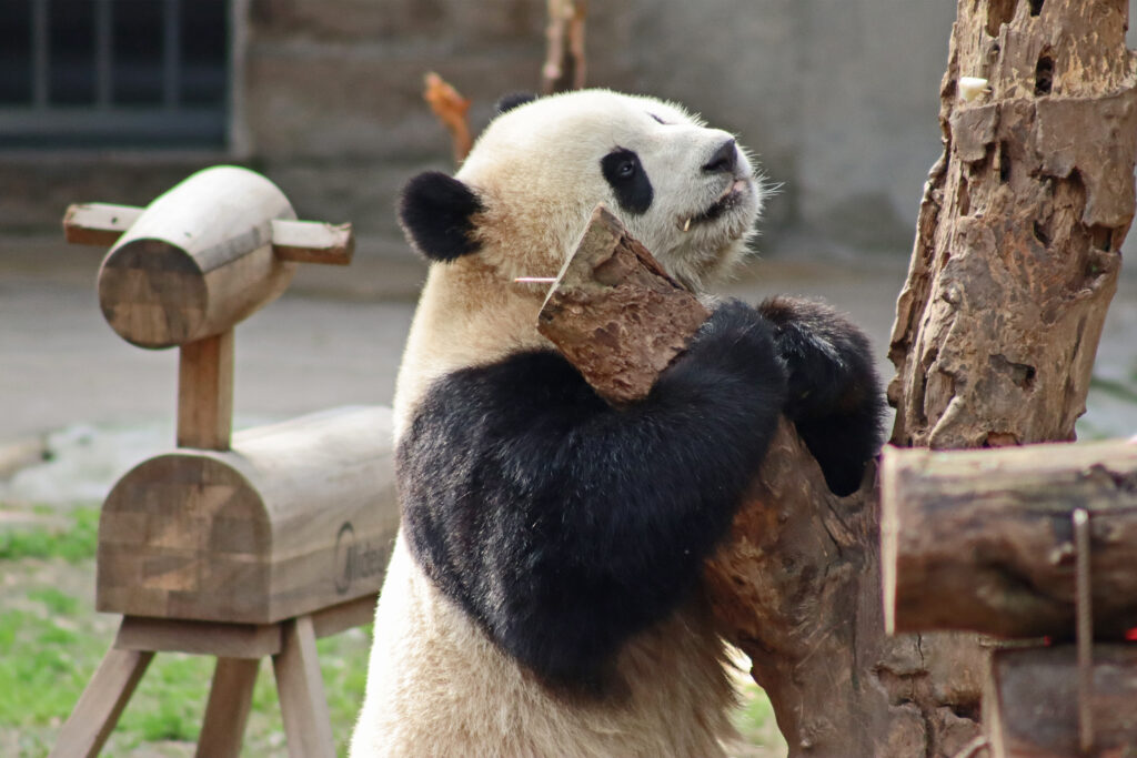 Yu Ai is the younger female twin while Yu Ke is the older male twin and they were born to Er Shun, her first pregnancy back in China after her time in Canada. It’s great to see her continue her reproductive years and perhaps there are more cubs to come for her. Yu Ai and Yu Ke are still neighbours with each other and have very fun yards to play in – Yu Ai is now in the yard with a giant wooden car, so that’s a fun enrichment option to play with! Alike the other yards, lots of wooden climbing options and different toys to interact with.